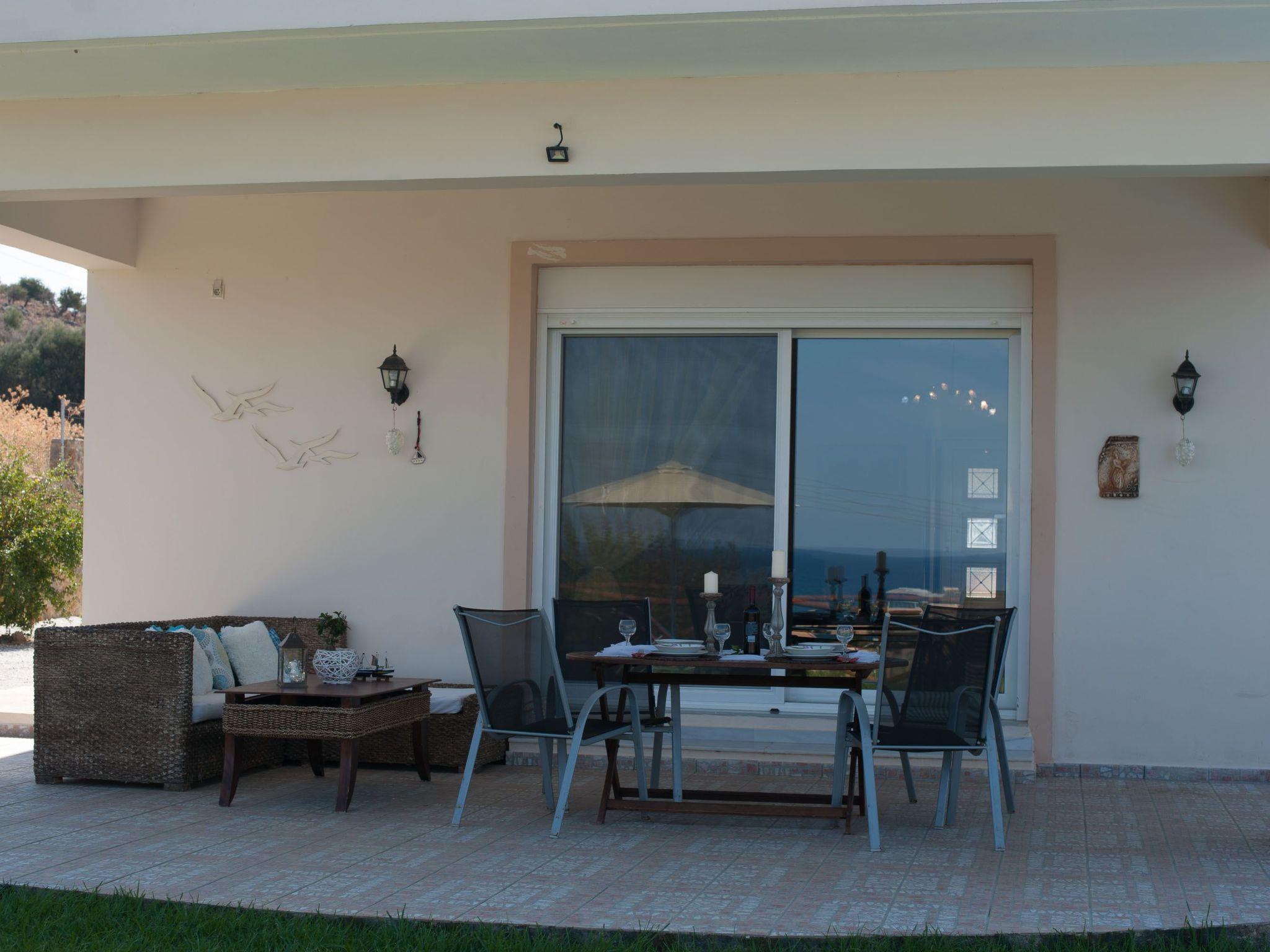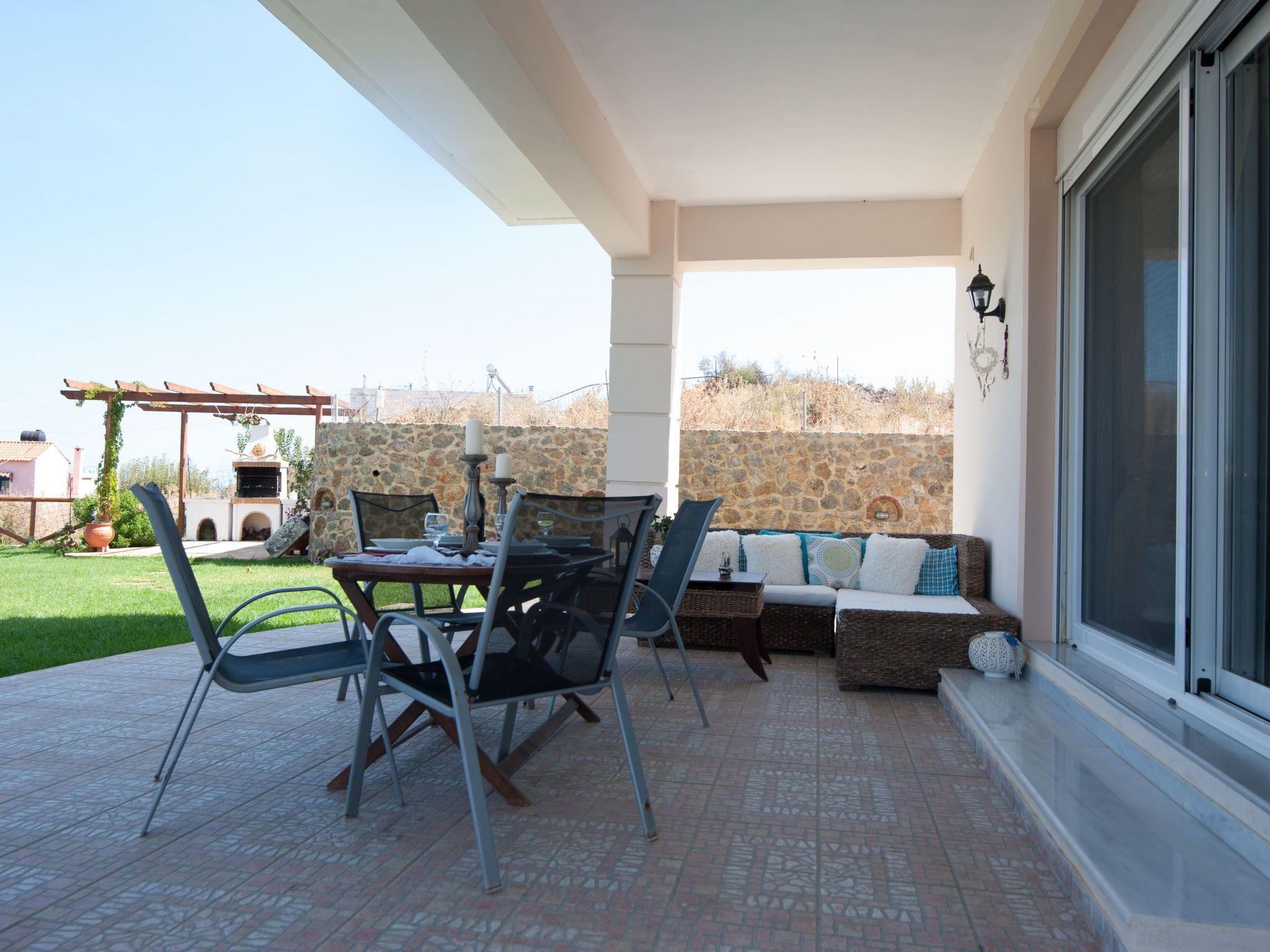 The green garden of the villa is surrounded by fruit trees and a wonderful view of the village of Georgioupoli and the endless blue. There are barbecue facilities where residents can prepare their meals. They are located opposite the terrace with a sea view. Free private parking is also available.