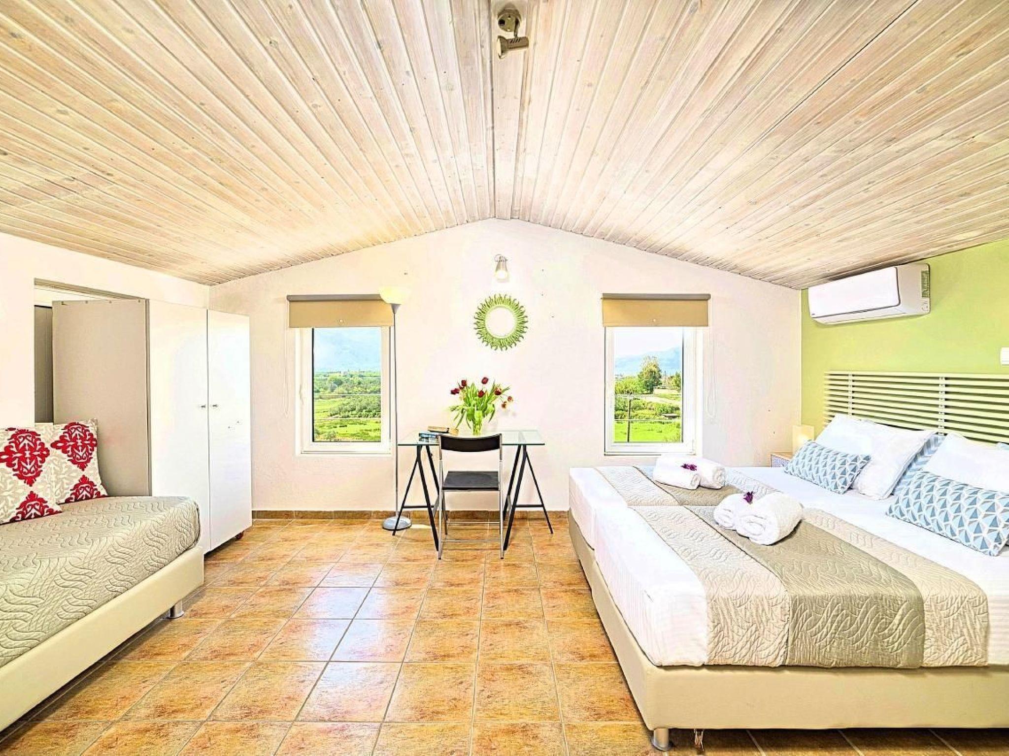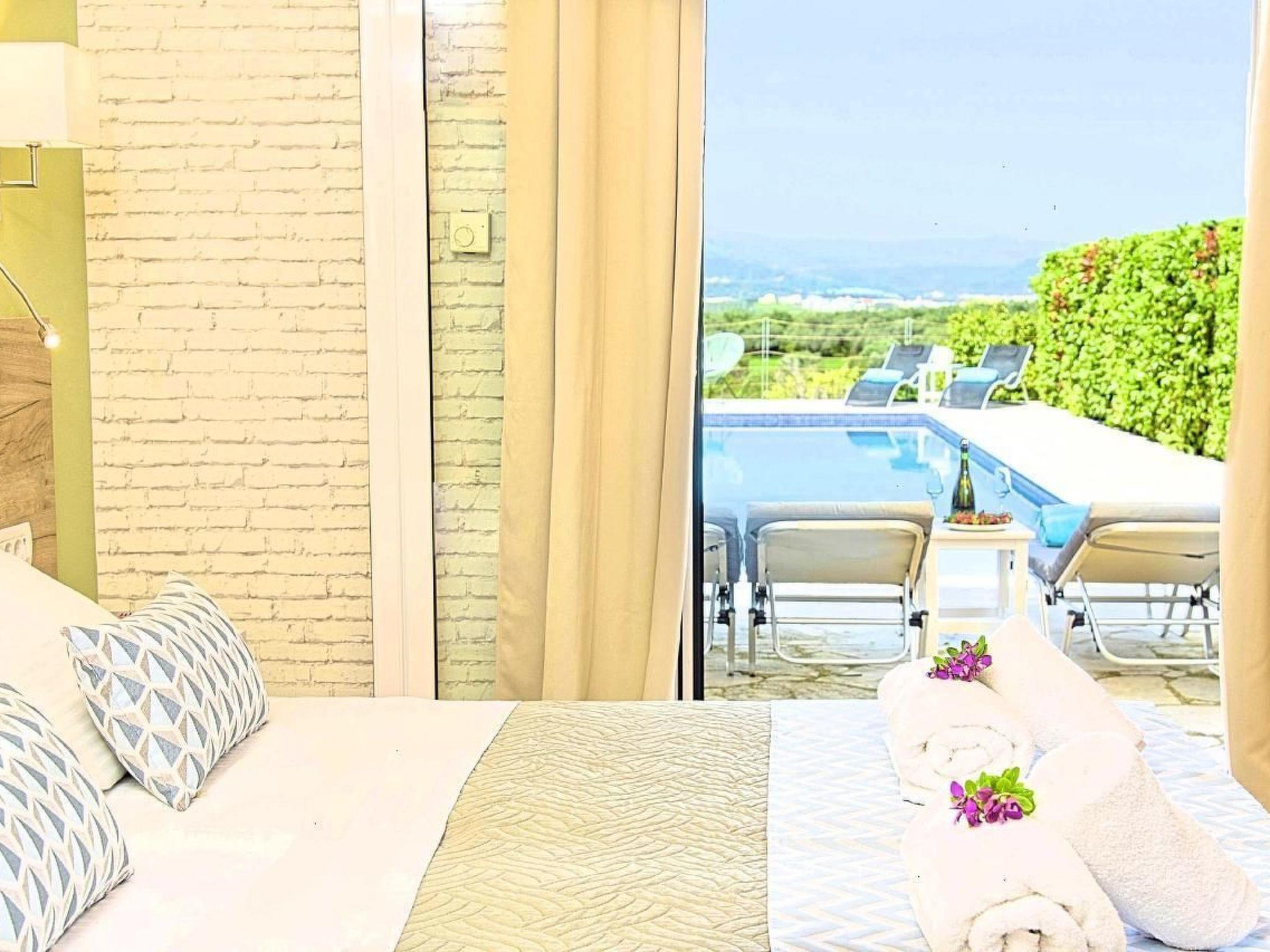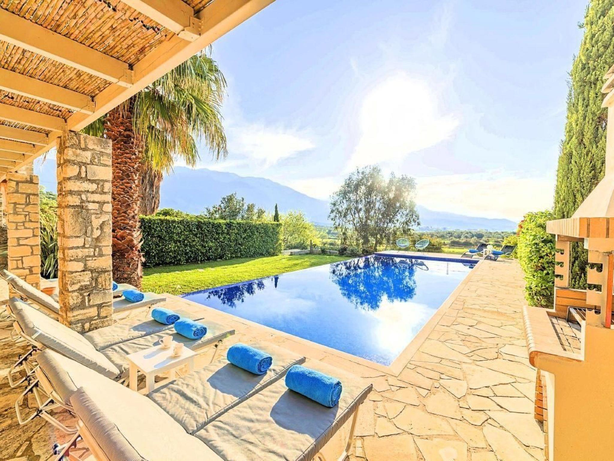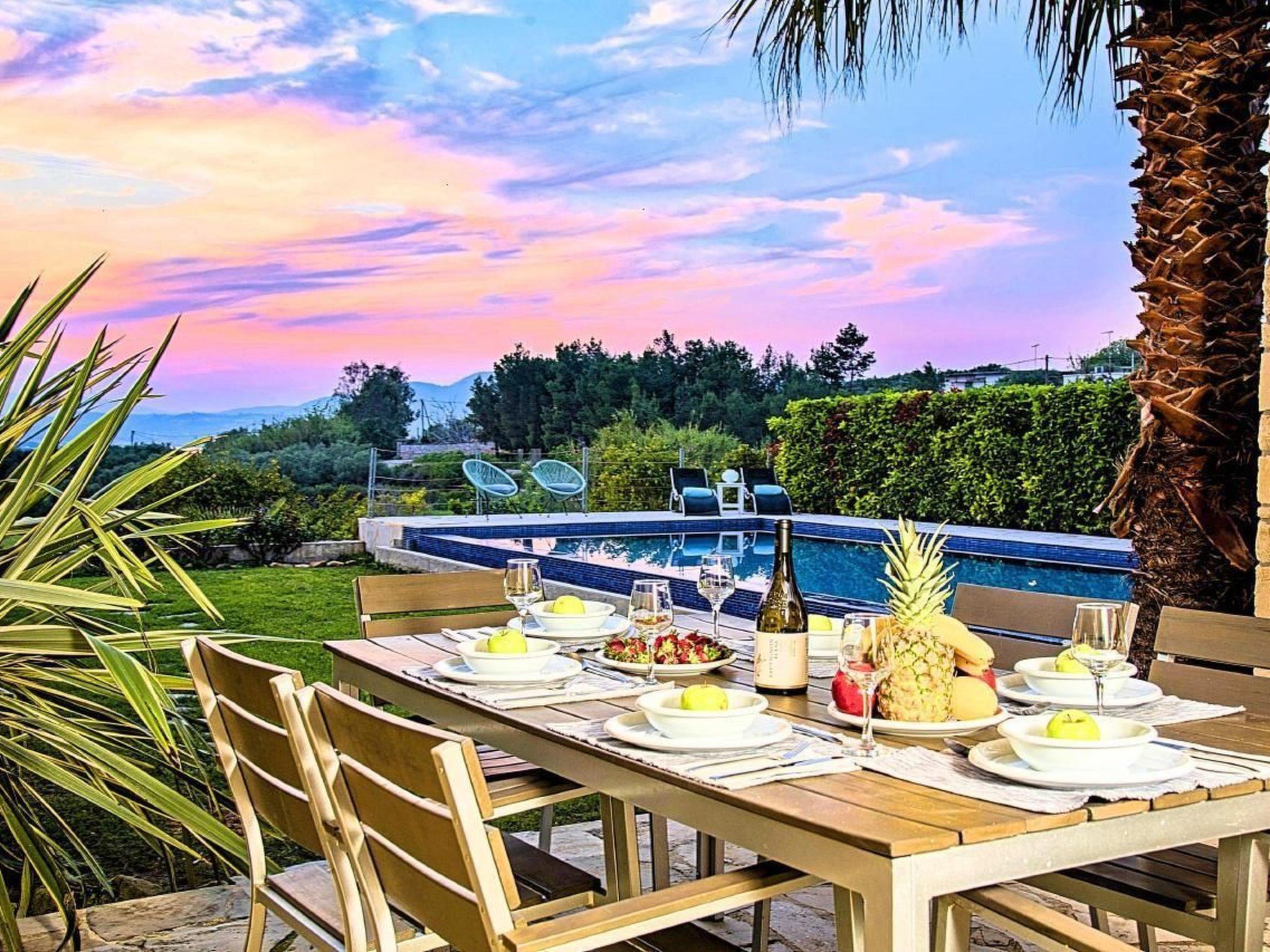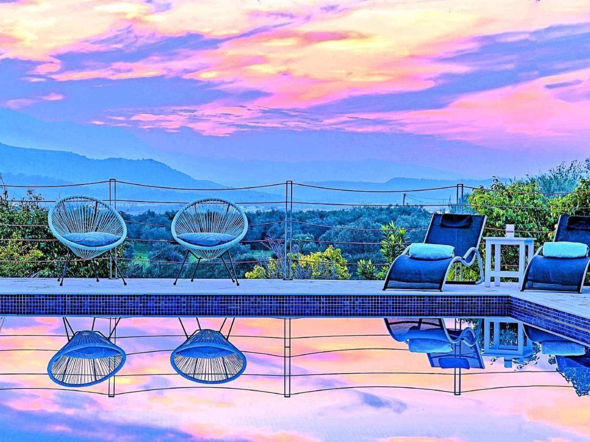 Cretan Mansion is a modern 5-bedroom villa.Located at the village Dramia, Apokoronas municipality, quite close to the tourist village of Kavros, just five hundred meters from the sandy beach of Georgioupolis – Episkopi, at the foot of the White Mountains at the northeastern corner of the prefecture of Chania.Built in 2006 with modern design, it affords guests with everything they need in order to enjoy a relaxing and enjoyable holiday.The rooms of the Mansion are functionally decorated.Its 5 bedrooms all fully equipped and spacious, all with private bathrooms.The lounges, dining rooms, kitchens are equipped with everything essential for a comfortable holiday.The gardens of the Mansion are surrounded by hand-made stone fences full of blossoming bushes, fruit trees and white oleanders.Swim in the private pool. Enjoy your coffee or drink at one of the terraces of our Mansion, looking out towards the White Mountains and the sandy beach of Georgioupolis.As you gaze at the valley surrounding the village, which is covered by a thick olive grove, you will relax immersed in aromas of rosemary, lavender and mint, engulfing you in a dream of the natural scent of the Cretan land.The outdoor pool is heated and can reach 6 to 8 degrees more that the air temperature with maximum value of 29°CShort descriptionOther : Non-smoking houseShort description 1Number of kitchens : 2SurroundingNearby sports facilities : FishingRental Facilities : Boat rental serviceGarden and outdoorGarden facilities : Garden furniture provided, GrillOn-site leisure facilities : Outdoor swimming pool exclusive use, Swimming pool