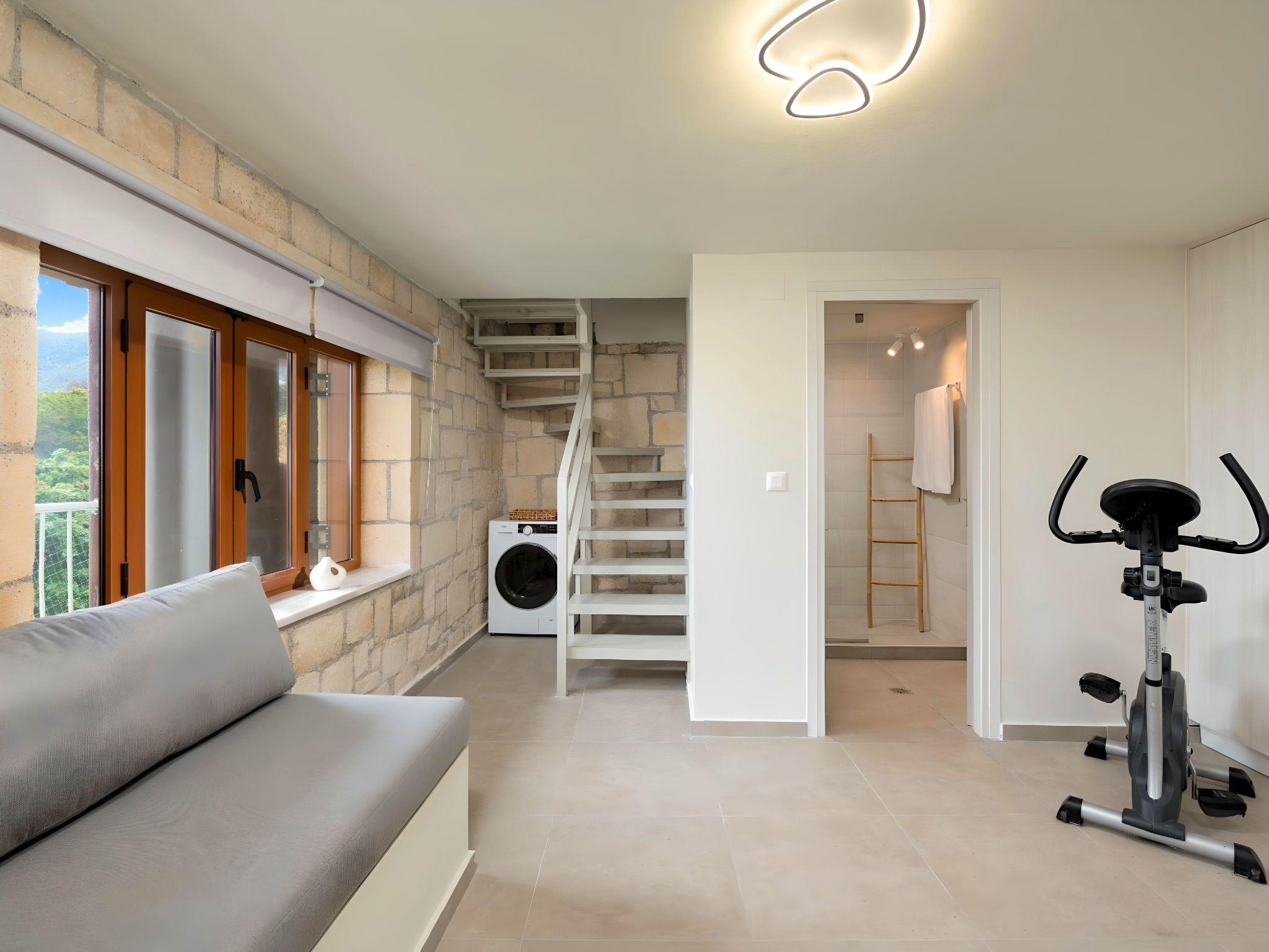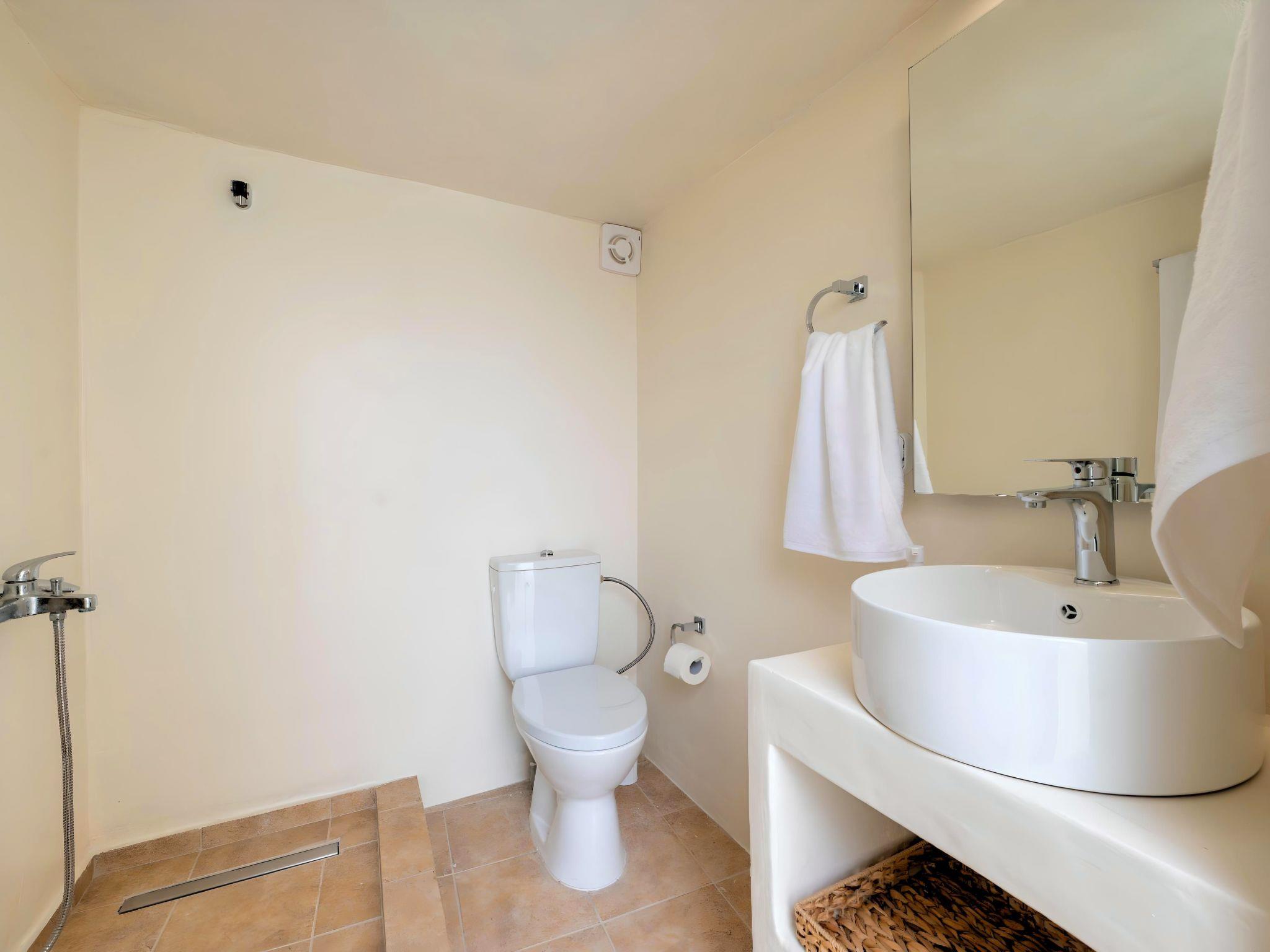 Inside, Soluna Villa lavishes its guests with a thoughtfully designed interior that caters to every need and preference. The house is fully equipped with air conditioning throughout, ensuring a cool and comfortable environment for all. Convenience is provided by the inclusion of a washing machine and a clothes dryer for exclusive use within the property, making it easy to take care of laundry needs during your stay. The kitchen is well-appointed with modern appliances, including an espresso coffee pot, a dishwasher, and an electric kettle—perfect for self-catering and indulgent home-cooked meals.