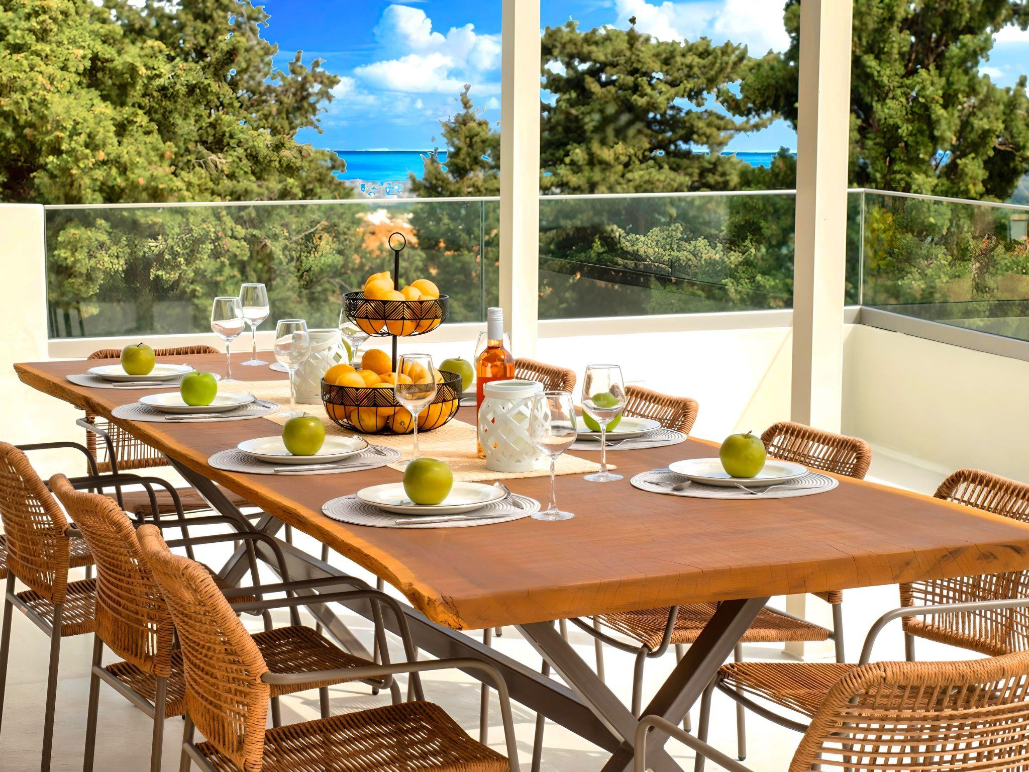 The exterior of Soluna Villa is just as impressive as its interior. The highlight is undoubtedly the large swimming pool, available for sole use by the guests. It's surrounded by a spacious terrace equipped with sun lounges, ideal for days spent soaking up the Greek sun. The BBQ area is perfect for those who enjoy outdoor dining and is a great place to gather friends or family for a culinary feast under the stars. The detached house layout ensures total privacy for your group, offering a personal oasis away from the hustle and bustle.