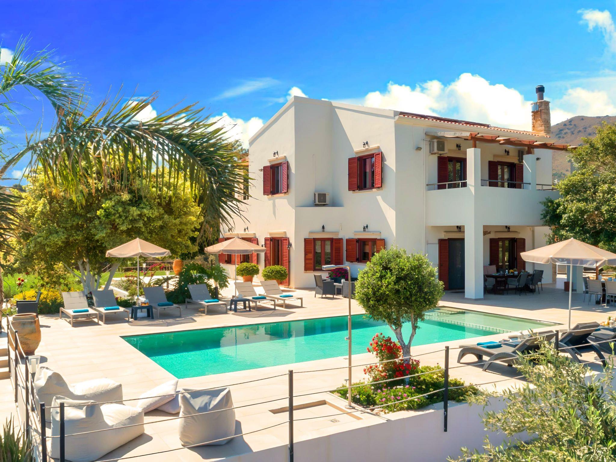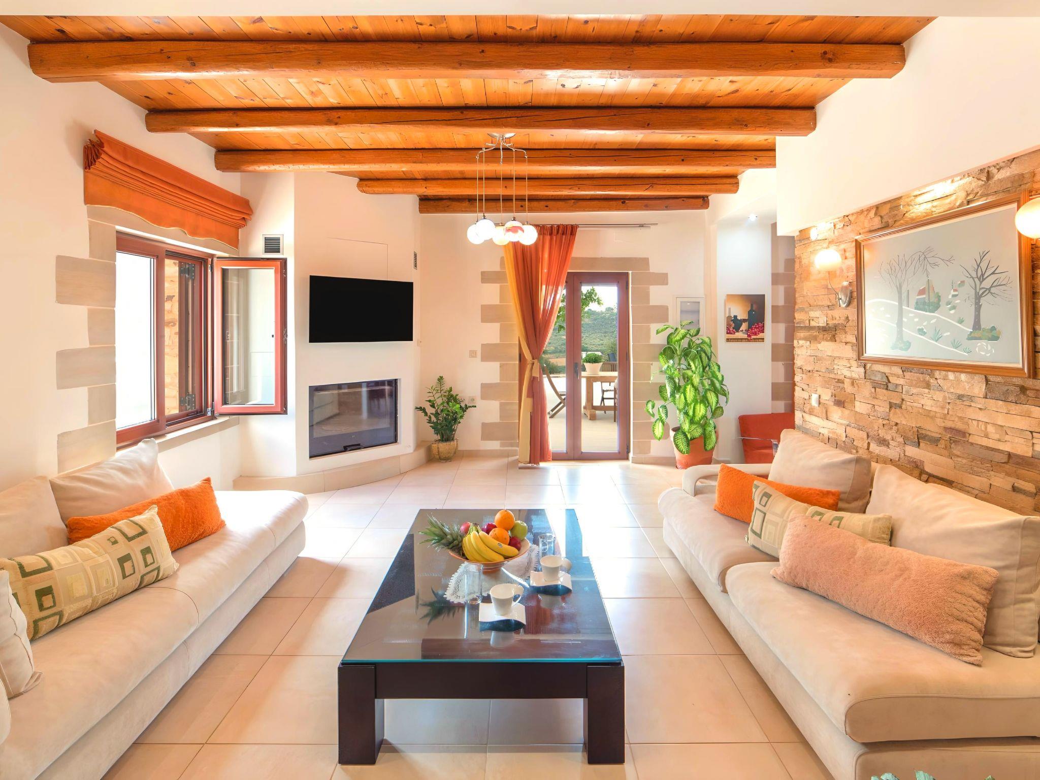 Nuzzled in a gorgeous hill, above the sun kissed beach of Georgioupolis in Crete, Cretan Dream Villa captures the essence of relaxing living only few minutes away from the shimmering sea. Built amphitheatrically with direct sea view, this elegant Villa evokes the island’s Mediterranean spirit and cosmopolitan charm in its elegant environs while ensuring a holiday beyond comparison. Surrender to the temptations of refinement at one of the most enchanting Cretan Villas and take in the splendid panoramic views to the emerald Cretan Sea. Find your peace and quiet and unwind in a haven of bliss and tranquility. Hide away in the calm of summer and elevate your senses at one of the most remarkable Villa with private pools. Cretan Dream Villa can accommodate up to 17 guests ( 13 in the bedrooms) and 4 more at the sofas in the living room).