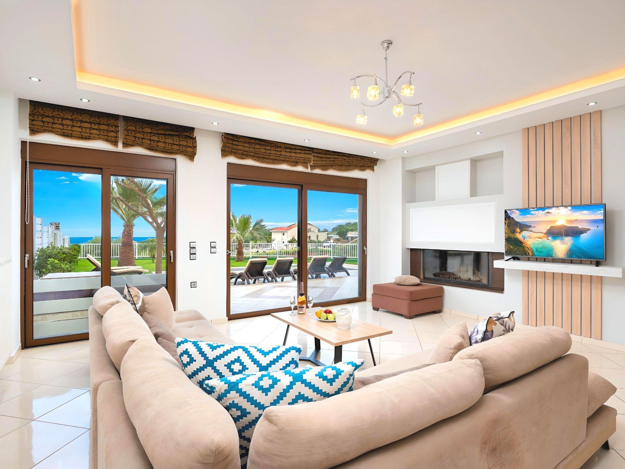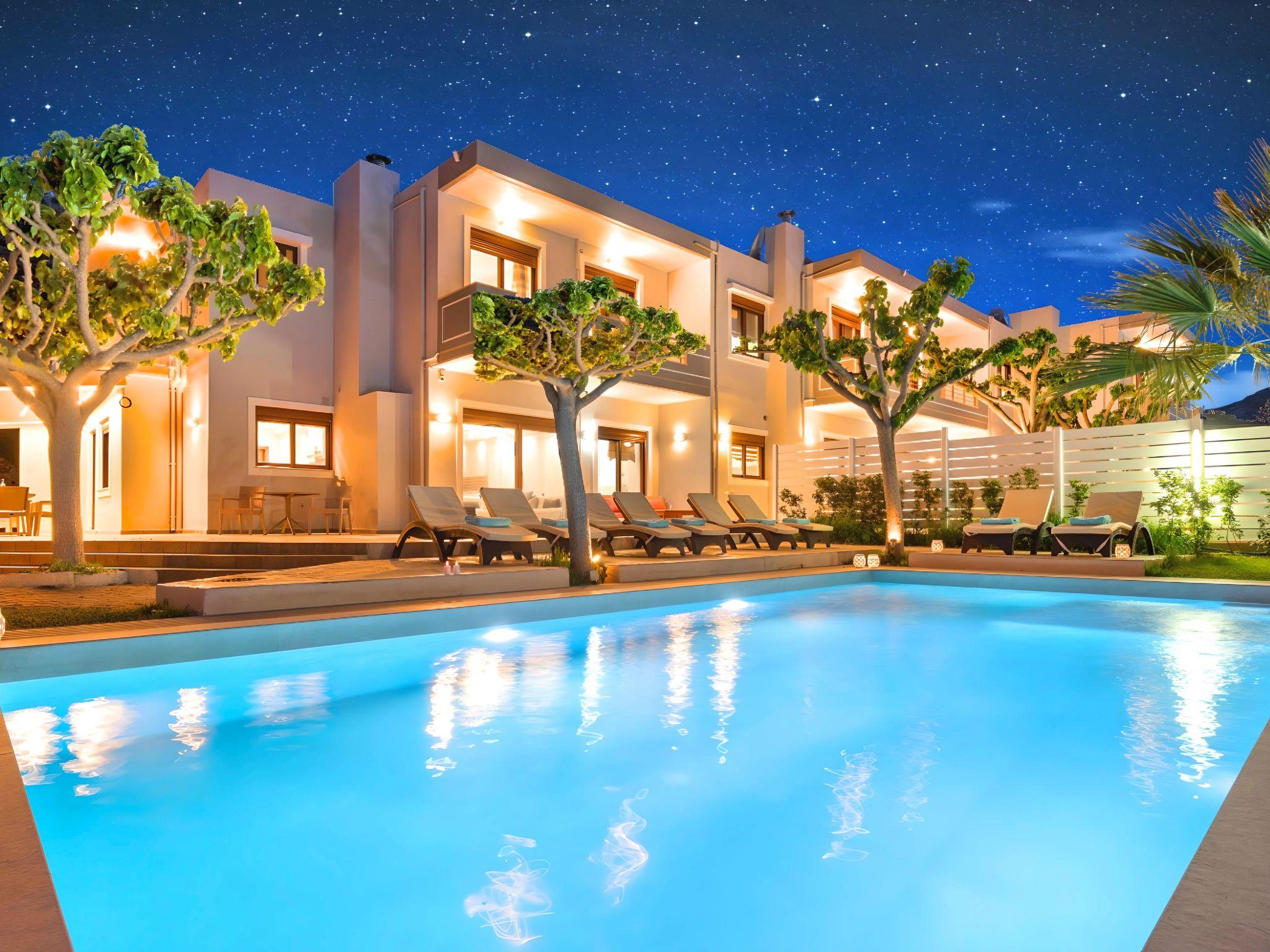 At the sublime junction where the green of the olive groves meets the midnight blue waters of the Cretan Sea, one finds Crete’s newest addition: Sunlight Villas. The 3-villa retreat constitutes a new kind of hospitality for the island, where a stripped-down contemporary aesthetic animates a next-generation social hub for sophisticated travelers. At only 5 minutes walking distance from Georgioupolis, the picturesque town of the eucalyptus trees and the turtle river, Sunlight Villas is the destination point as regards the accommodation, in this amazing island of great natural beauty. From our Villas you may commence your daily excursions and explorations to island beauties, beaches, sightseeing, night life … and that’s not all! Sunlight Villas exudes an aura of serenity, inviting guests to succumb to the pleasures of luxurious tranquility. Amidst the open sky and the azure sea, nature meets luxury & refinement, enveloping visitors in an ambiance of peace, calm and exclusivity. All Villas are fully equipped, offering our quests the required convenience in order to enjoy unforgettable relaxing vacations throughout spring, summer and autumn. Sunlight Villas are ideal for big families, a group of families or a group of friends. Enjoy your vacations with your parents or with the rest of your family members while at the same time preserving your privacy just like at your own home. Our Villas are built one next to the other. Sunlight Villas can accommodate up to 36 guests.Short descriptionOther : Non-smoking houseShort description 1Number of kitchens : 3SurroundingNearby sports facilities : Basketball, Bike tours, Canoeing, Climbing, Diving, Fishing, Mountain climbing, Mountainbiking, Riding possibilities, Sailing, Surfing, Tennis, Water skiingRental Facilities : Boat rental serviceGarden and outdoorGarden facilities : Garden furniture provided, GrillOn-site leisure facilities : Swimming poolService benefitsService facilities (may incur additional costs) : Transfer service (airport etc)