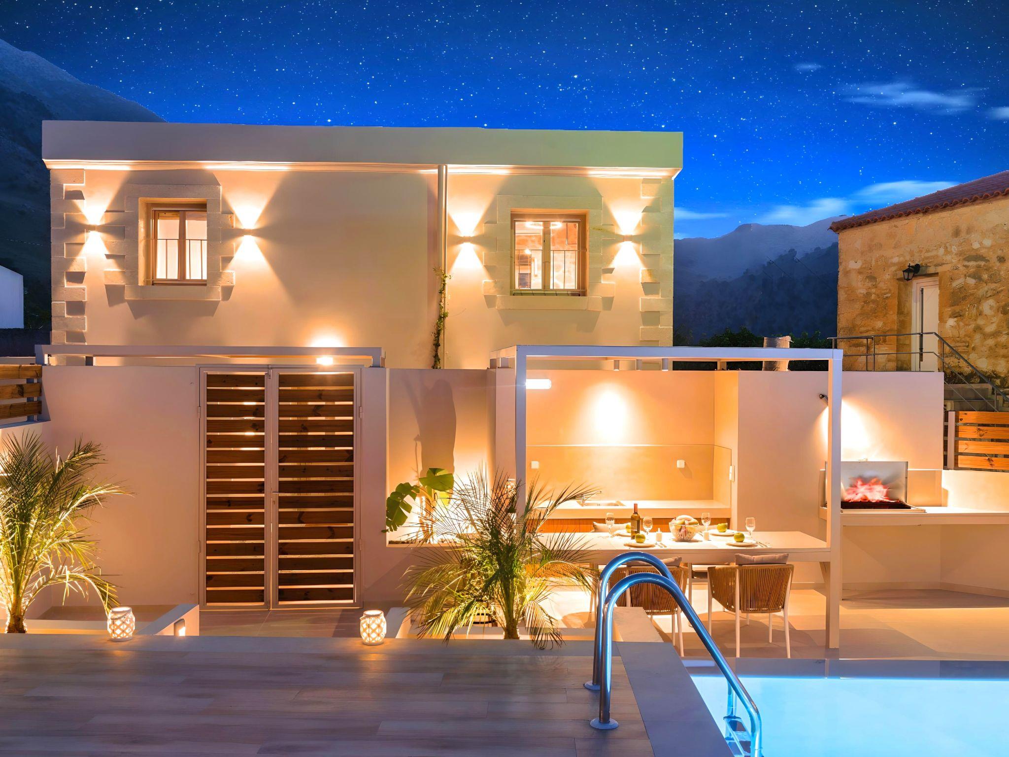 This autonomous two-storey stone house is designed to be your private retreat on Crete Island. The villa spans two floors, connected by an interior staircase.