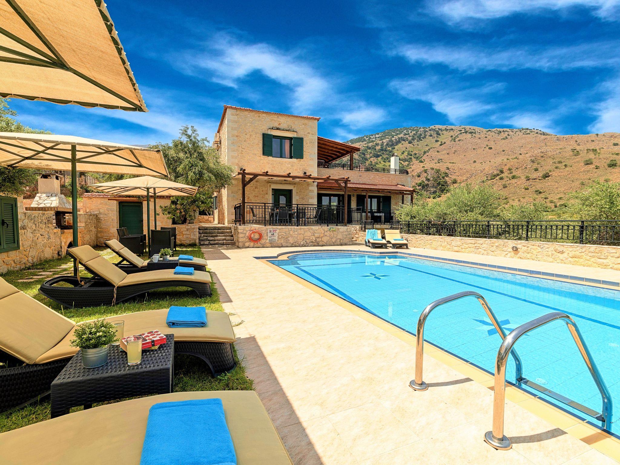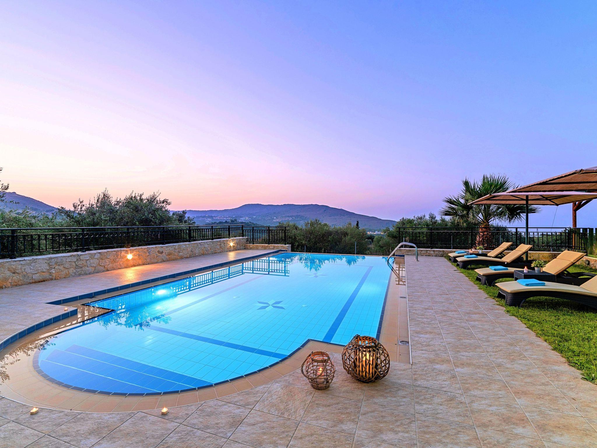 Villa Stelios is an exquisite and exceptionally well-built custom-made house able to accommodate every stage of life, all year round. The property is nestled over a hill before the village of Mathes overlooking Georgioupolis and the famous sandy beach (just 2km away).It forms a spectacular entertaining venue both inside and outside, with extended grounds featuring the Cretan landscaping with blooming bushes, olive groves and creeping plants. The interior is spacious and very bright while maintaining a cozy feel.Enjoy a magnificent pool area with splendid views of the Aegean Sea and the skyline of Crete.The villa affords privacy blended with sumptuous comfort set amidst a rural setting.Villa Stelios can accommodate up to 12 guests (10 in the bedrooms) and 2 more at the sofas in living room.The villa offers 5 Bedrooms, 3 Bathrooms, 220sqm Living Area, 6.000sqm plot surface, private pool 60sqm