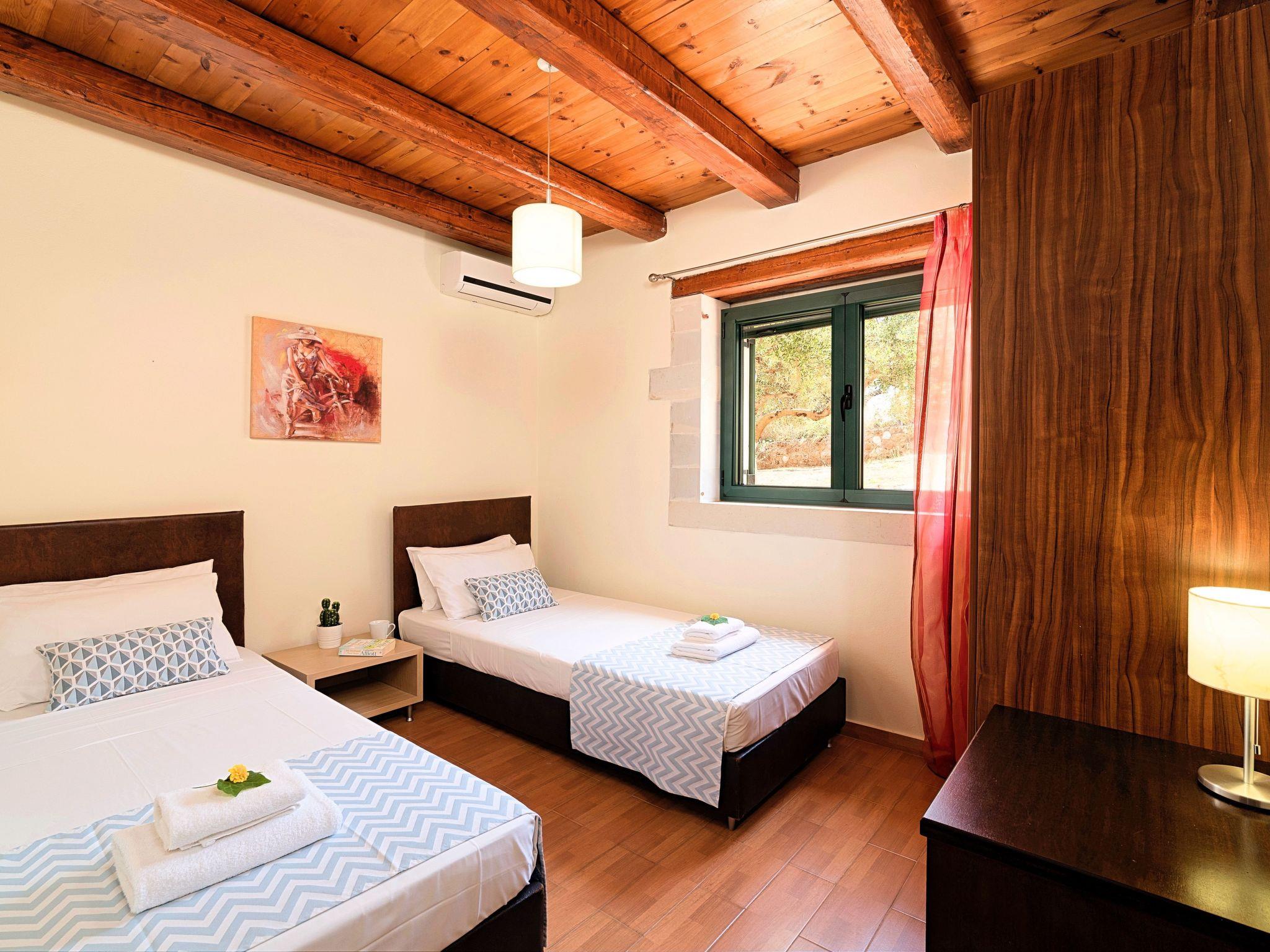 Facilities:Ground floor* A spacious living room with direct access to the terraces and the pool area.* Kitchen with an oven, a dishwasher, a fridge, a coffee maker, tea facilities, a juicer, a toaster, a dish set and a deep freezer* Dining area for 8-10 persons* A bedroom with two single beds ( can easily be pushed together) and air-condition.* Bathroom with shower* Terrace with outdoor seating / dining area and unlimited views* TV at the Living Room* Spacious Garden with outdoor furnitures and sunbeds* Large swimming poolA staircase leads to theUpper floor* A Large bedroom with a Queen size double bed, air-condition.* A Large bedroom with two single beds (pushed together), air-condition.* A large bathroom with bathtub and washing machine.* A Large terrace with sitting areaLower floor* A kitchenette area with TV set* A bedroom with two large single beds, air-condition * A second bedroom with a Queen size double bed, air-condition.* A bathroom with shower and a hairdryer.* Free Wi-Fi internet access* Outdoor Dinning Set (table with chairs)* Washing machine* An iron and an ironing board* Safe deposit box* Hair dryers* Fine linens and towels* Toiletries* Pool towels* Baby cot (two)* High chair (two)* Towels / bed linen, Cleaning- Every 3 or 4 days* Solar system for hot water* Fire extinguisher* First Aid Box* Parking area * BBQ with dining area
