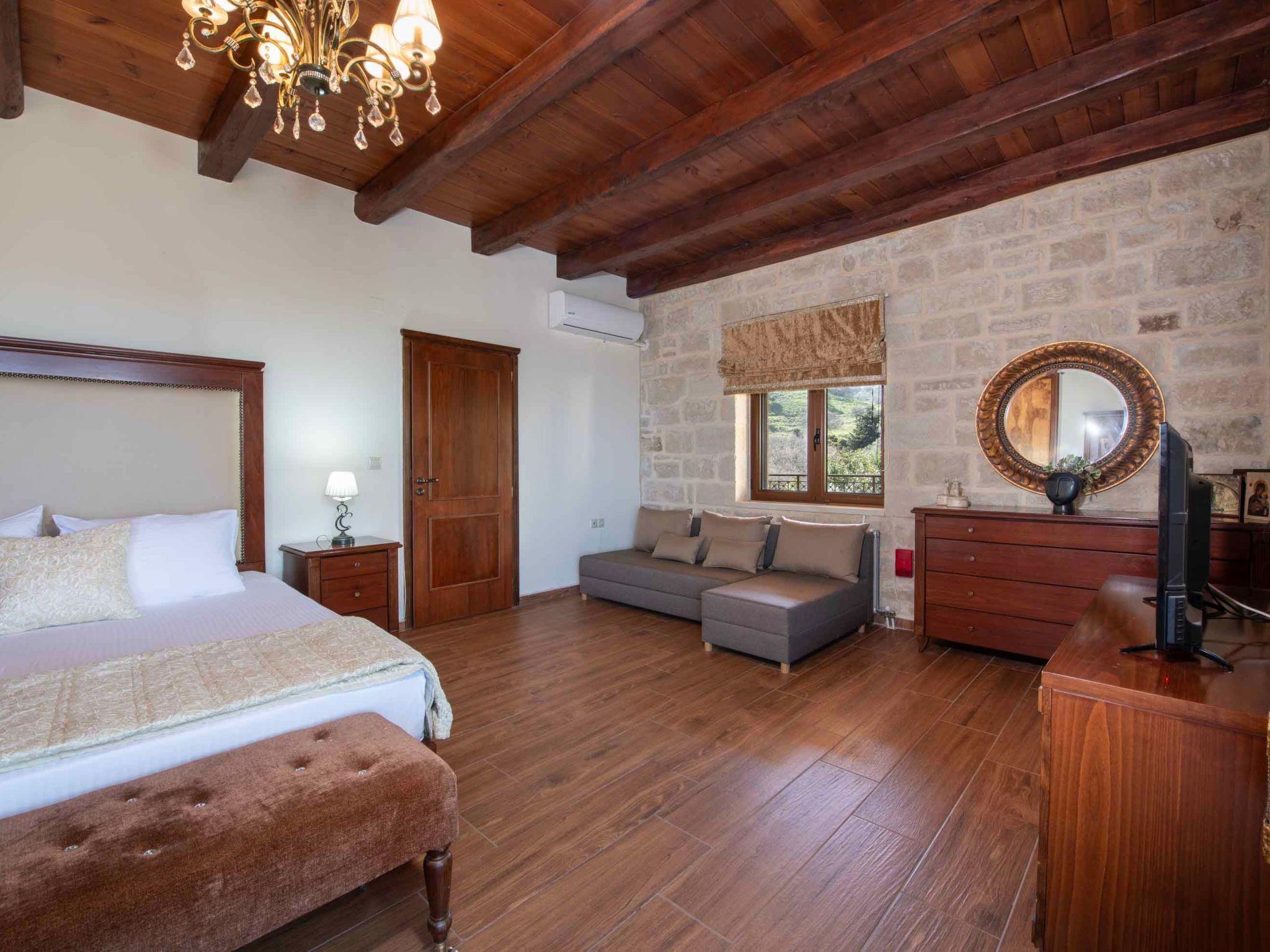 Nestled in the traditional village of Embrósneros, in the heart of the beautiful Apokoronas region of Chania, Geroulios Kastro Villa I enjoys an exceptional location that combines authentic Cretan charm with easy access to Crete’s top attractions. Surrounded by olive groves, vineyards, and gentle hills, the area offers a serene rural atmosphere while being only a short drive from the sandy beaches of Georgioupolis, Kalyves, and Almyrida.