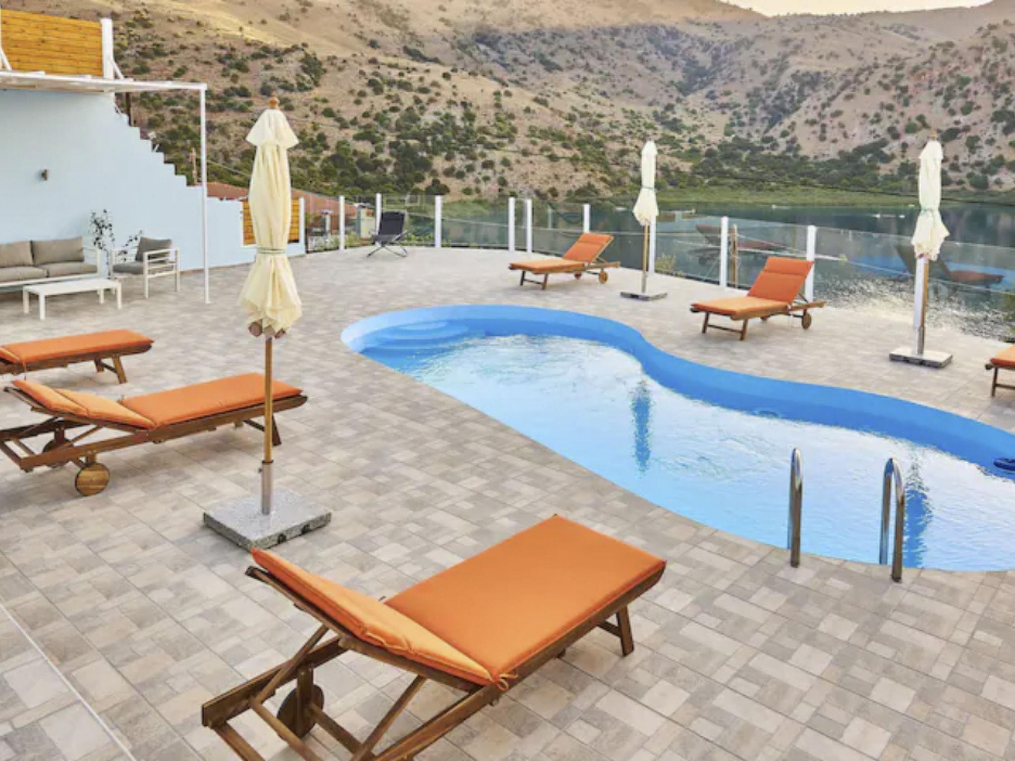 The perfect getaway for families or large groups! The home features 2 large and elegant villas that overlook Lake Kournas. We offer unobstructed views of the pristine lake and mountain landscape. Between lake activities and the surrounding cities, this getaway provides entertainment for everyone. Can accommodate up to 16 guests.