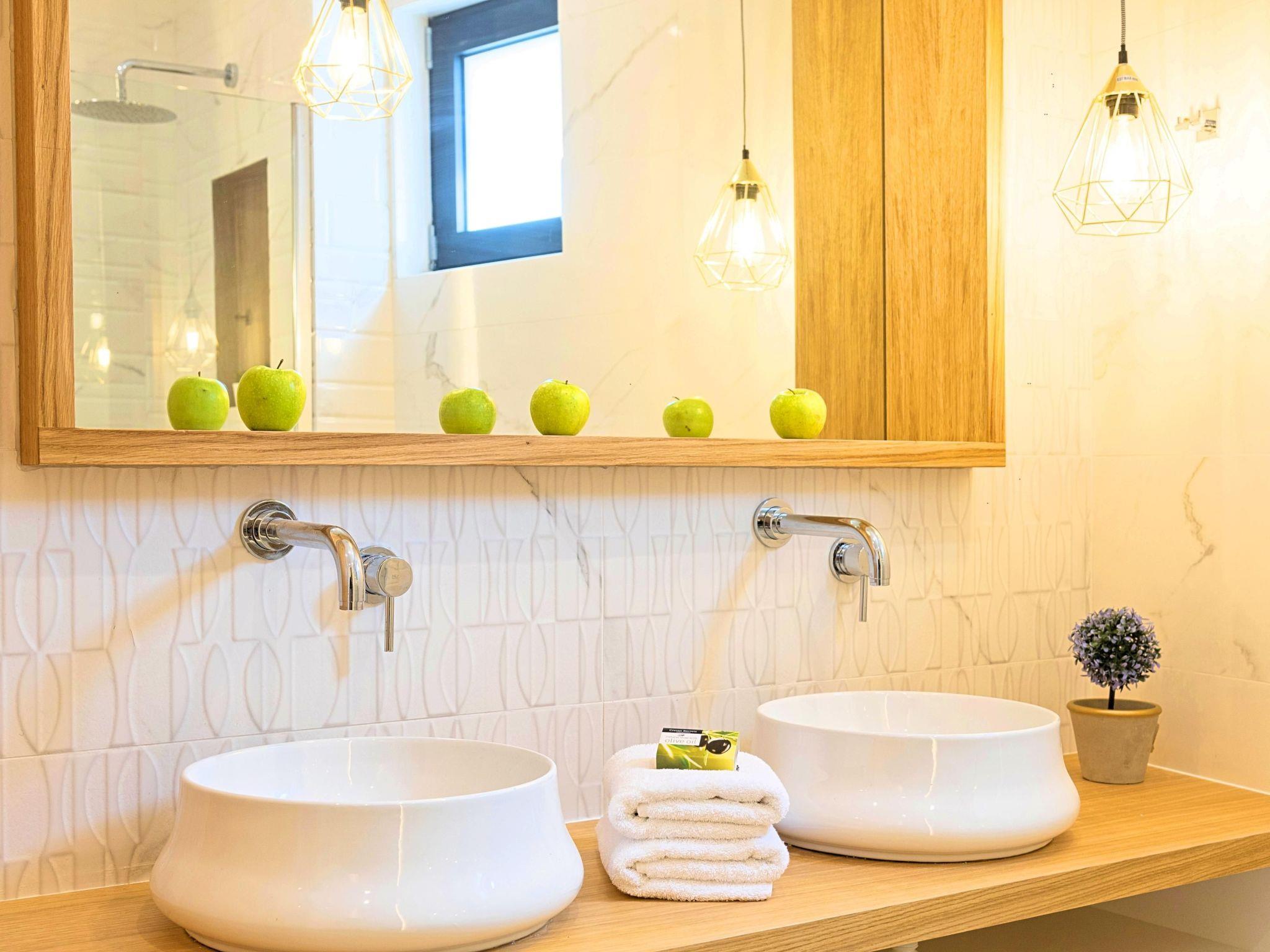Facilities * A living room with a large Corner Sofa (can accommodate up to two quests) with direct access to the terrace and the pool area * A fully equipped Kitchen with an oven, microwave dishwasher, a fridge, a coffee maker, tea facilities, a toaster, a kettle and dining facilities. * A large bathroom with walking separate shower area. * A bedroom with two twin push together single beds offering amazing views to the white mountains. * A large bathroom with walking separate shower area. * A second bedroom with a queen-size double bed and direct access to the garden and the outdoor sitting area. * A third bedroom with a queen-size double bed and direct access to the garden and the outdoor sitting area. General Facilities * Smart TV at the living room. * Air-conditioning in all areas. * Washing machine / Dryer. * Iron and ironing board. * Safe deposit box. * Hair dryer in both bathrooms. * Linen and towels. * Toiletries. * Swimming pool towels. * Baby cot. * High chair for children. * Towels and bed linen changed and cleaned every 3 or 4 days.