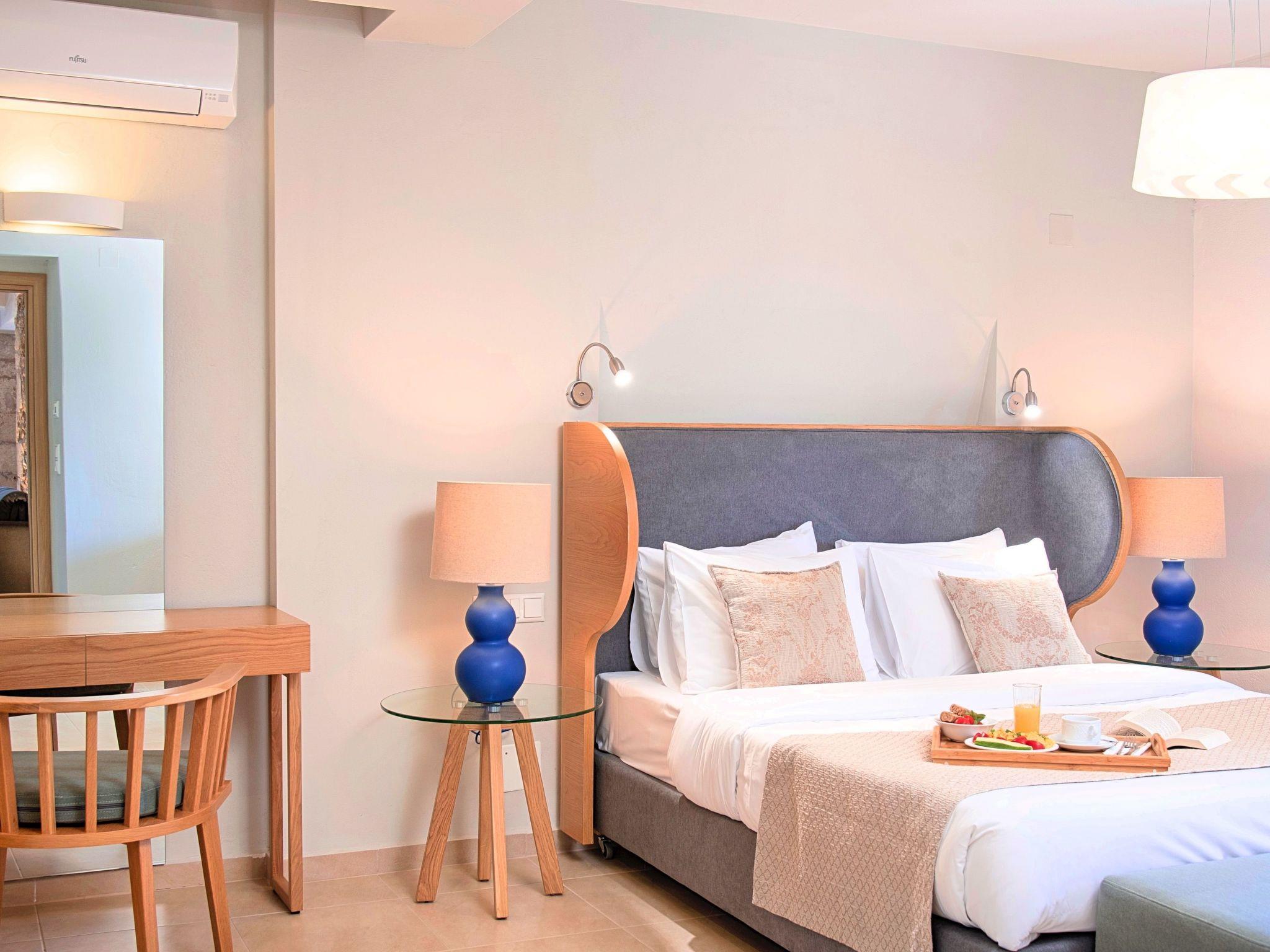 Built of stone and wood, Acrothea with the natural landscape between the slopes of the mountains and the olive trees while giving the sense of a settlement. Crafted with ambition to offer visitors a unique experience through the perfect combination of outdoor activities, the comfort of spacious house and personalized services. Designed with respect to Cretan architecture that ensures the comfort and pleasant hospitality experience of its guests, the house is nestled on the side of a hill. Enjoy fascinating views of the endless Cretan sea and of Kournas village. Luxury is in the fine tactful details, the villa presents a delightful landscape of island Mediterranean gardens, a tranquil atmosphere, protected from the usual crowds. Acrothea Villa is ideal for families or group of friends
