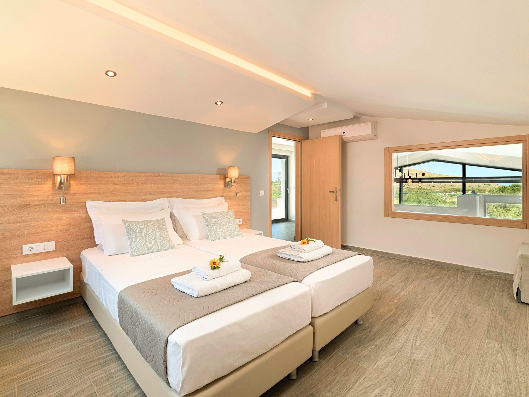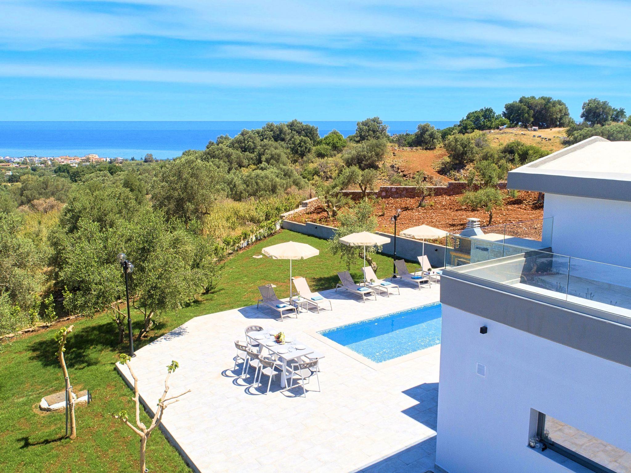 Nuzzled in an olive grove, above the sandy beach of Georgioupolis in Crete, Moon Light Villas captures the essence of relaxing and comfort living. Villa’s complex is built amphitheatrically with amazing sea views. These elegant Villas evokes the island’s Mediterranean spirit and cosmopolitan charm in its elegant environs while ensuring a holiday beyond comparison. Surrender to the temptations of refinement at one of the most enchanting Cretan Villas and take in the splendid panoramic views to the emerald Cretan Sea. Find your peace and quiet and unwind in a haven of bliss and tranquility.Hide away in the calm of summer and elevate your senses at one of the most remarkable Villas with private pool. Moonlight Grand Villa is a complex of 3 private units with 3 private pools. Each One of Three Villas can accommodate up to 15 guests ( 10 in the bedrooms) and 5 more at the sofas in bedrooms or at the lower level living room. The max occupancy of this listing is 45 people.