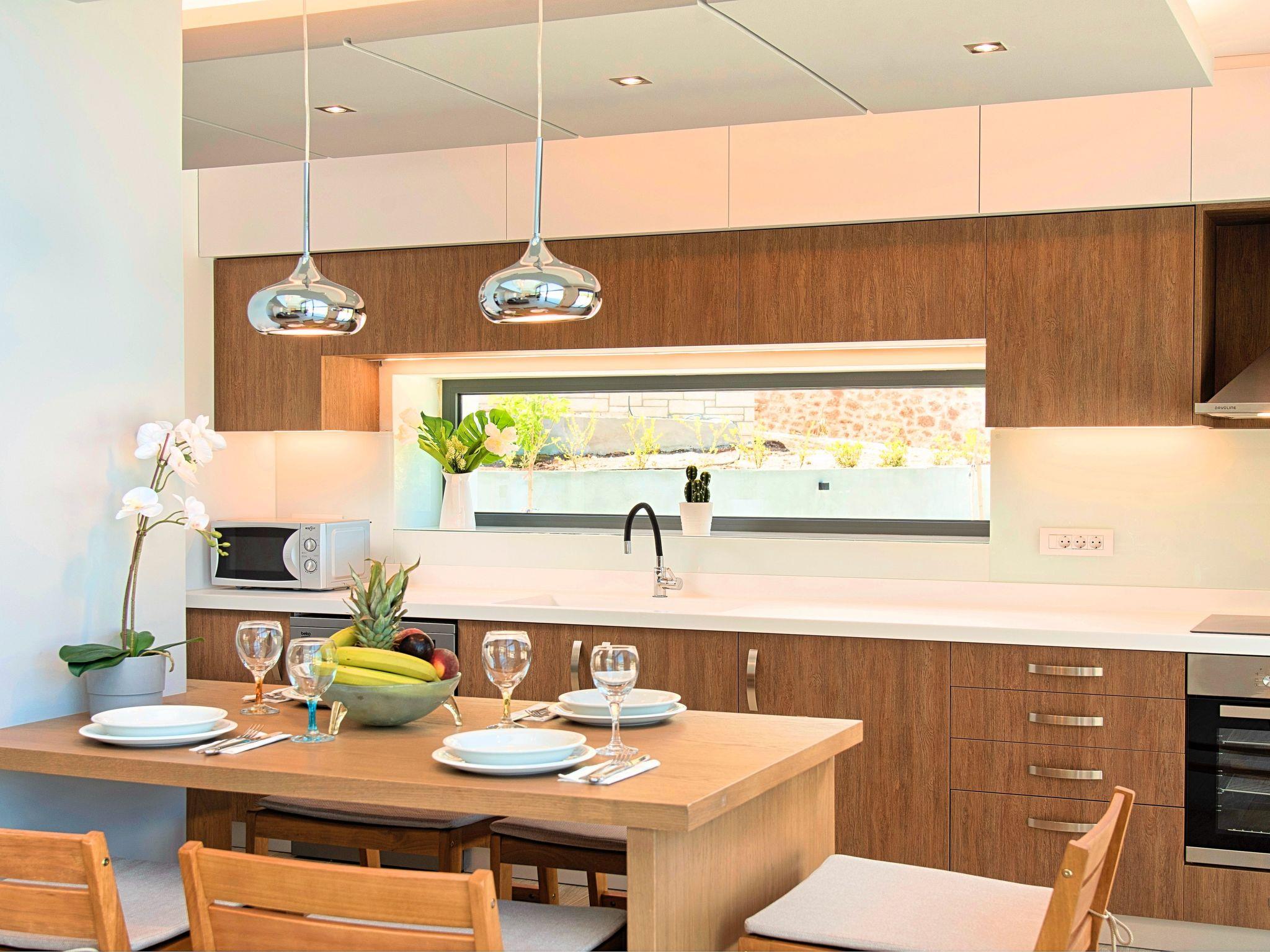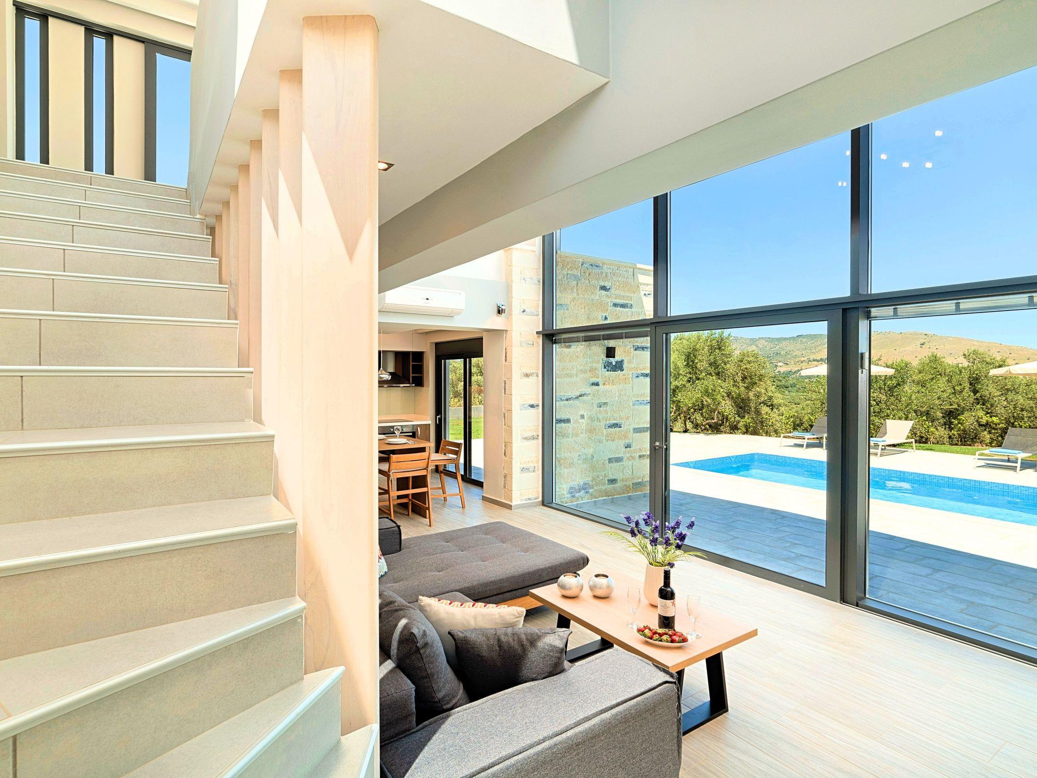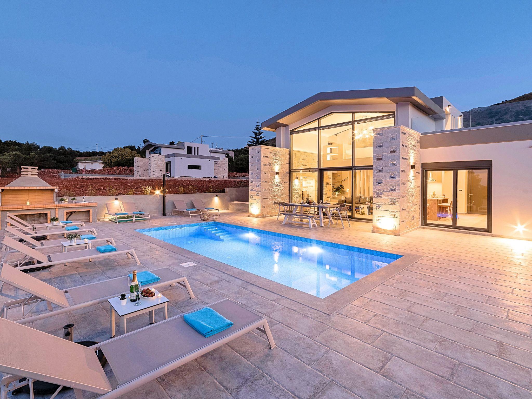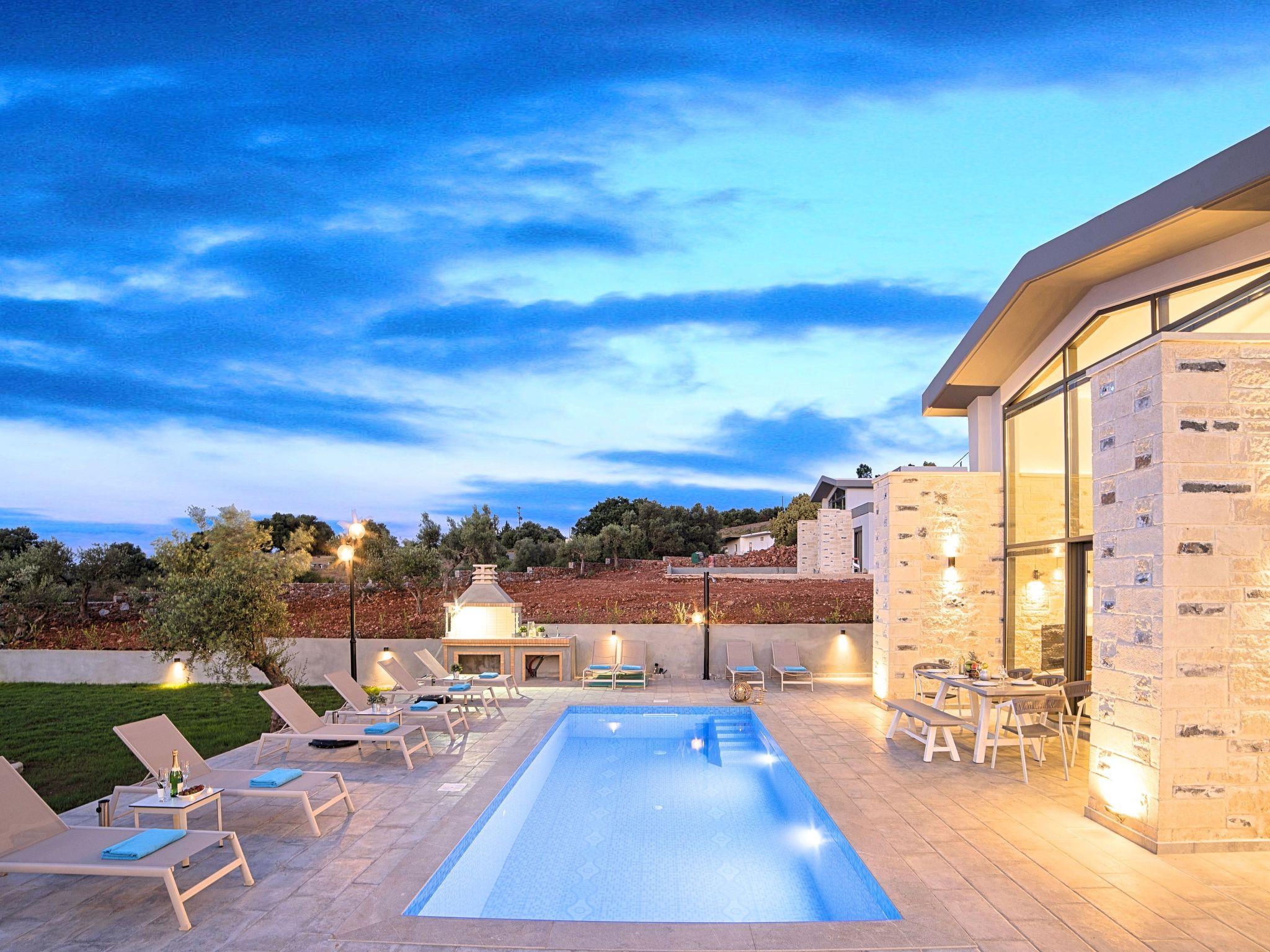 Nuzzled in an olive grove, above the sandy beach of Georgioupolis in Crete, Moon Light Villas captures the essence of relaxing and comfort living. Villa’s complex is built amphitheatrically with amazing sea views. These elegant Villas evokes the island’s Mediterranean spirit and cosmopolitan charm in its elegant environs while ensuring a holiday beyond comparison. Surrender to the temptations of refinement at one of the most enchanting Cretan Villas and take in the splendid panoramic views to the emerald Cretan Sea. Find your peace and quiet and unwind in a haven of bliss and tranquility.Hide away in the calm of summer and elevate your senses at one of the most remarkable Villas with private pool. Moonlight Maxima is a combination of 2 units next to each other. Each One of two Villas can accommodate up to 15 guests ( 10 in the bedrooms) and 5 more at the sofas in bedrooms or at the lower level living room. The max occupancy we can sleep is 30 people.