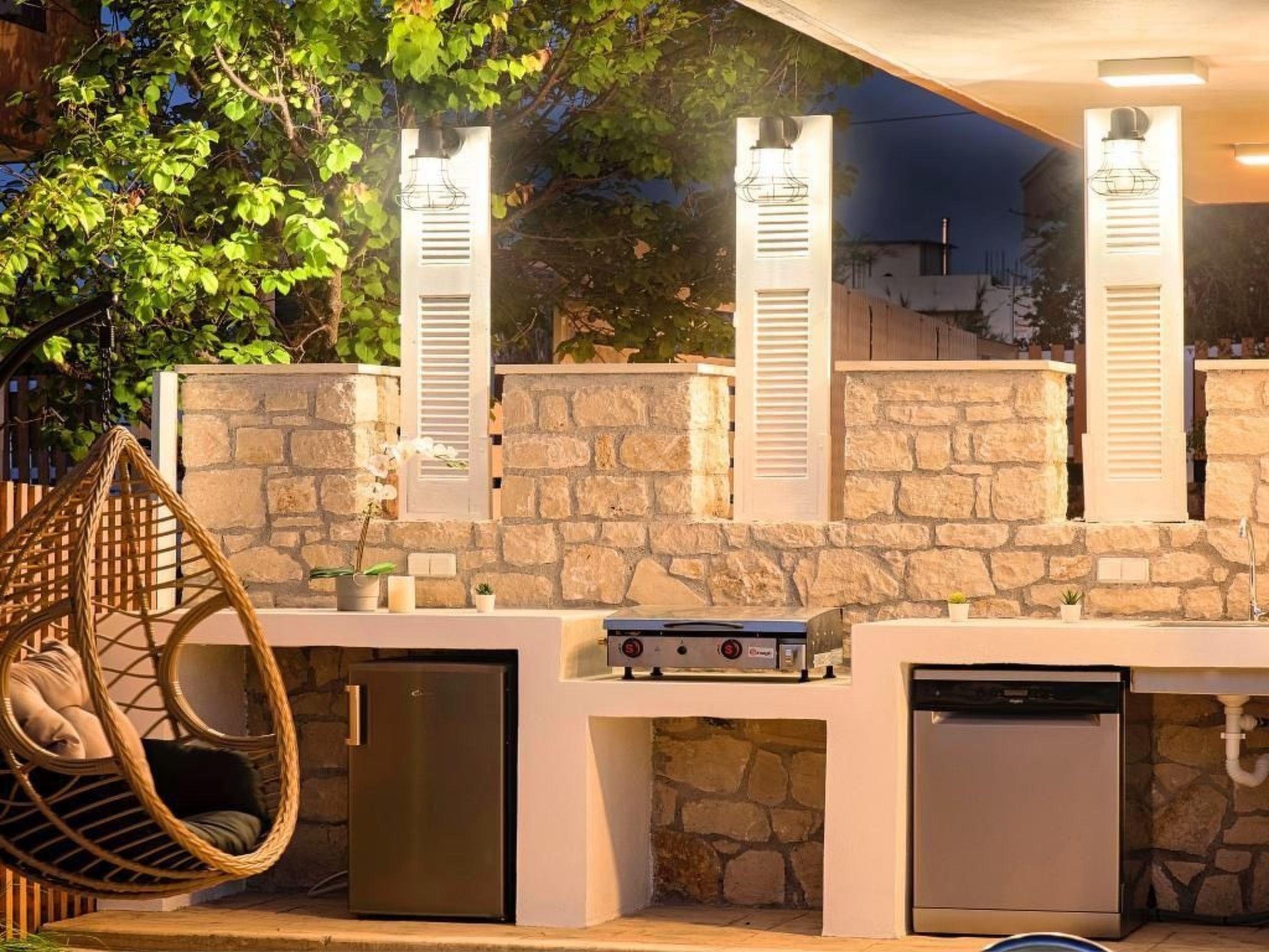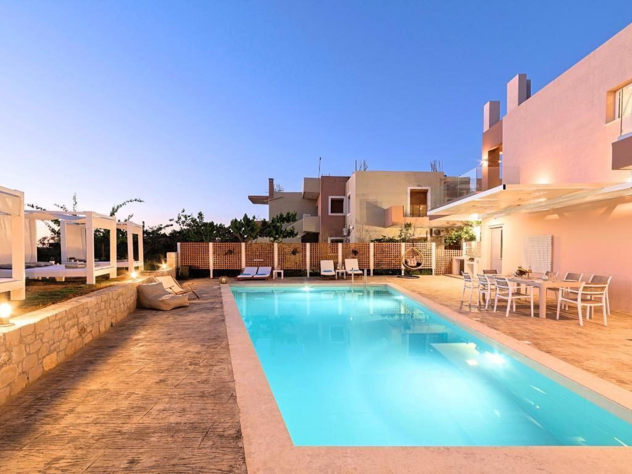 Just few meters away from the famous sandy beach of Kavros, Allas Villa creates the perfect holiday retreat for families or friends.Flooded with light, the 180-sq.m of living space has a bright contemporary feel. Outdoors, guests can dine on a charming garden, unwind in the private heated pool, having BBQ at Villas charming BBQ corner.Indoors, guests can lounge in the spacious living rooms or cook in the fully equipped kitchens.Enjoy the timeless Cretan setting and refined accommodation with each room mirroring your relaxing nest.In an ideal location, just two minutes from Kavros sandy beach and few minutes’ drive Kournas Lake.Both Chania city and Rethymnon Town are in very close proximity.In Allas Villa our aim is to offer you memorable vacations and the best possible accommodation.Allas Villa can accommodate up to 12 guests in two separate fully equipped apartments, easily accessible by disabled people .Short descriptionOther : Non-smoking houseShort description 1Number of kitchens : 2SurroundingNearby sports facilities : Diving, Mountain climbing, Tennis, Water skiingRental Facilities : Bicycle rental service, car rentalSurrounding 1Location description : Kavros is a tourist area on the National Road Chania-Rethymnon, approximately 41 km east of Chania and 19 km west of Rethymno, only just 3 km from Georgioupolis. Although it is close to Rethymno, the area is considered to belong in the prefecture of Chania. An amazing area with a wide variety of hotels covering your every need, one next to the other, with the 10km long beach stretching from Georgioupolis beach and ending to the east up to Episkopi, is the ideal destination to consider when travelling abroad.The beach is perfectly organized, but is exposed to the north winds so have that in mind and be careful when you swim and its quite windy. Apart from that we are talking about an amazing beach that will make you absolutely adore the area of Kavros. This is the ideal holiday destination for families that wish to spend quality time together far and away from all the busy winter times and discover their more natural self. The thing is that here it would be difficult for you not to adore this beach! Besides Kavros is a seaside resort that is in general a quieter place than Georgioupolis and is situated in the heart of the astonishing Kavros.Besides the most characteristic part of the district is the natural water system which is thought to be one of the most important systems in the East Mediterranean. With Lake of Kournas, Almiros River, and an amount of streams like Delfinas River that borders on the beach, you will fell astonished by this diverse and amazing scenery in the heart of Chania.Take you time to relax and swim at one of the most amazing beaches in the whole of Crete as only this way you will be able to understand what the Greek summer is all about: sea and sun in the front row!Garden and outdoorGarden facilities : Garden furniture provided, Grill, Summer houseOn-site leisure facilities : Outdoor swimming pool exclusive use, Swimming pool