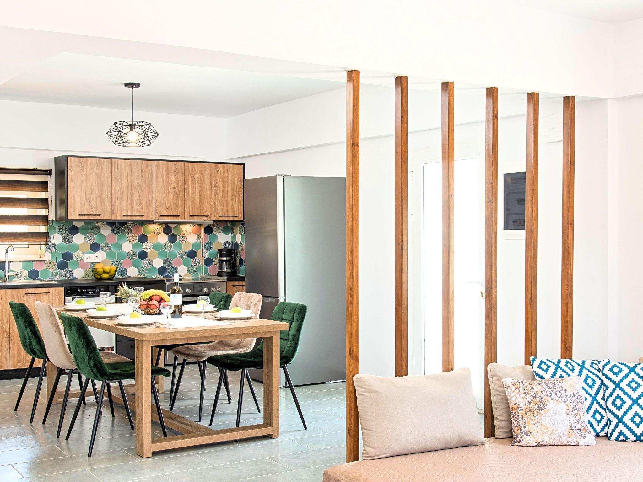 Inside, the Georgioupolis Blue Villa presents a harmonious balance of convenience and comfort, equipped with air conditioning throughout to ensure a pleasant environment on those warm Greek days. For those practical needs, the villa is outfitted with both a washing machine and a clothes dryer for exclusive use, making it easy to look after all laundry requirements without any hassle. Daily routines are further simplified with the inclusion of a dishwasher, coffee machine, and electric kettle in the fully equipped kitchen, allowing more time to enjoy the myriad of activities and experiences that Georgioupolis offers.
