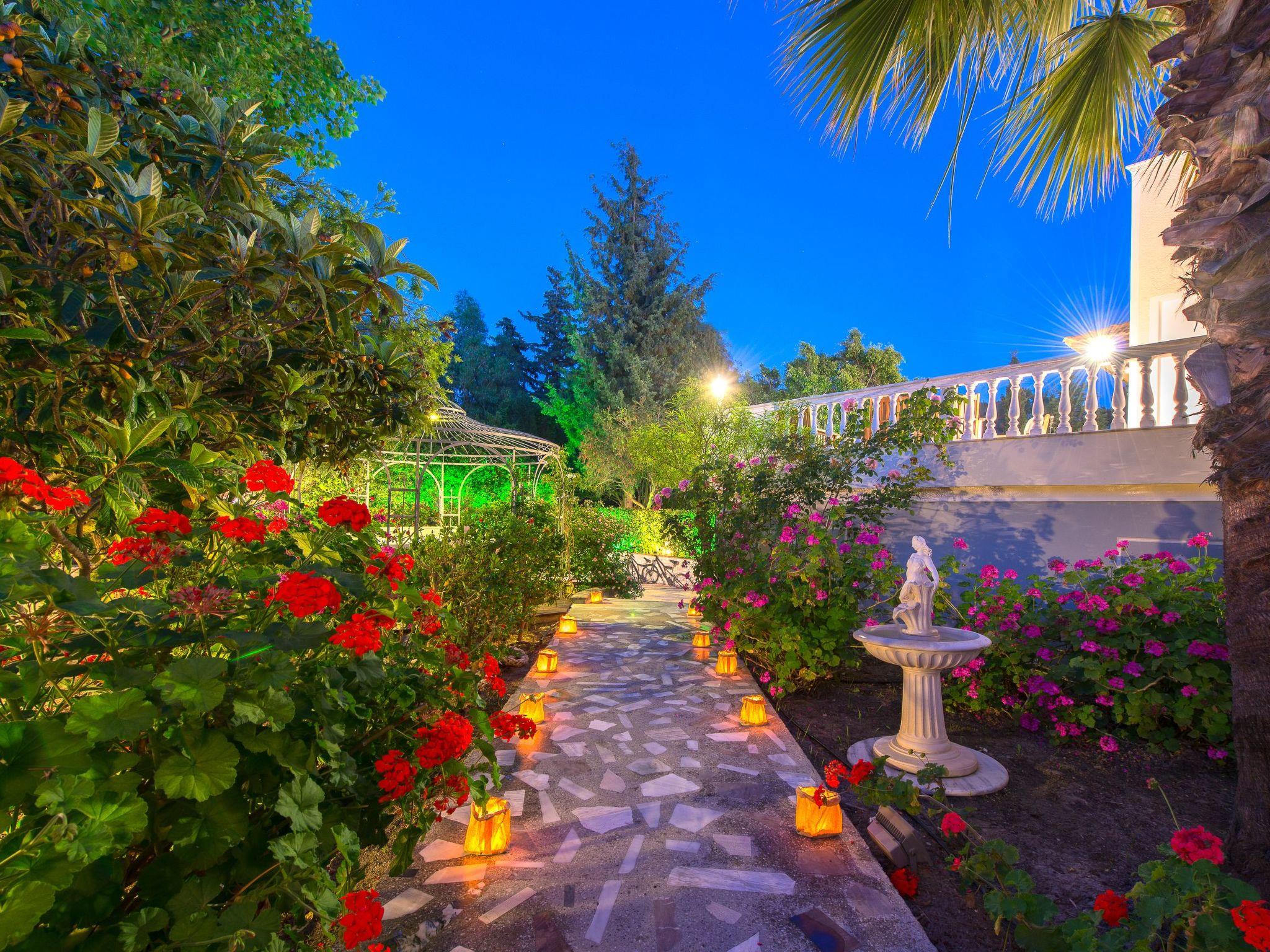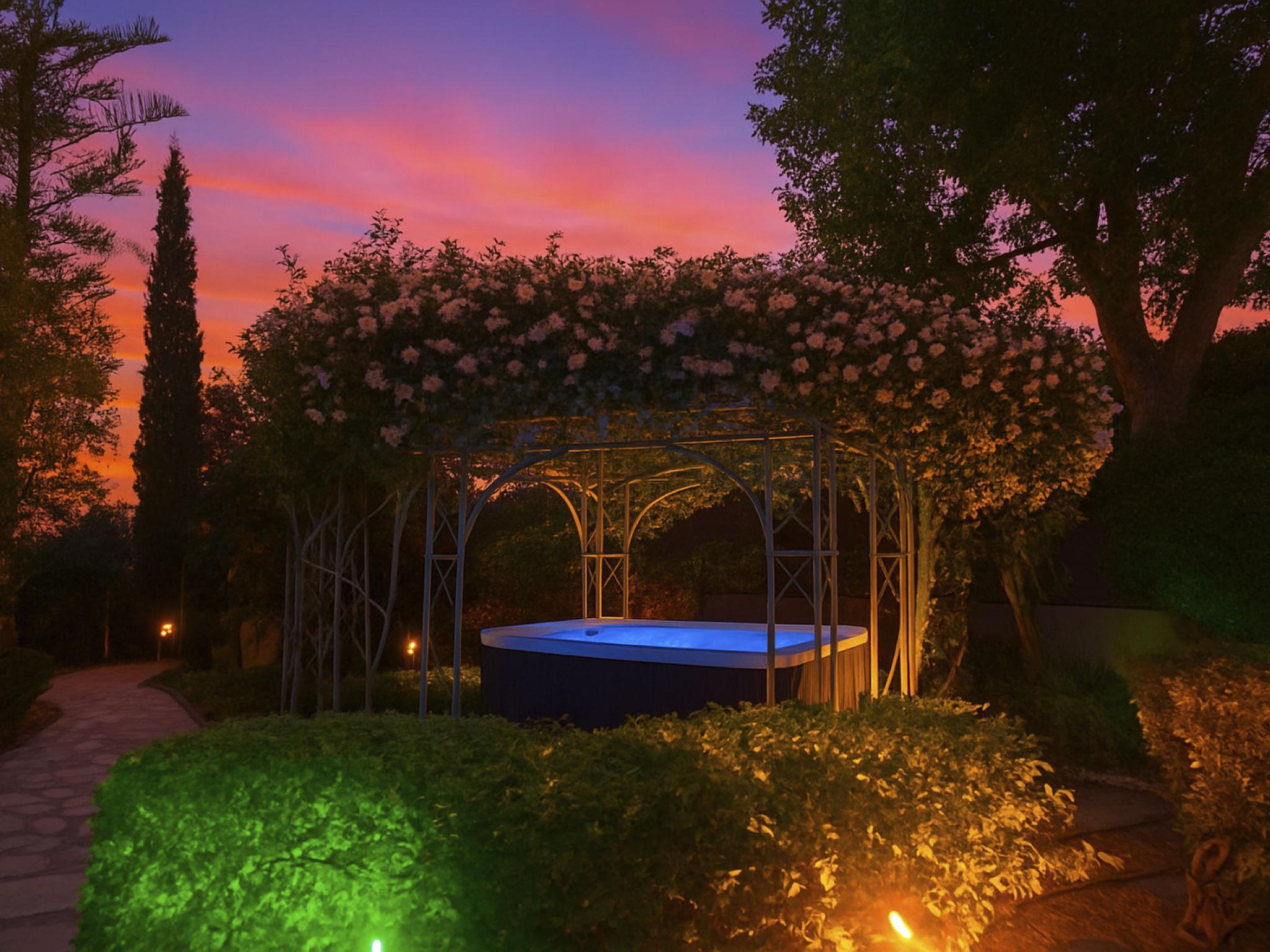 Within the garden, among the vibrant flowers, you will also find an outdoor hot tub for 5–6 people—ideal for a romantic or therapeutic soak enhanced by warm water and essential oils.