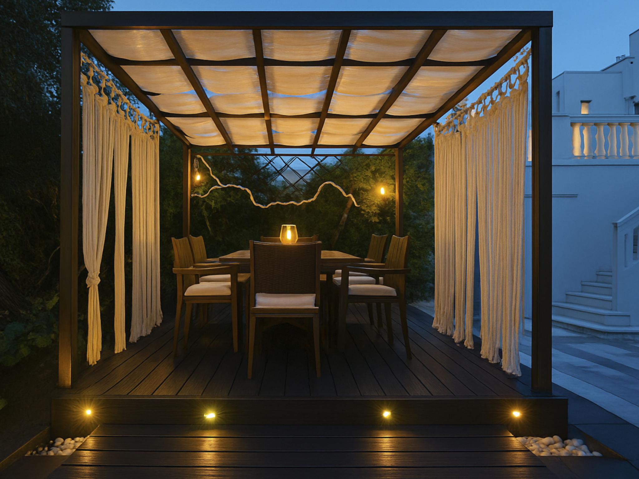 You’ll also enjoy grilling at the large stone BBQ under the pergola and dining at the wooden outdoor table on the veranda. In the evening, unwind with a glass of wine, a drink, or a beer in the beautifully lit garden, listening to the tranquil sounds of the fountain or the pool water, and enjoy a truly relaxing atmosphere and experience.