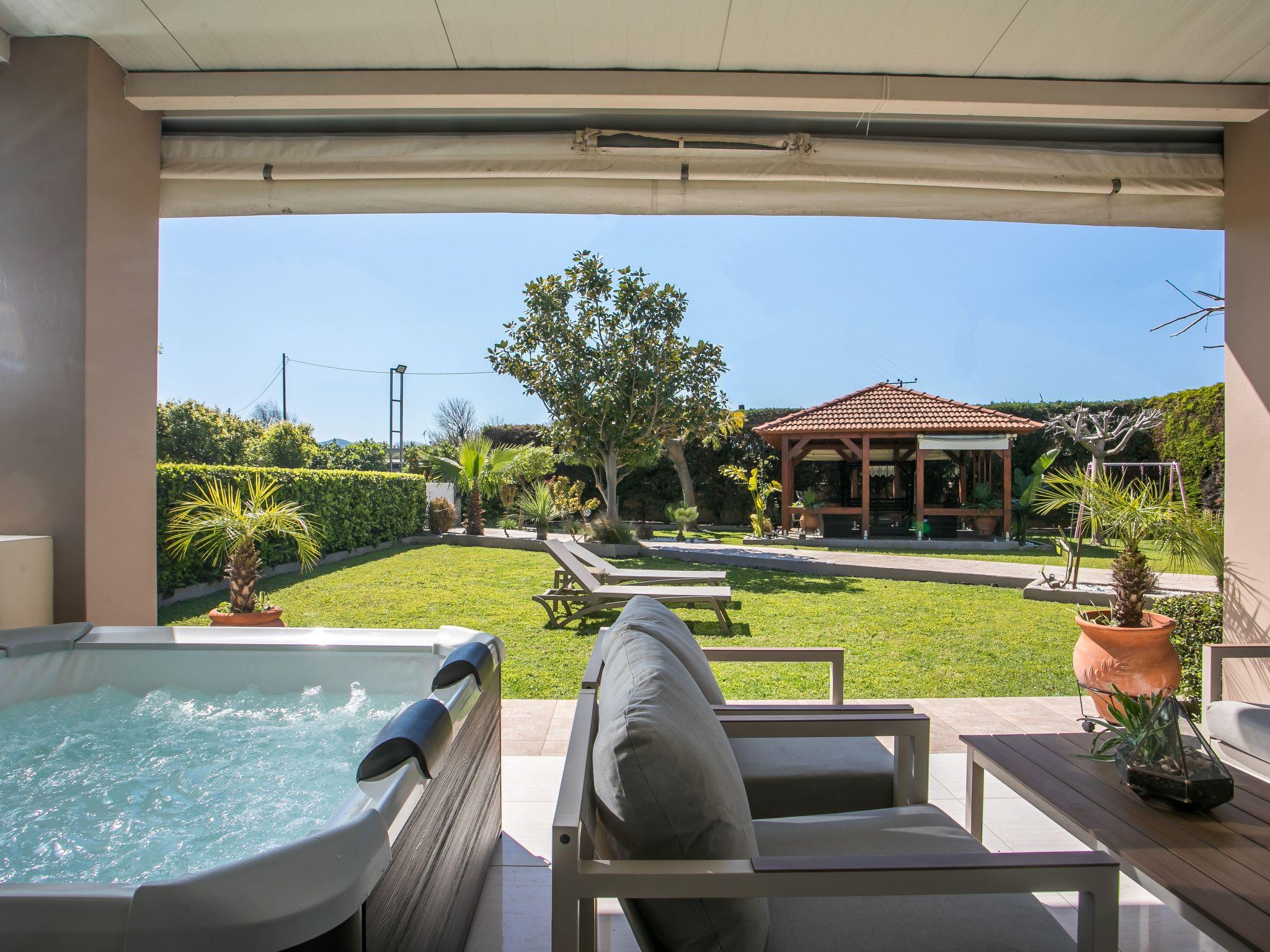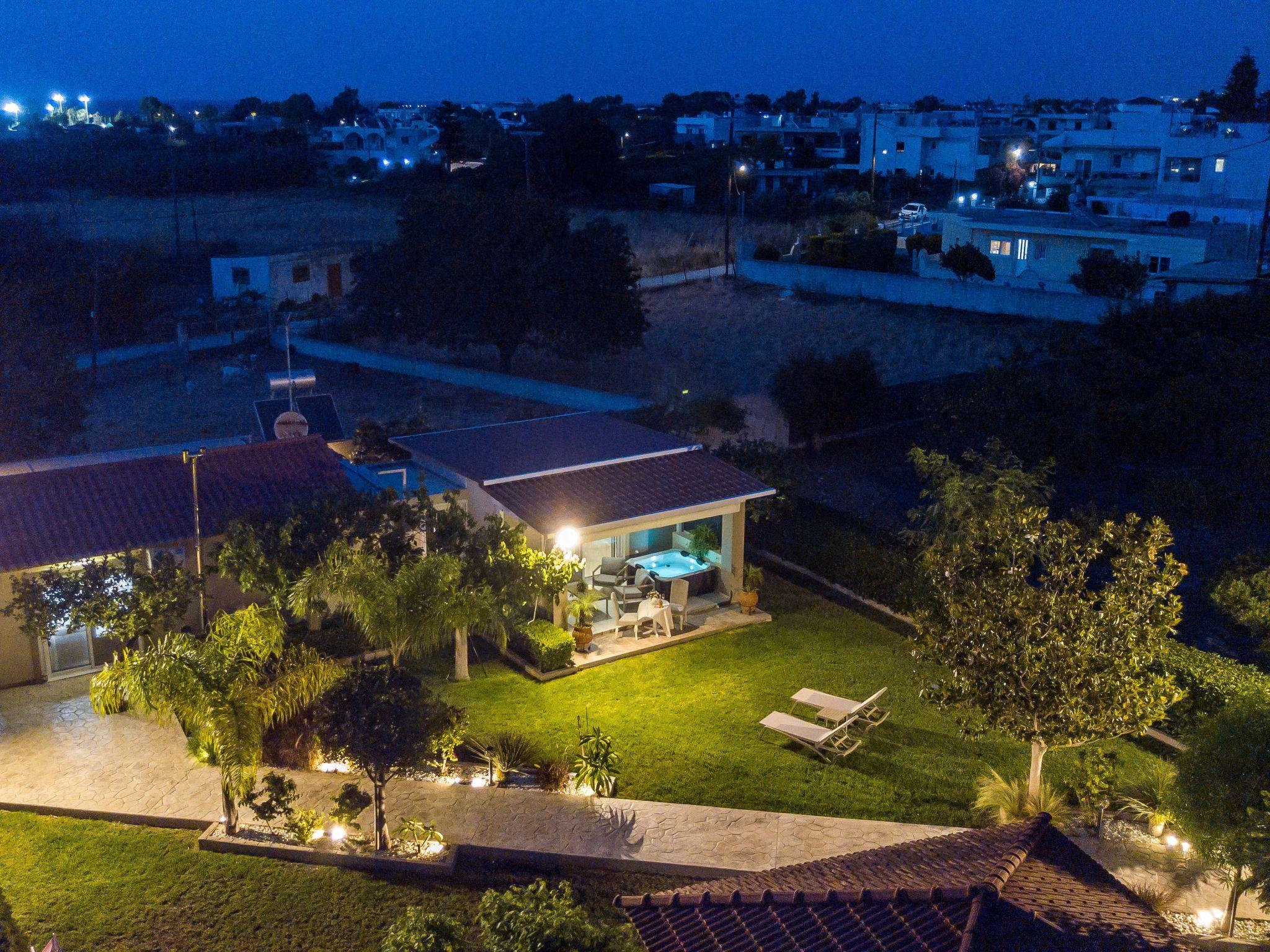 This luxurious holiday home features a hot tub. Featuring a private entrance, this air-conditioned holiday home consists of 1 living room, 2 separate bedrooms and 2 bathrooms with a shower and a bidet. Guests will find a stovetop, a refrigerator, a dishwasher and kitchenware in the kitchen. The holiday home also offers a barbecue. Boasting a terrace with garden views, this holiday home also provides a washing machine and a flat-screen TV with streaming services. The unit offers 5 beds. mini market restaurants and bus station about 500 metres closed for Rhodes and airport