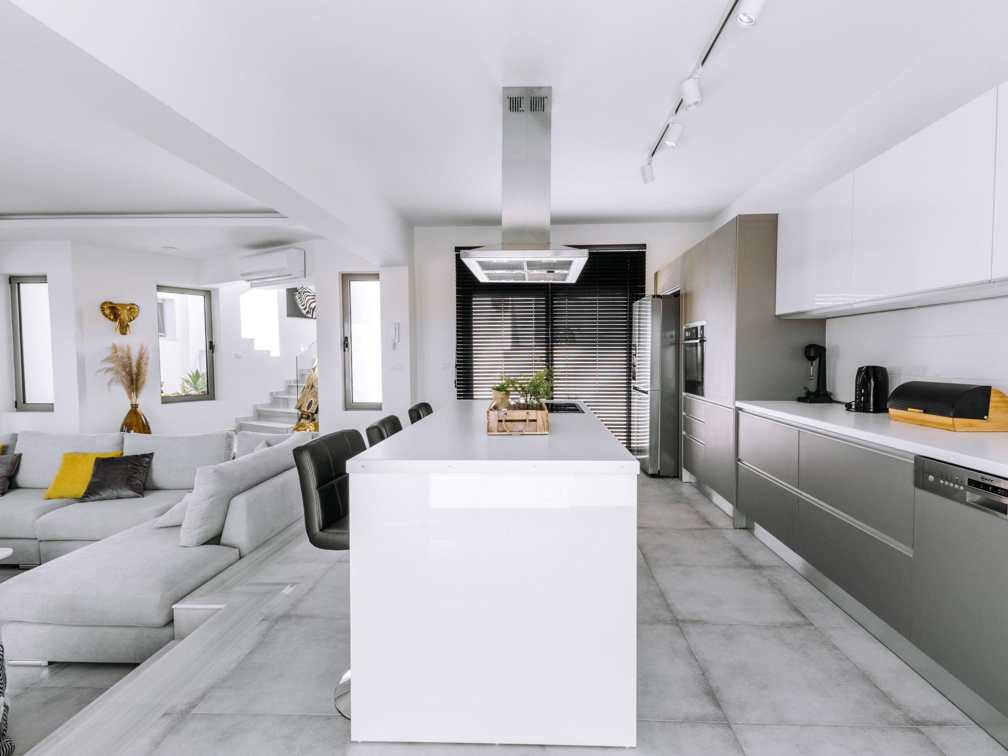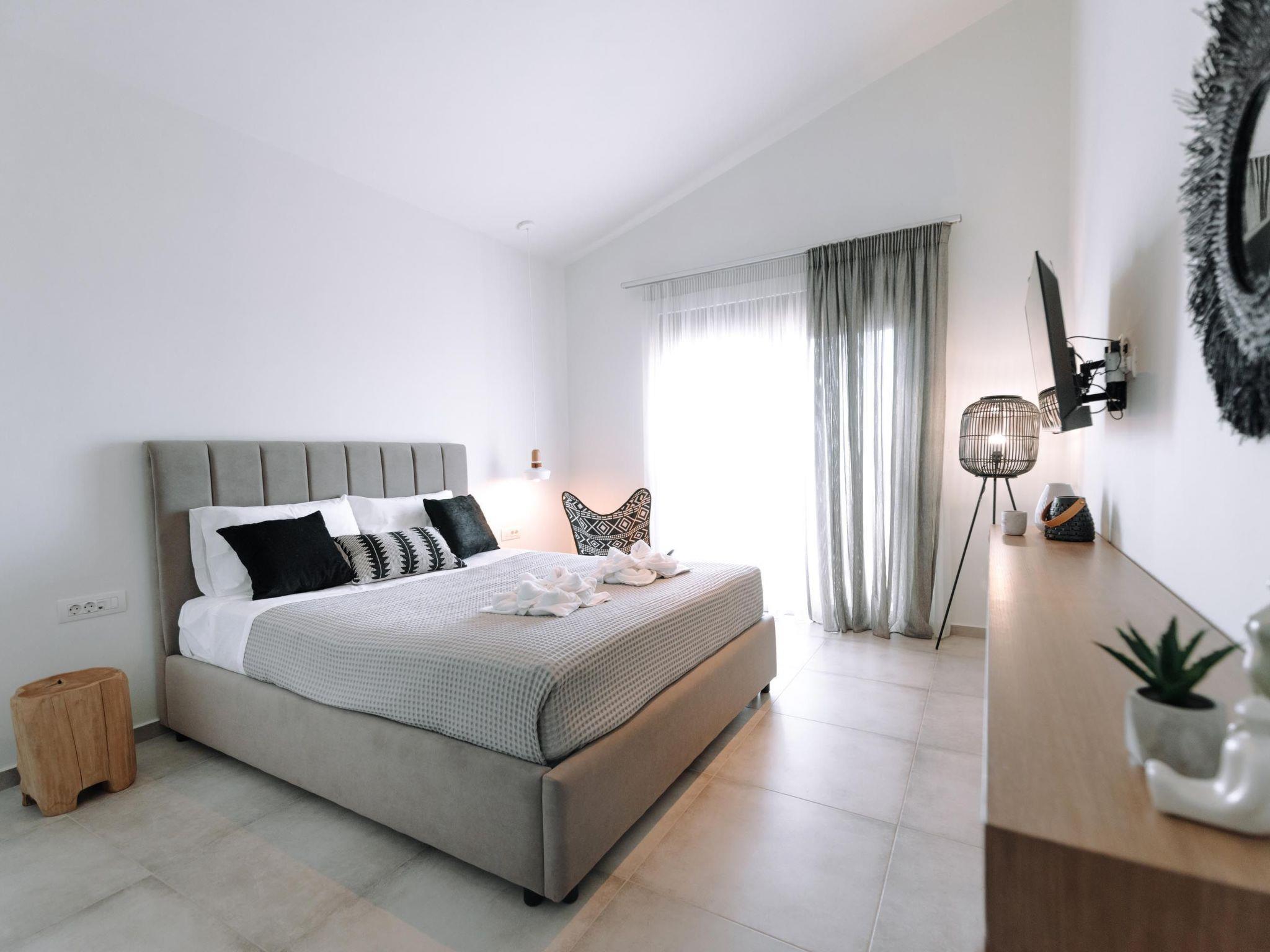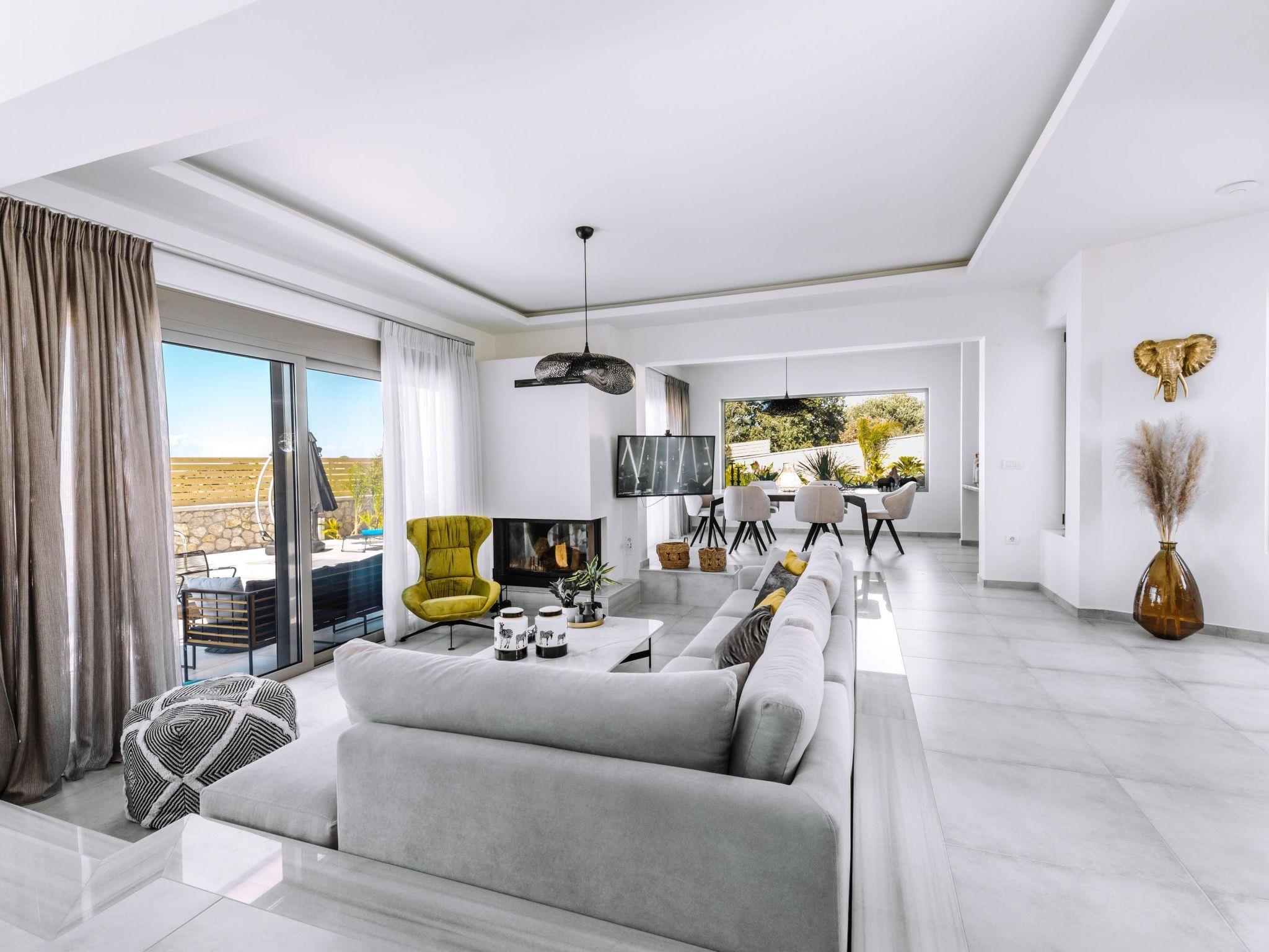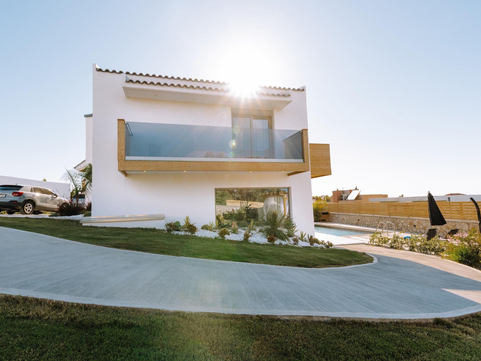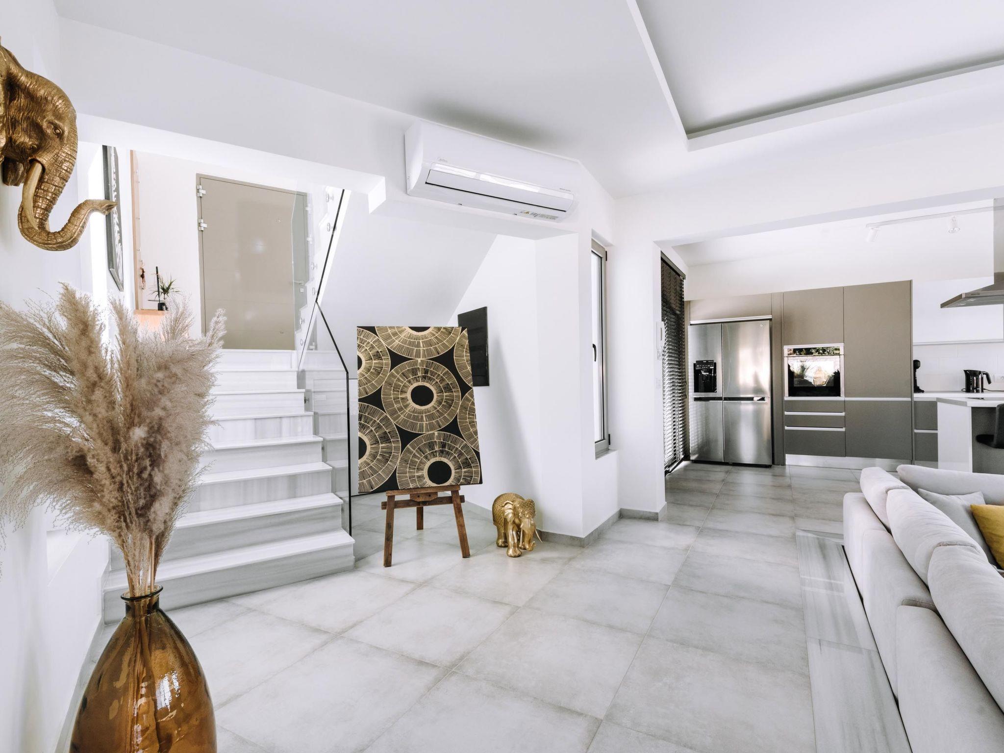 Brillante Villa is set on a peaceful side of Ialysos and offers a dreamy private swimming pool. Its great advantages are the great location, you’ll find it only a 5-minute drive from the beach as well as its contemporary interior design with its exotic details. This hidden gem property provides you with romantic sea views and an inspiring design. The airport of Rhodes is found at a driving distance of only 12 minutes. It conveniently accommodates up to 7 guests and offers everything you might need during your holidays in Rhodes!This amazing villa has 3 fully air-conditioned bedrooms, all of them with double beds and smart TVs. Two of the bedrooms have balconies. There’s a single sofa bed in the living room. One of the bedrooms includes an ensuite luxurious bathroom with a shower and a balcony with a view of Ialysos. There are 3 bathrooms in total, with showers. All areas of the villa are fully airconditioned. Also, there’s an open plan huge kitchen which is fully equipped and suitable for any meal preparation. In the same area, you will find the sitting areas of the kitchen along with an incredibly cozy living room in soothing tones of grey and exotic colors. There’s a smart TV and free Wi-Fi access throughout the property. Outdoors, there’s the dreamy private swimming pool with its sunbeds where you can relax and work on your tan under the rays of the Aegean Sun. Of course, the beach is right about a 5-minute drive from the house so you can easily spend your time there. Also, there’s a BBQ installation along with a sitting area to enjoy a gathering with your friends or family under the starry sky!