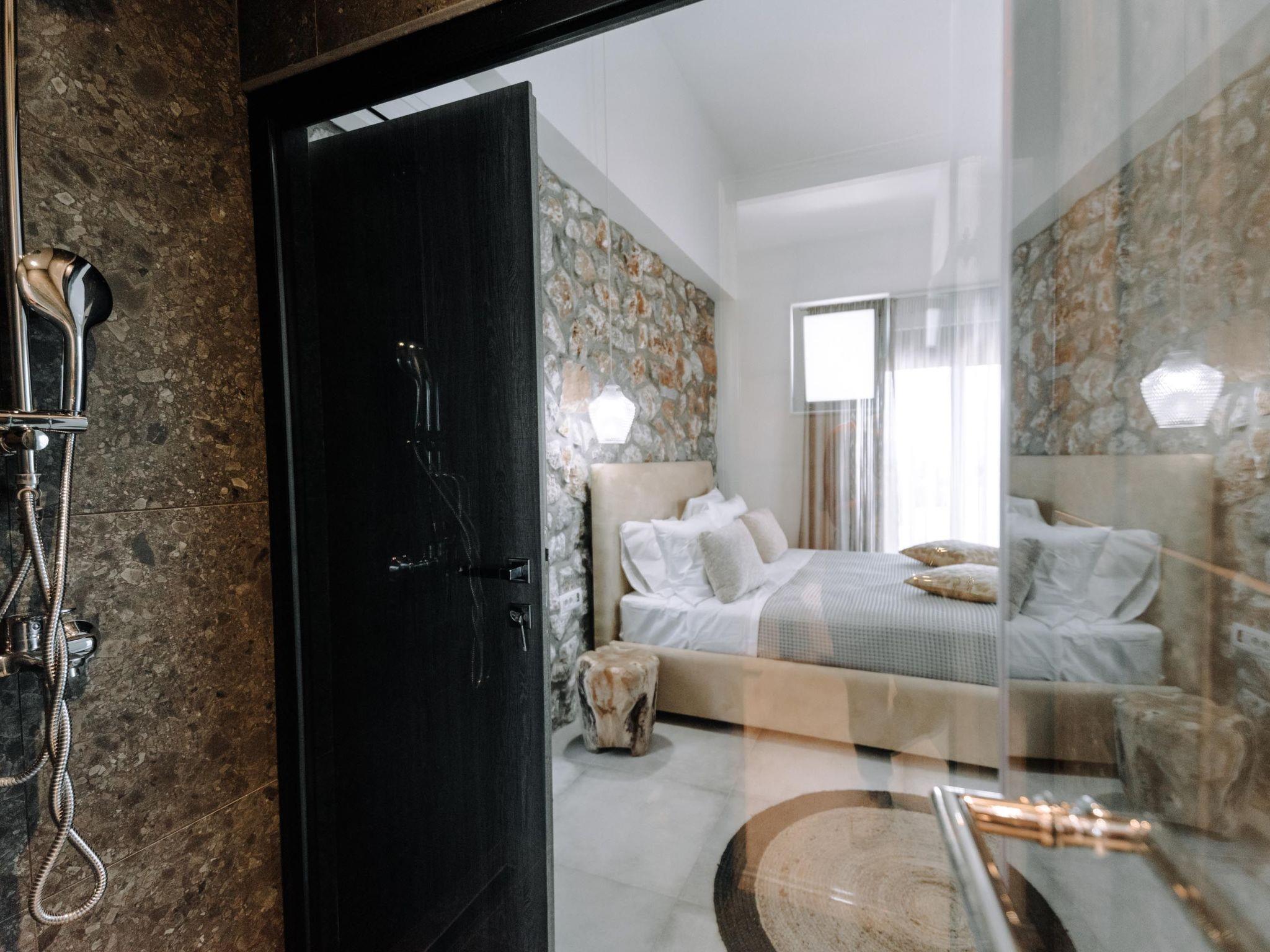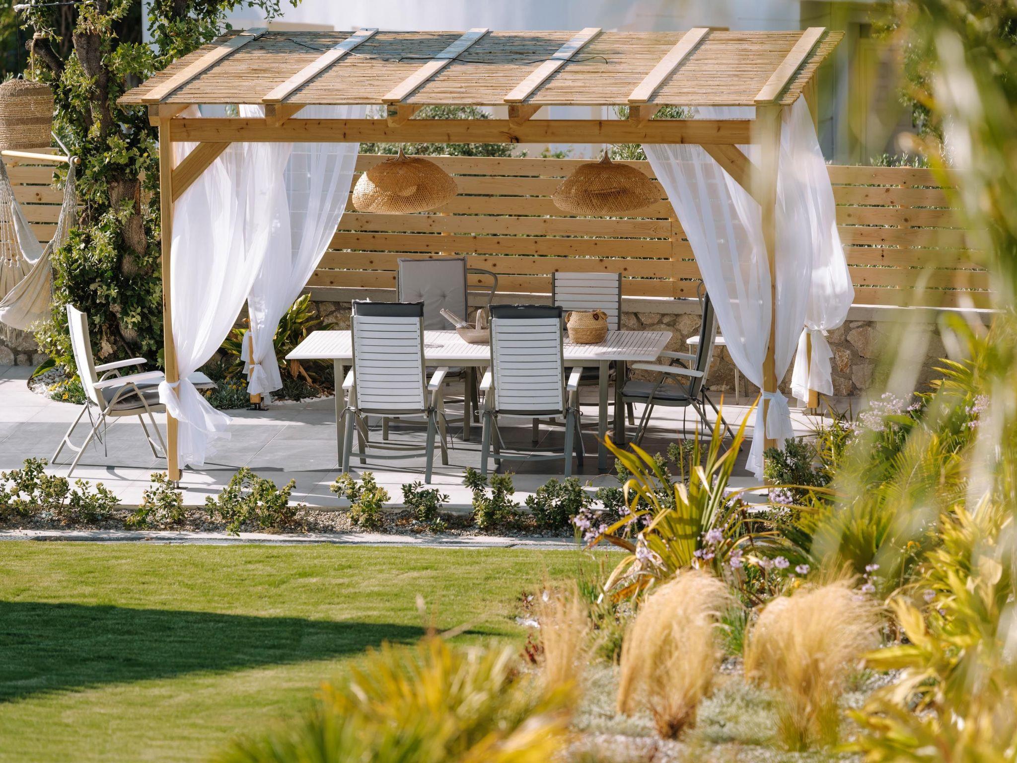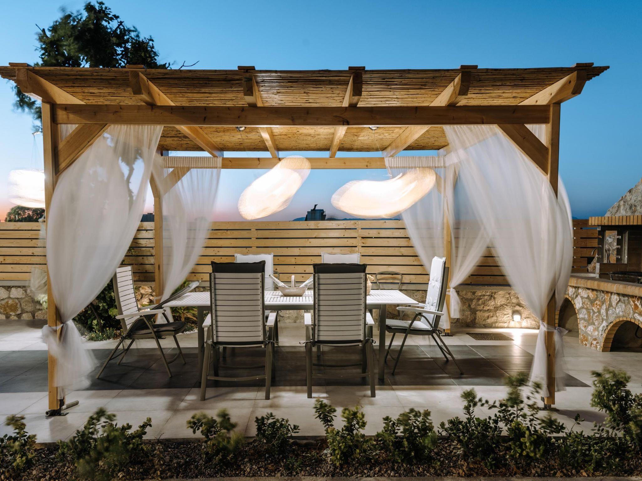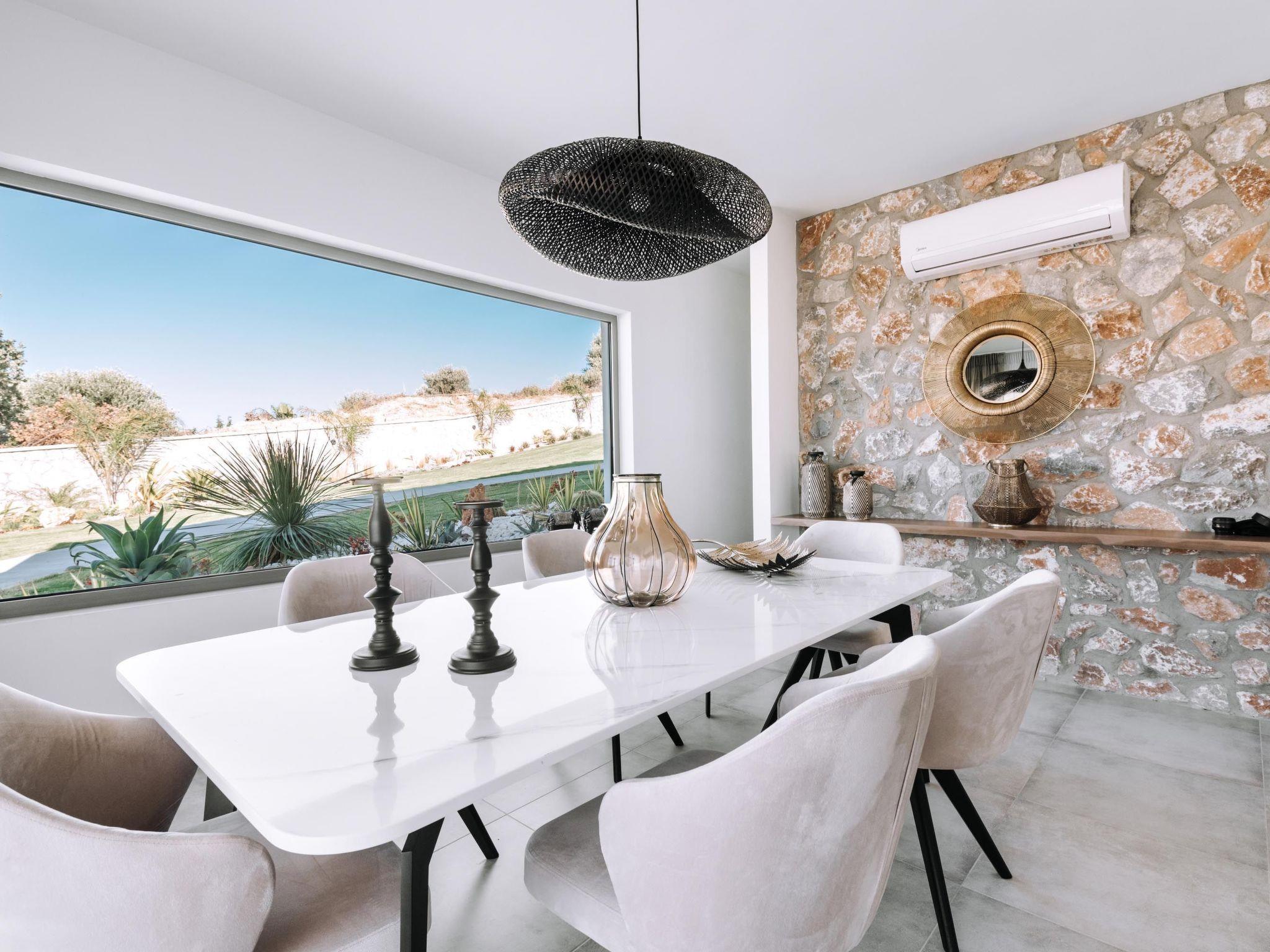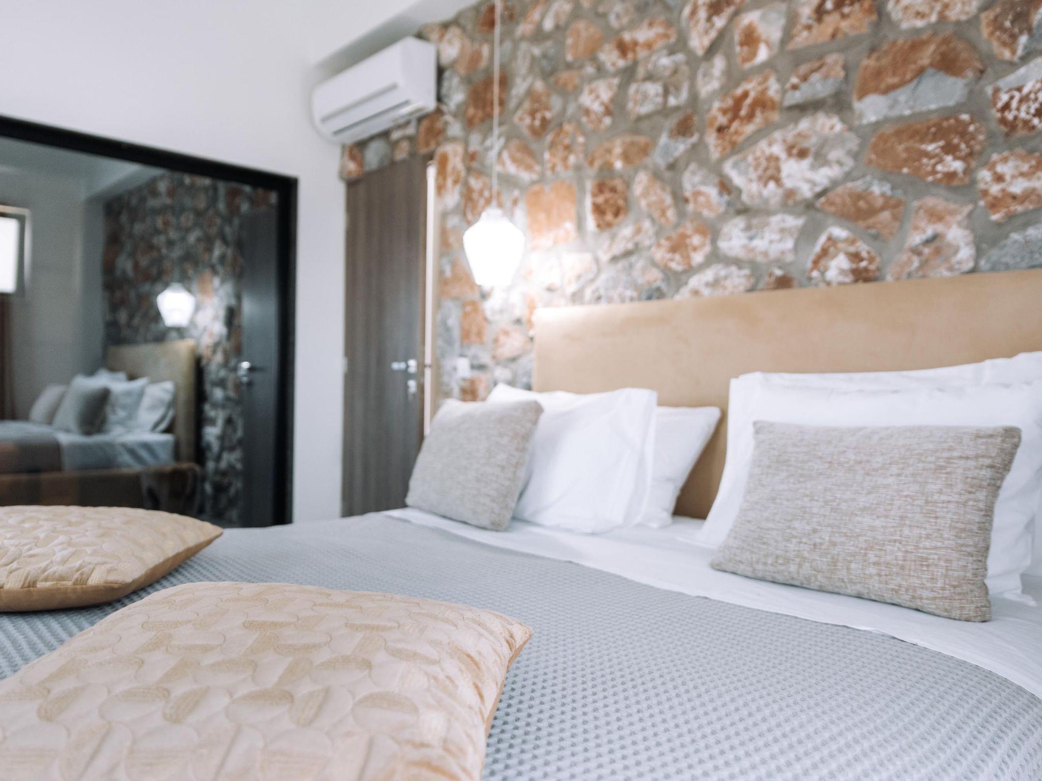 Brillante Villa is set on a peaceful side of Ialysos and offers a dreamy private swimming pool. Its great advantages are the great location, you’ll find it only a 5-minute drive from the beach as well as its contemporary interior design with its exotic details. This hidden gem property provides you with romantic sea views and an inspiring design. The airport of Rhodes is found at a driving distance of only 12 minutes. It conveniently accommodates up to 7 guests and offers everything you might need during your holidays in Rhodes!This amazing villa has 3 fully air-conditioned bedrooms, all of them with double beds and smart TVs. Two of the bedrooms have balconies. There’s a single sofa bed in the living room. One of the bedrooms includes an ensuite luxurious bathroom with a shower and a balcony with a view of Ialysos. There are 3 bathrooms in total, with showers. All areas of the villa are fully airconditioned. Also, there’s an open plan huge kitchen which is fully equipped and suitable for any meal preparation. In the same area, you will find the sitting areas of the kitchen along with an incredibly cozy living room in soothing tones of grey and exotic colors. There’s a smart TV and free Wi-Fi access throughout the property. Outdoors, there’s the dreamy private swimming pool with its sunbeds where you can relax and work on your tan under the rays of the Aegean Sun. Of course, the beach is right about a 5-minute drive from the house so you can easily spend your time there. Also, there’s a BBQ installation along with a sitting area to enjoy a gathering with your friends or family under the starry sky!