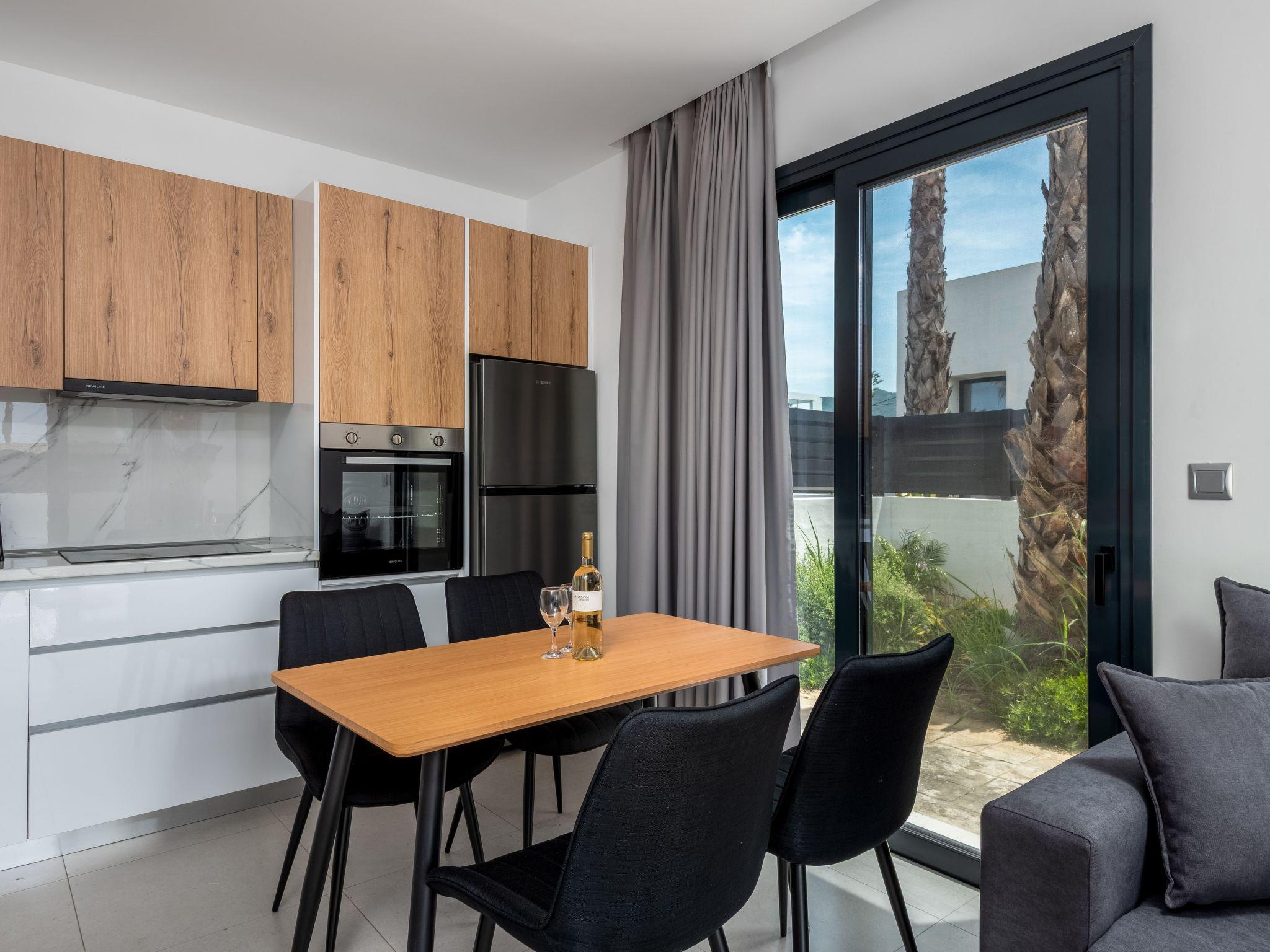 Salty Sun Luxury Villas offers 7 beautiful villas that can accommodate up to 5 guests. The villas features two air-conditioned bedrooms, each with a comfortable double bed and an ensuite bathroom with a shower. Inside, you will find a fully equipped kitchen, perfect for preparing meals, and a cozy living room with a sofa bed and a smart TV for entertainment. Outdoors, the villas provides a wonderful space to enjoy the warm weather. There is an outdoor kitchen with an electric BBQ, ideal for cooking and dining al fresco. The dining area offers a great spot to enjoy meals with family or friends. The highlight of the outdoor space is the private swimming pool, perfect for relaxing and cooling off. Salty Sun Luxury Villas ensures a luxurious and comfortable stay with all the amenities you need for a memorable vacation.