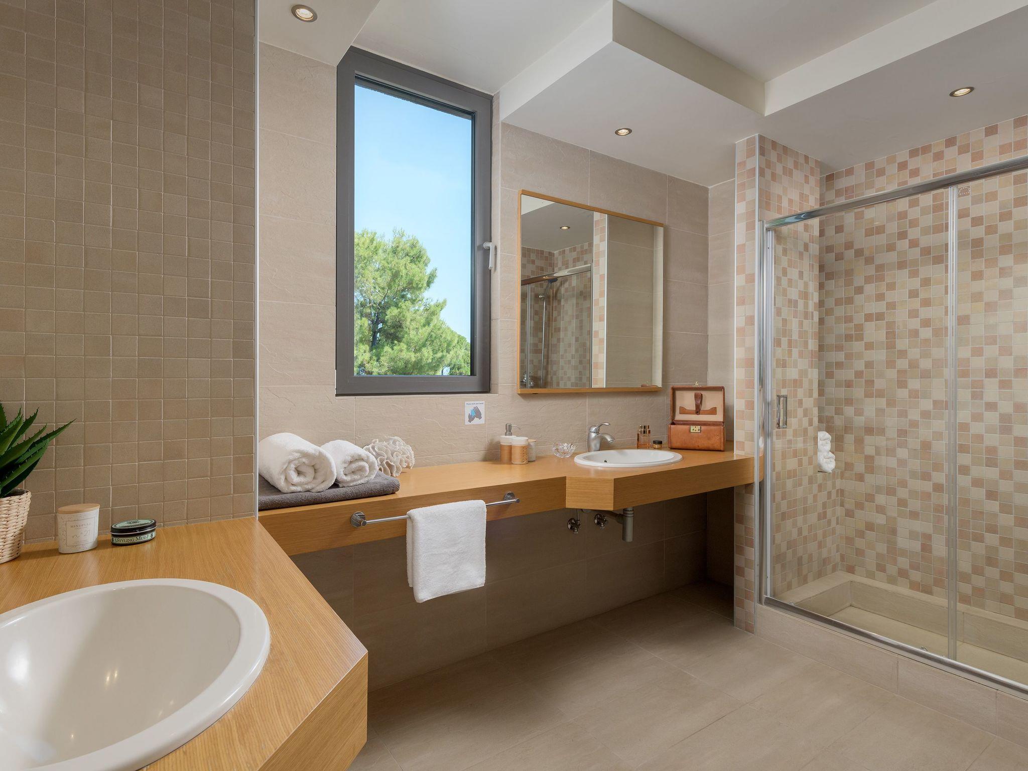 This beautifully crafted villa has 4 fully air-conditioned bedrooms, 3 double bedded rooms and 1 with twin beds. Also, there’s a comfy double sofa bed in the living room. Two of the bedrooms include ensuite bathrooms with showers. There’s, another bathroom with a bathtub as well as a wc, all of great utility and comfort. There’s a fully equipped open plan kitchen, suitable for any meal preparation. Guests will find a friendly sitting area along with the living room that has a screen TV. There’s free Wi-Fi access throughout the property. The decoration is absolutely relaxing and peaceful with the warm colors and the minimal style. The broad balcony makes the ideal spot for enjoying the sea view and the magnificent sunset in the evening hours. Outdoors, there’s the private swimming pool with its sunbeds for your ultimate relaxation under the Aegean sun. Also, there’s a BBQ installation and a sitting area to enjoy a gathering with your loved ones. With its amazing views, this exclusive property offers an optimum position to enjoy the sunlight and the outmost privacy. Ixian Hilltop Villa is a modernly designed home offering to its guests a wide range of indoor and outdoor amenities that give the opportunity for relaxing and enjoyable holidays.