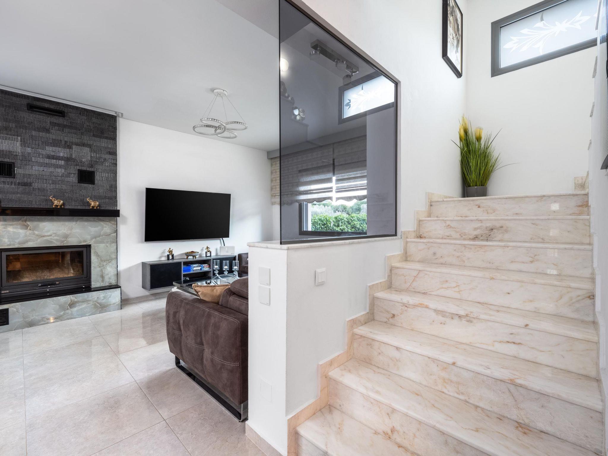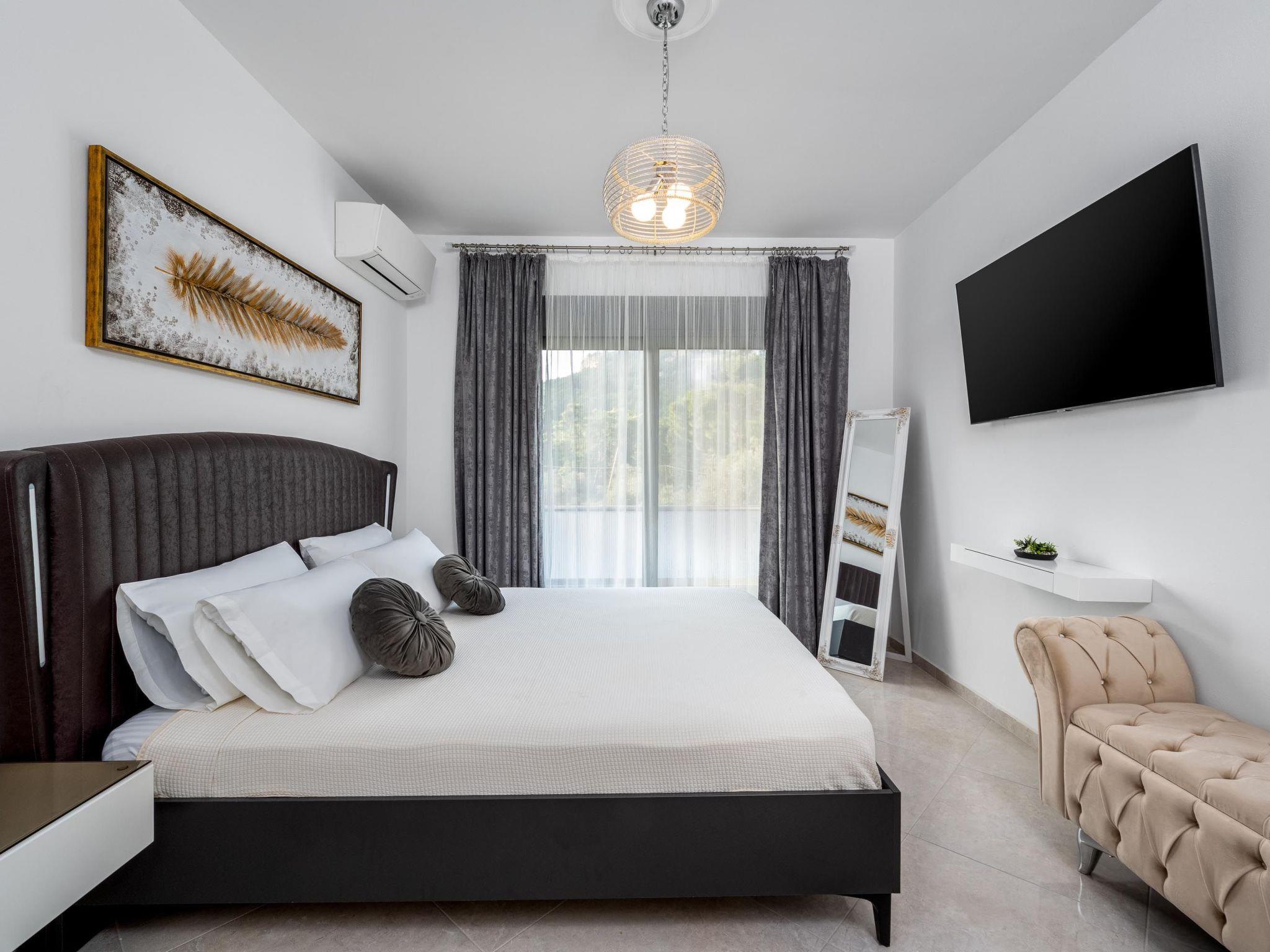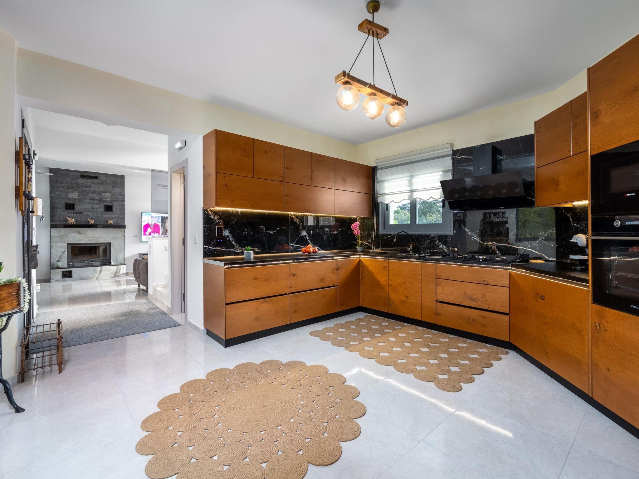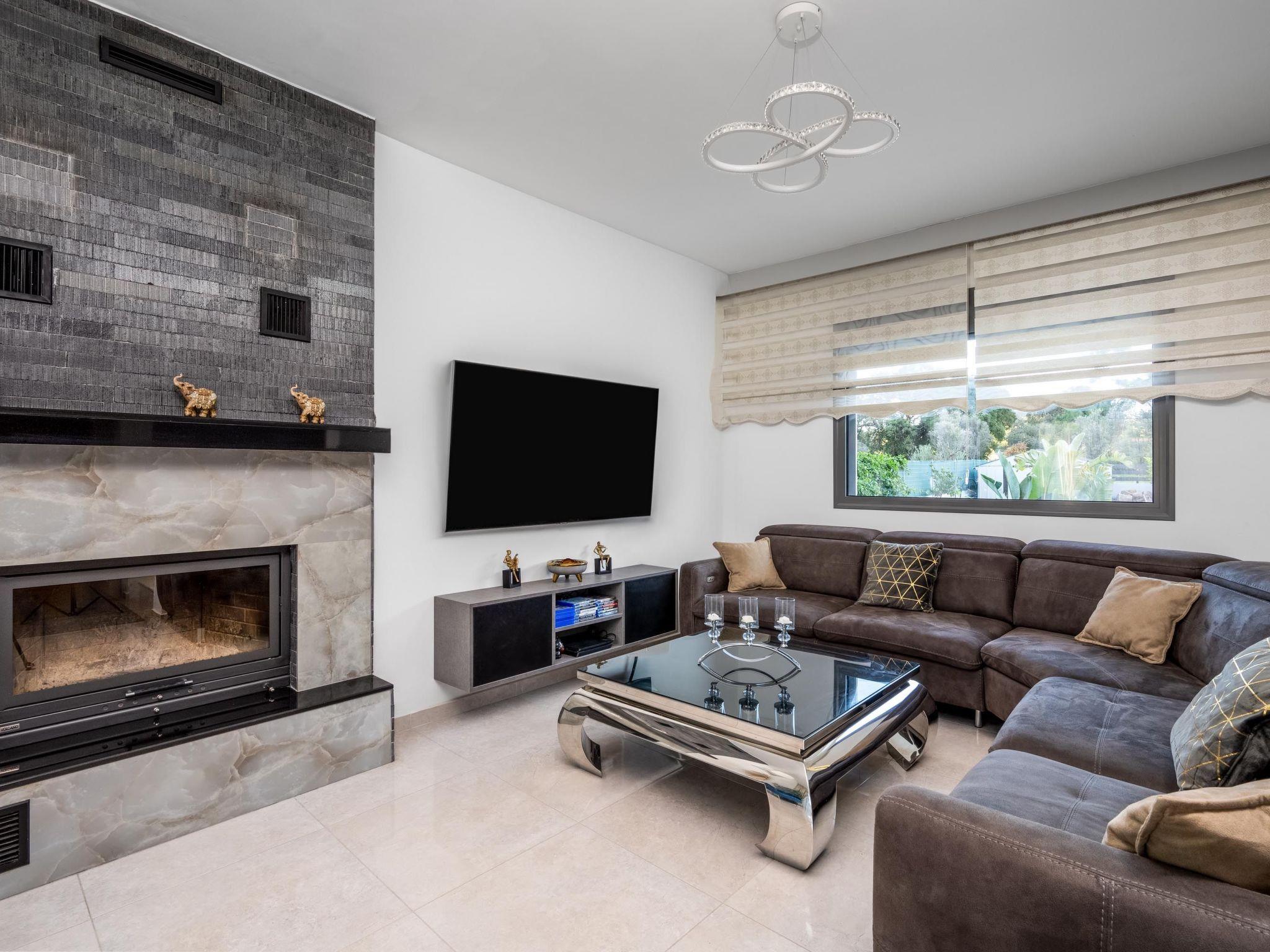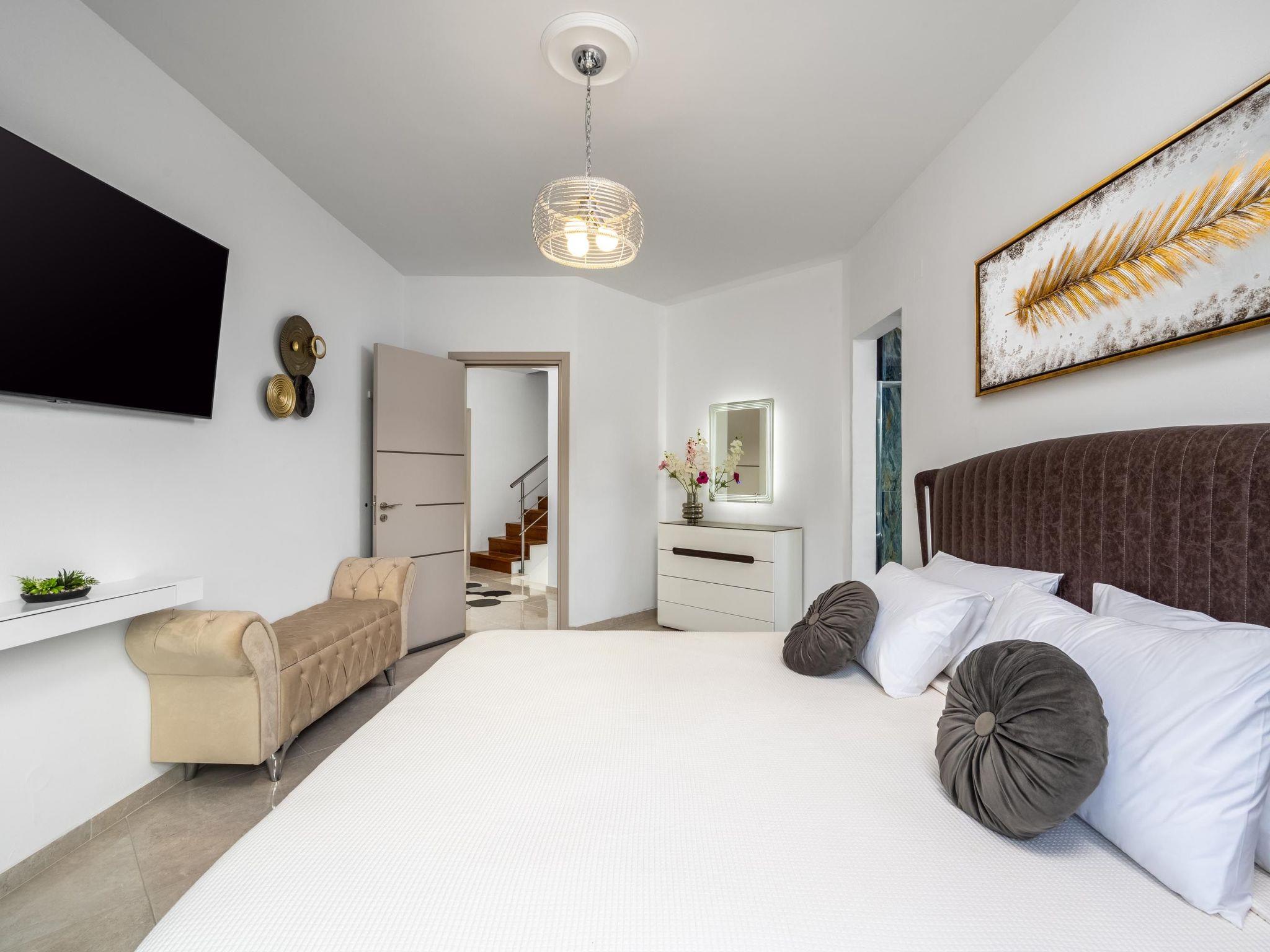 This beautiful villa has 3 modern fully air conditioned bedrooms in a serene design. There are 3 bedrooms with double beds. Also, there’s are 2 stylish full bathrooms, one with a shower and a bathtub and one with shower. In addition there is a wc on the ground floor. The fully equipped kitchen is beautifully decorated and is accompanied by a dining area. There’s a smart TV - PS4 with lots of games that you can play & free WIFI access throughout the property. In the attic you will find fitness equipment such as a treadmill, weights and a cycle bike indoor, where you can exercise during your vacation while gazing at the incredible view from the window.