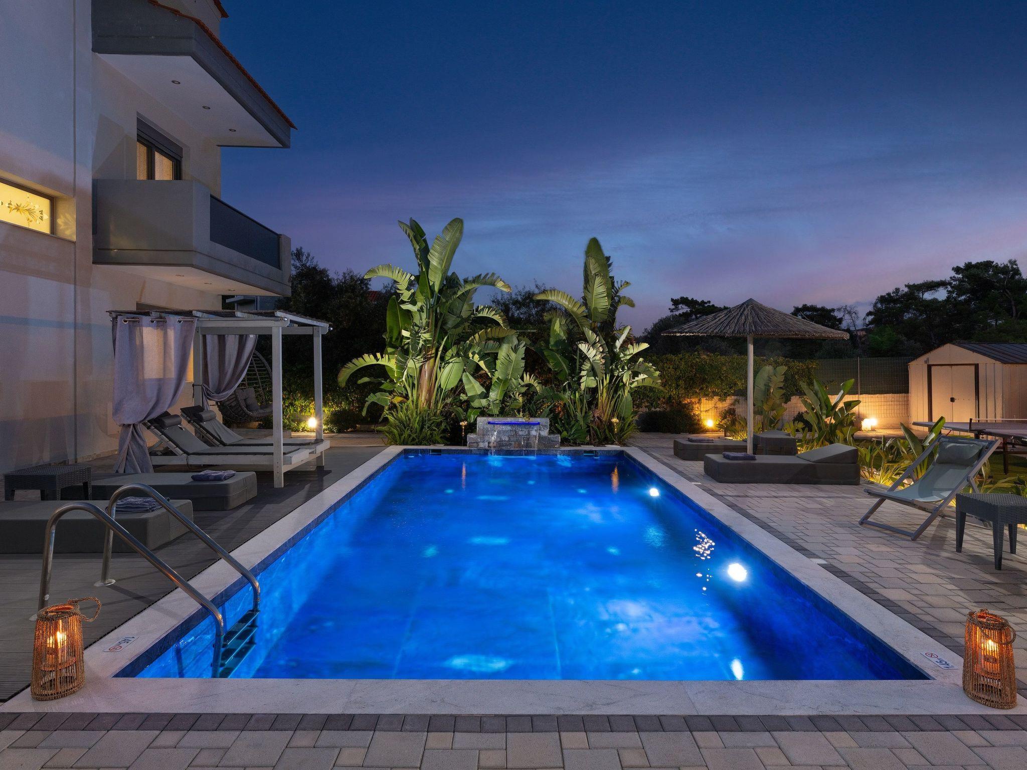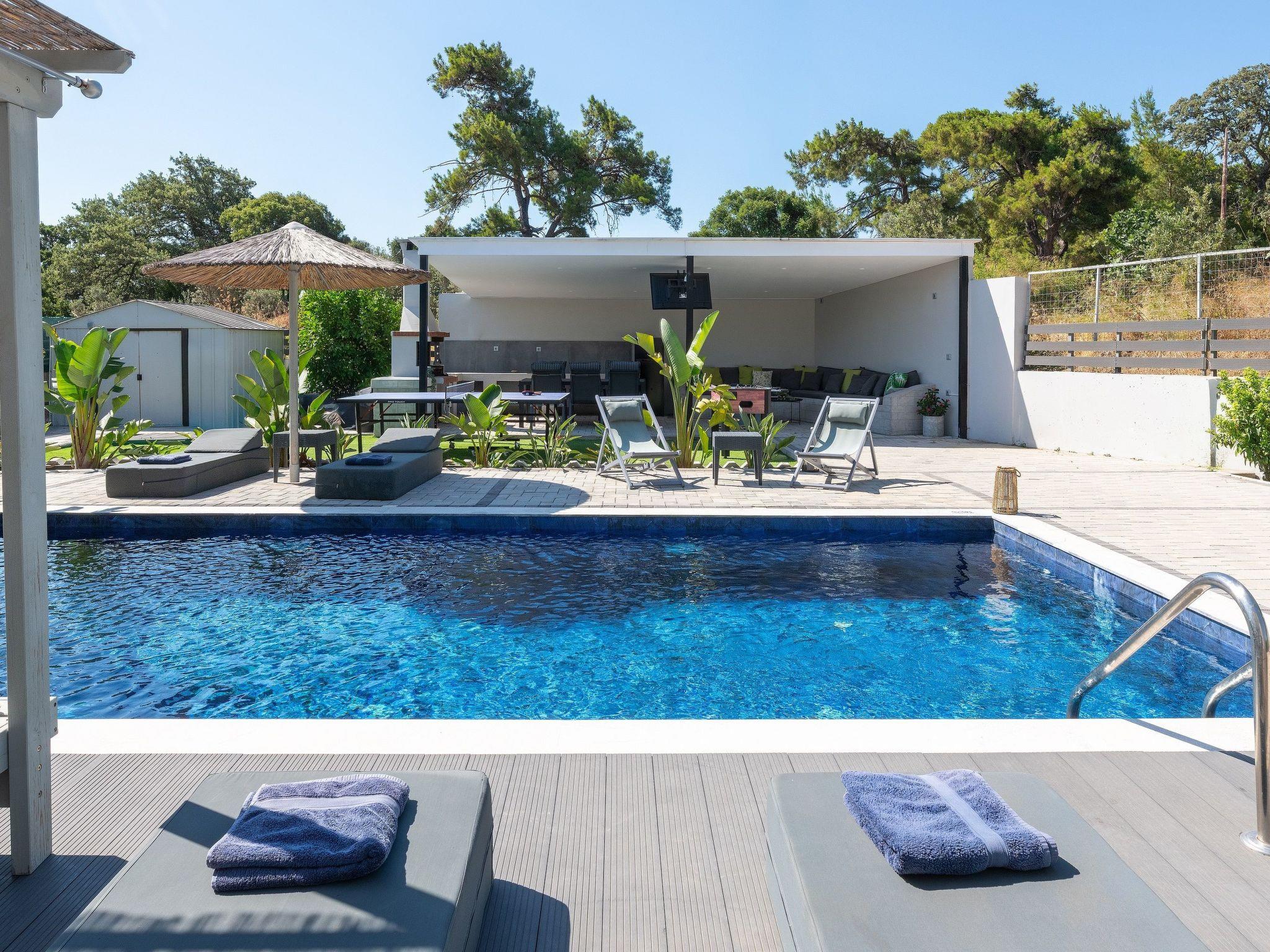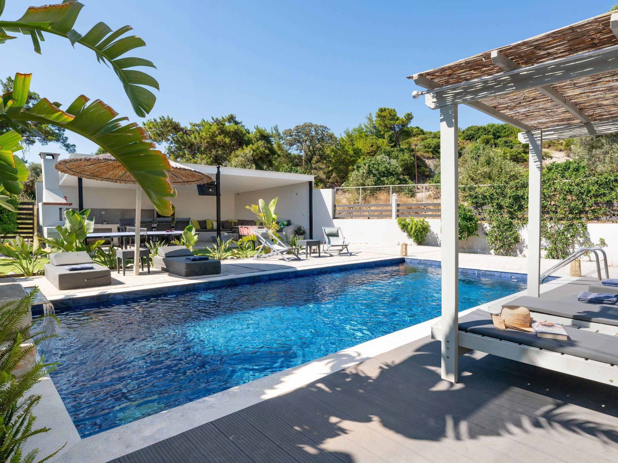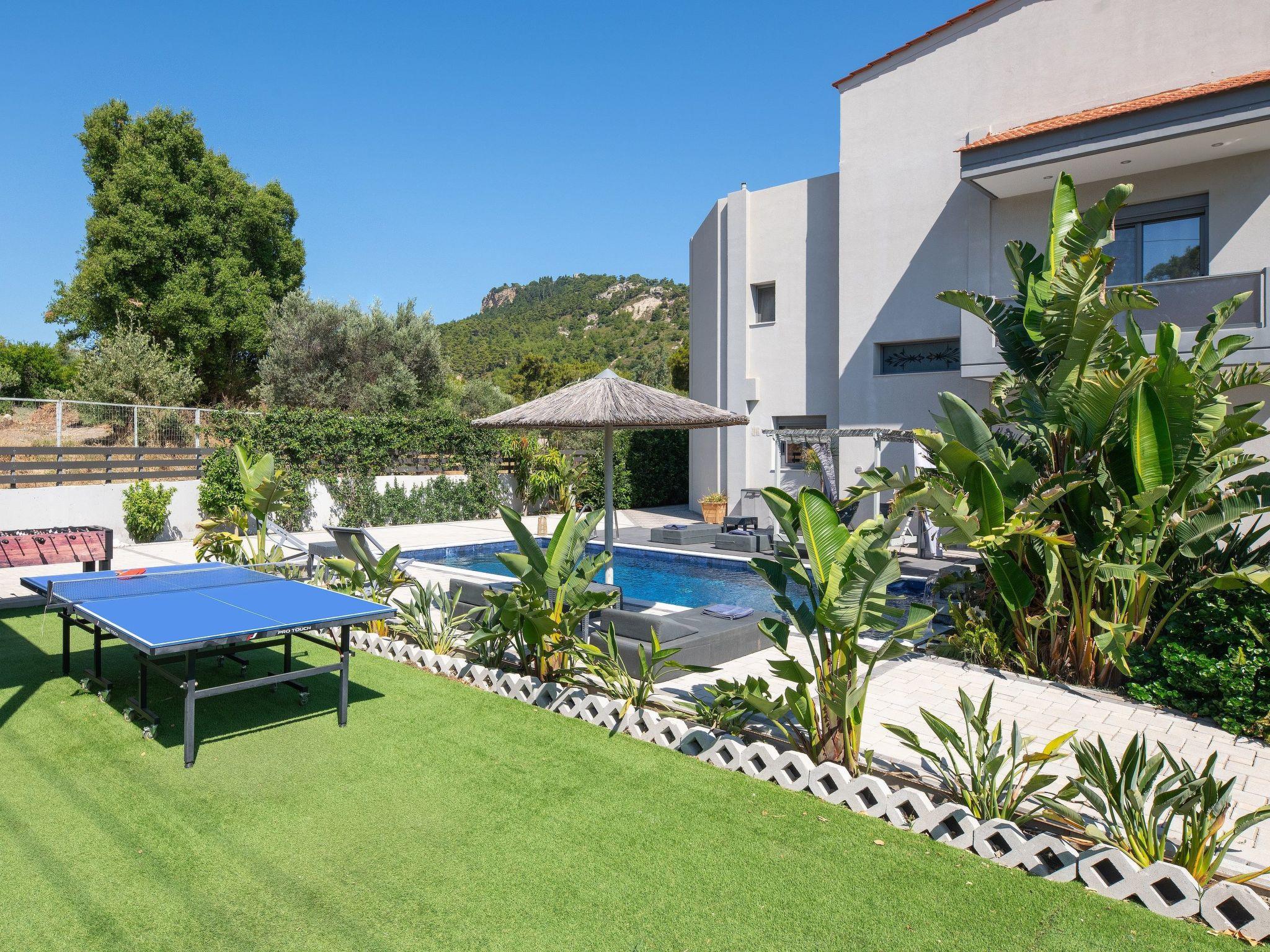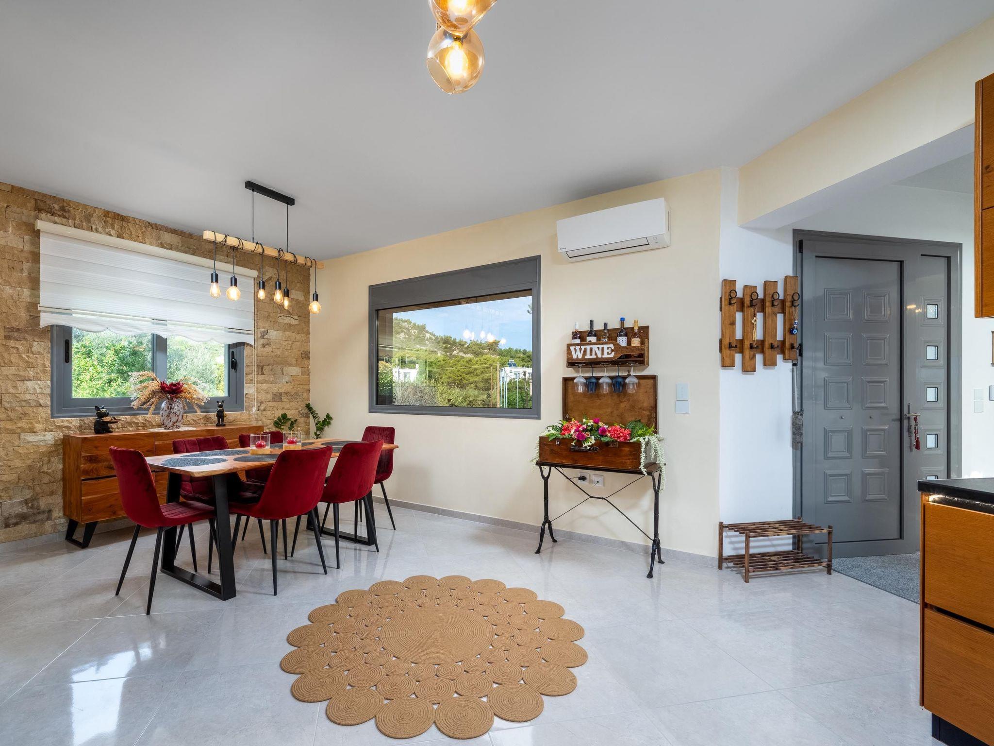 Outdoors, there’s a fantastic private swimming pool with sunbeds where you can relax under the Aegean sun. You can enjoy playing table tennis. The divine location offers a beautiful view of the green forest of Rhodes. This villa has everything you might need to feel comfortable and at home. There’s a BBQ facility where you can prepare all fresh meals and enjoy gathering with your loved ones in the outdoor dining area.