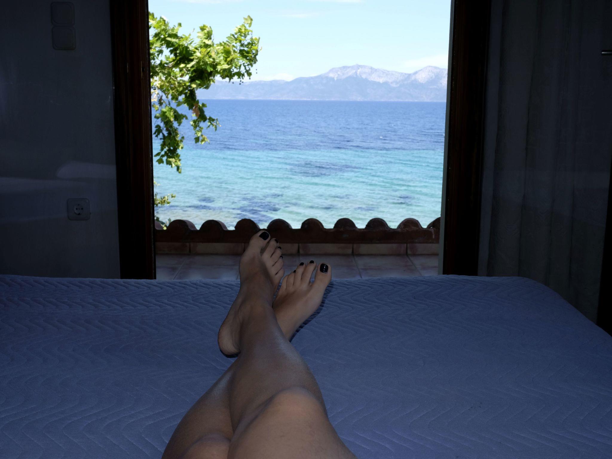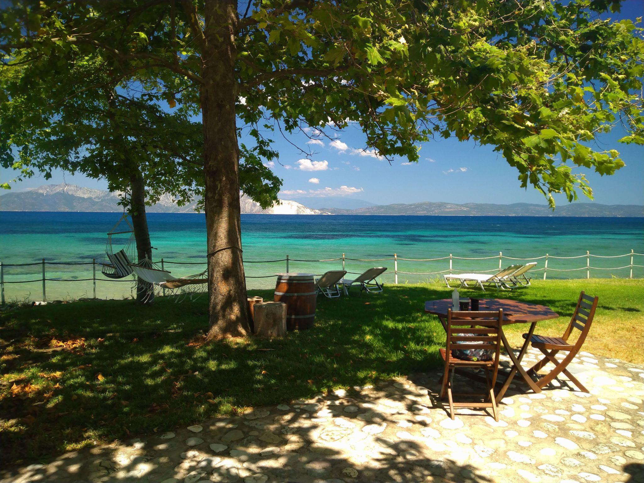 The house is located directly in front of the sea. The organic garden with 40 fruit trees of all kinds.