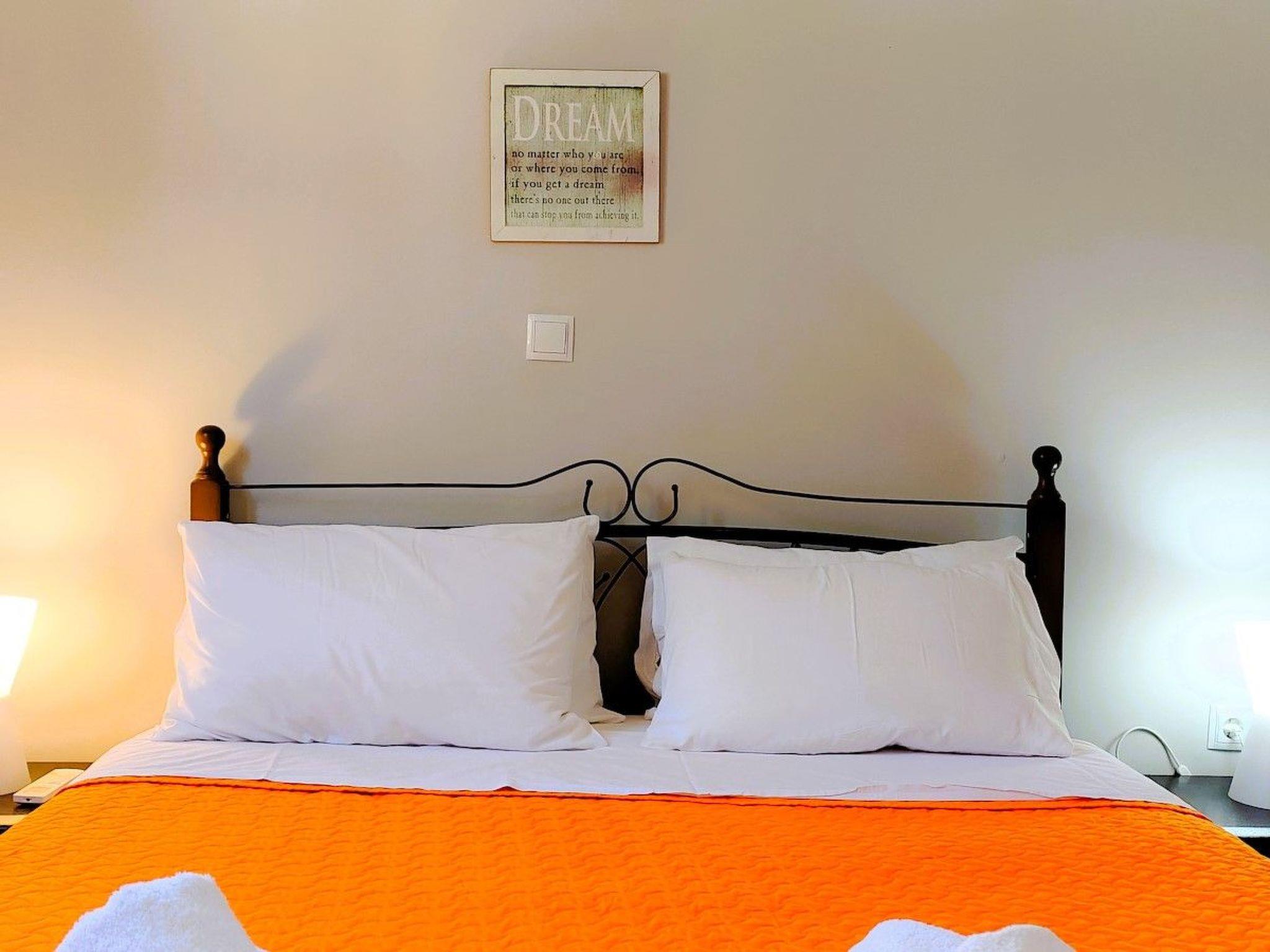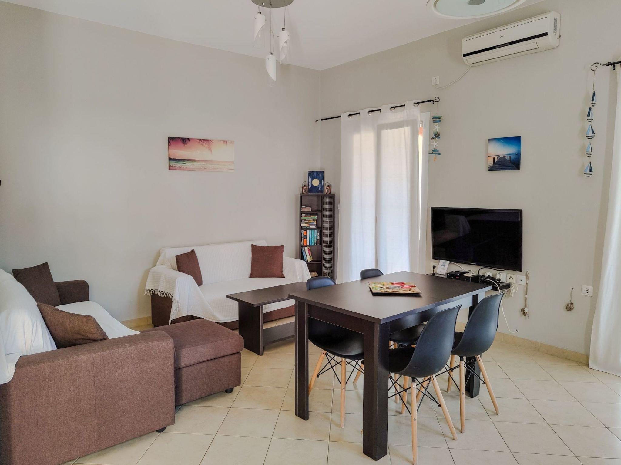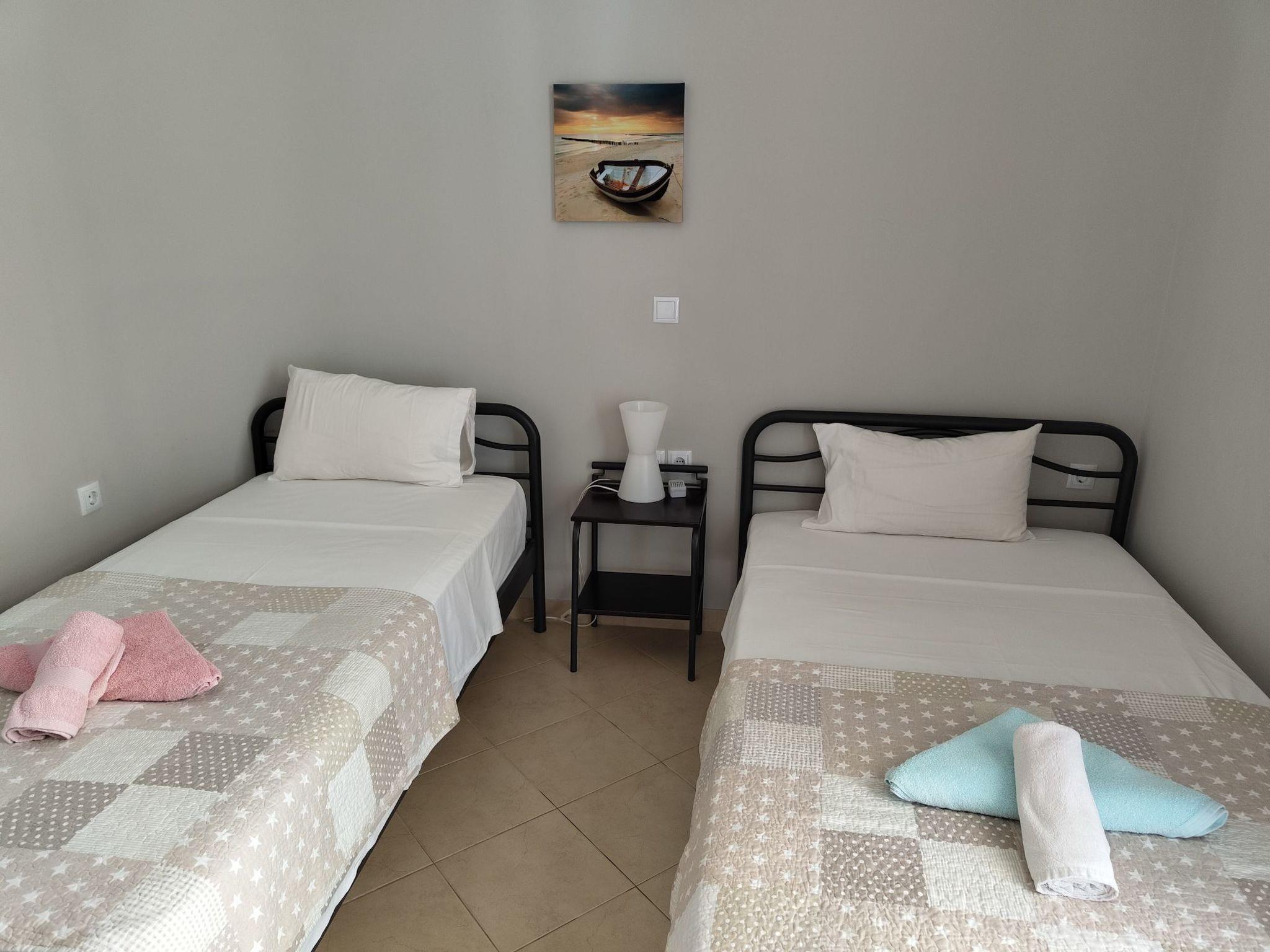 Experience the highest standards in convenience and warmth at Olympia Apartment, an inviting two-bedroom retreat located in the village of Kalami, by Hestia Travel. Indulge in the thoughtfully designed interiors that have been meticulously crafted to create a cosy and practical haven for your stay. Every detail has been carefully considered to ensure a relaxing and memorable escape.The highlight of the Olympia Apartment is undoubtedly the cosy and welcoming living area, where comfort and relaxation come together seamlessly. Here, you can relax, socialise, and make lasting memories with your loved ones, all in a carefully designed leisure environment. Unleash your culinary skills in the fully equipped kitchen, including a central hub designed to meet all your cooking needs. Here, you can relish the experience of preparing delectable local dishes in a practical and enjoyable setting.