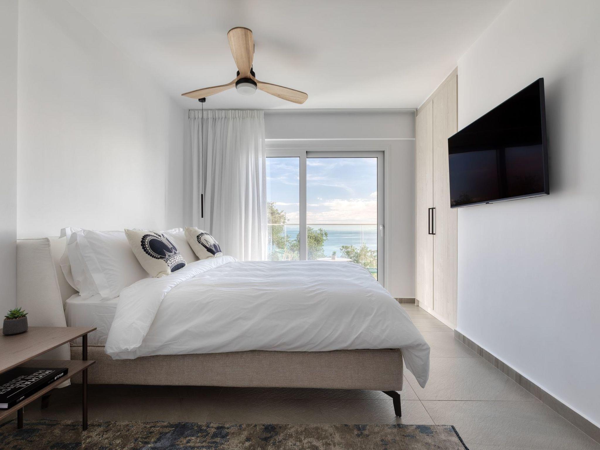 Seaya apartment can accommodate up to 4 guests comfortably, featuring an open-plan kitchen and dining area equipped with everything you need and it is beautifully decorated. The living room opens up to a balcony with a stunning, unobstructed sea view. The apartment also comprises two spacious double bedrooms and two convenient bathrooms with showers. A short footpath from the building leads to a private beach, and the shared terrace with its incredible view is the perfect place for peaceful moments. Book your stay at Stoa Apartments for a comfortable and exhilarating vacation experience. Bedrooms?edroom 1: Double Bed En suit Bathroom?edroom 2: Double Bed