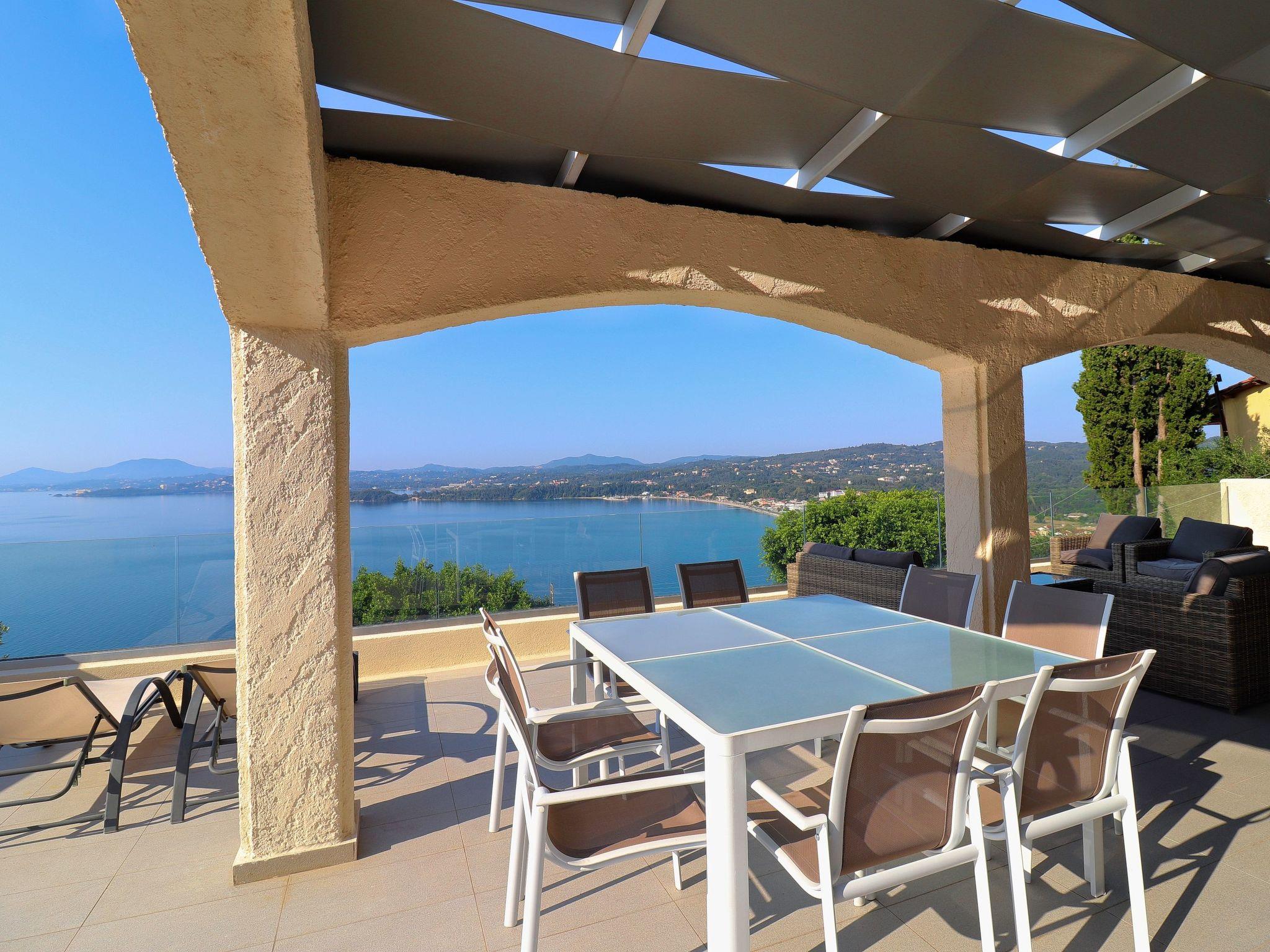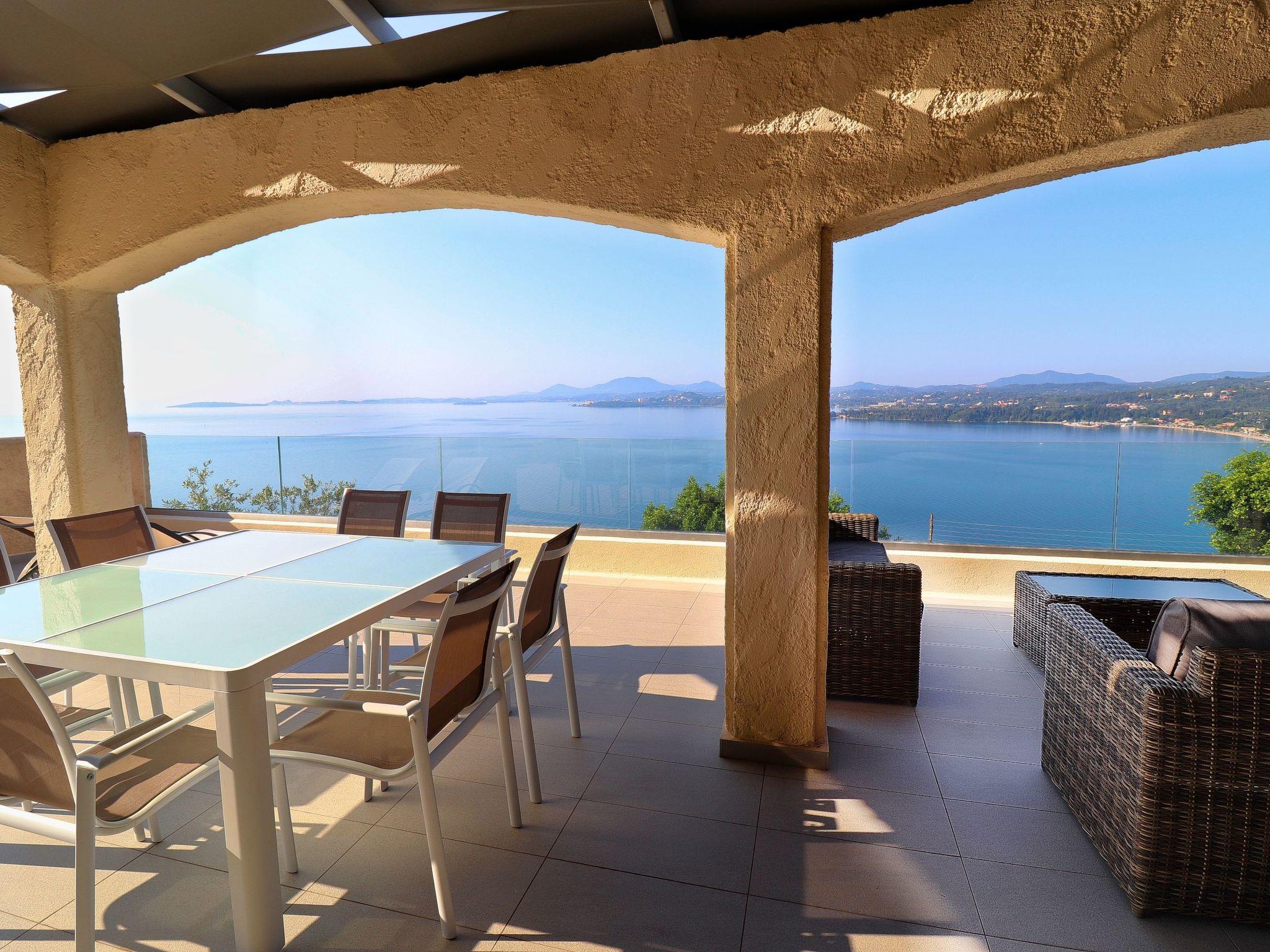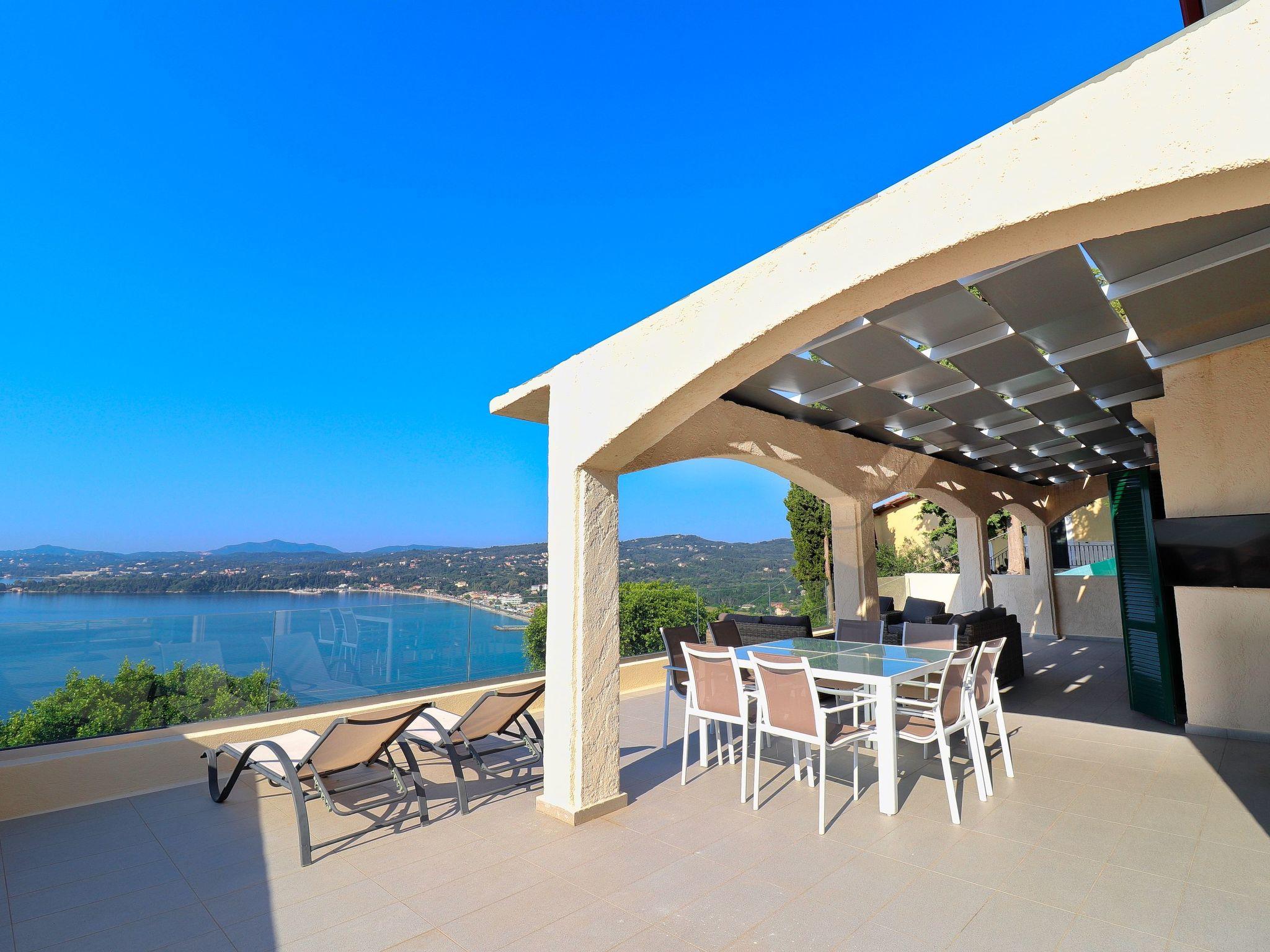 Villa Faiax in a peaceful location with uninterrupted sea views over the bay of Ipsos, two minutes’ walk to restaurant, cafe & bar (Grand Balcon & Off Town) and a 15 mins walk down to the Beach & Water Front Restaurants of Ipsos beach.Suitable for up to 10 people, ideal for large families and groups of visitors. Three storey building that consists of 4 bedrooms, all with ensuite bathrooms, large pool with panoramic sea view, fully equipped kitchen, smart TV, WIFI, AC.What’s included : - Sheets and towels- Central heating/cooling - WiFi - Quality toiletries and bathrobes - Maid service 2 x weekly and linen and towel change 2 x weekly- Garden-pool care 2 x weeklyFacilities; - Swimming pool with breathtaking vies of Ipsos Bay - Dishwasher - Washing machine - Microwave - Nespresso coffee machine- Ceramic hob- Oven- Kettle- Toaster- Safe - Hairdryers - Sat TV in each bedroom - Flat Sat TV 50” (living room) - Heating/cooling central system- WiFi - BBQ (charcoal) - Covered dining area outside.- Outdoor showersExtras upon request: - Transfers from/to Corfu airport- Car rental offers - Chef prepared meals or traditional Greek cuisine dishes- Massage - Babysitter- Bareboat rental or skippered- Horse riding