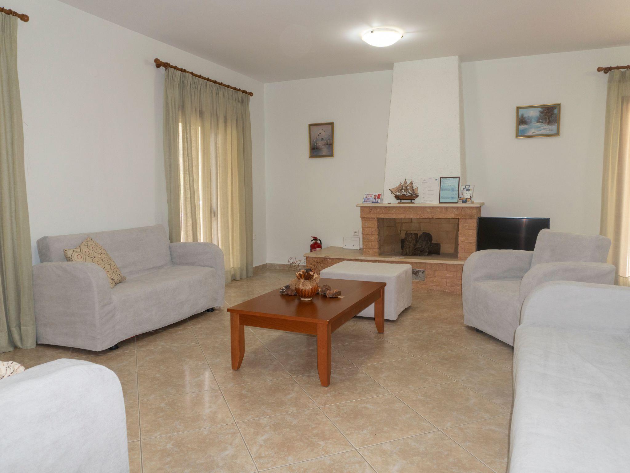 Inside, guests are greeted with a spacious and well-appointed interior, capable of comfortably hosting up to 6 persons. The villa features three cozy bedrooms and two convenient bathrooms, each equipped with a shower, ensuring privacy and ease for all guests. The living area is expansive, offering a place to unwind and socialize. Essential modern conveniences are at your fingertips, including a dishwasher, an espresso coffee pot, filter coffee machine, capsules/pods coffee machine, electric kettle, mini oven, and a clothes washing machine. Whether you seek to create culinary delights or simply relax by the fireplace, our villa is designed to cater to your every need.
