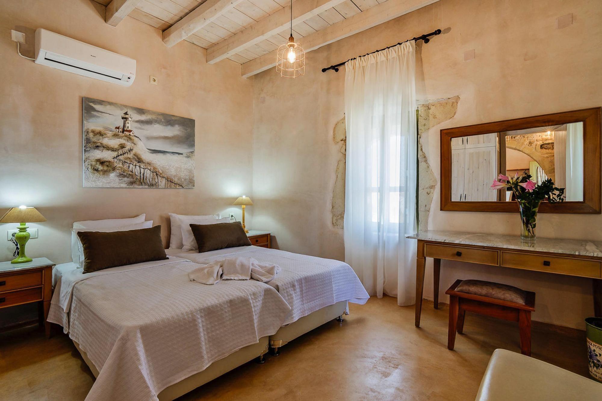 Oplev dette hyggelige feriehus i Kastellos - et charmerende, selvstændigt tilflugtssted, der blander traditionel kretensisk landstil med moderne komfort. Dette feriehus er ideelt til par, venner eller små familier og tilbyder fredelige omgivelser med havudsigt, privat pool og udendørs opholdsrum, perfekt til at nyde Grækenlands solrige klima og afslappede livsstil. Feriehuset har aircondition, hvilket sikrer et behageligt ophold. Indenfor finder du en indbydende opholdsstue med plads til afslapning og et tv, et veludstyret tekøkken til at tilberede måltider i dit eget tempo, to moderne badeværelser og en rummelig soveplads med 3 soveværelser. Gennemtænkte faciliteter som gratis Wi-Fi, parkering og vaskeri skaber et praktisk opholdsmiljø til korte pauser eller længere ferier. Du får din egen private pool og terrasse - et iøjnefaldende træk, hvor du kan tage forfriskende dukkerter, solbade på varme eftermiddage eller nyde udendørs spisning med havudsigt. Udendørsområdet suppleres af haveområder og siddepladser, hvilket giver dig et roligt sted at slappe af med familie eller venner under middelhavssolen. Dette feriehus ligger i kystområdet Kastellos og tilbyder nem adgang til sandstrande, nærliggende tavernaer ved havet, caféer og lokale butikker. Uanset om du slentrer til kysten, udforsker traditionelle landsbyer eller prøver kretensisk køkken, gør beliggenheden det græske ø-liv ubesværet og behageligt. Dette feriehus i Kastellos er perfekt til rejsende, der værdsætter privatliv, havudsigt, udendørs plads og komfort. Det er en mindeværdig base for din næste græske ferie med poolside-charme og kystappel.