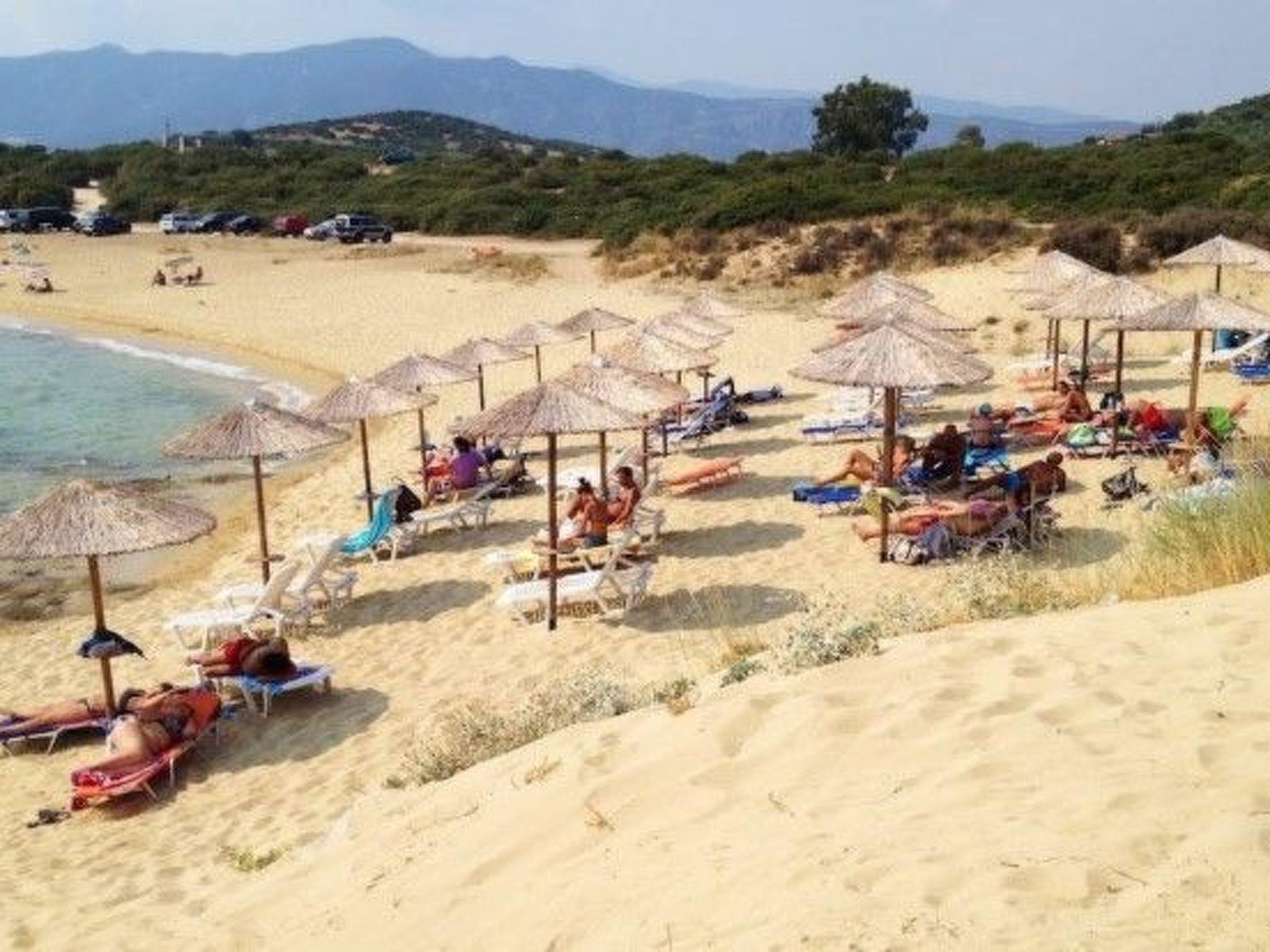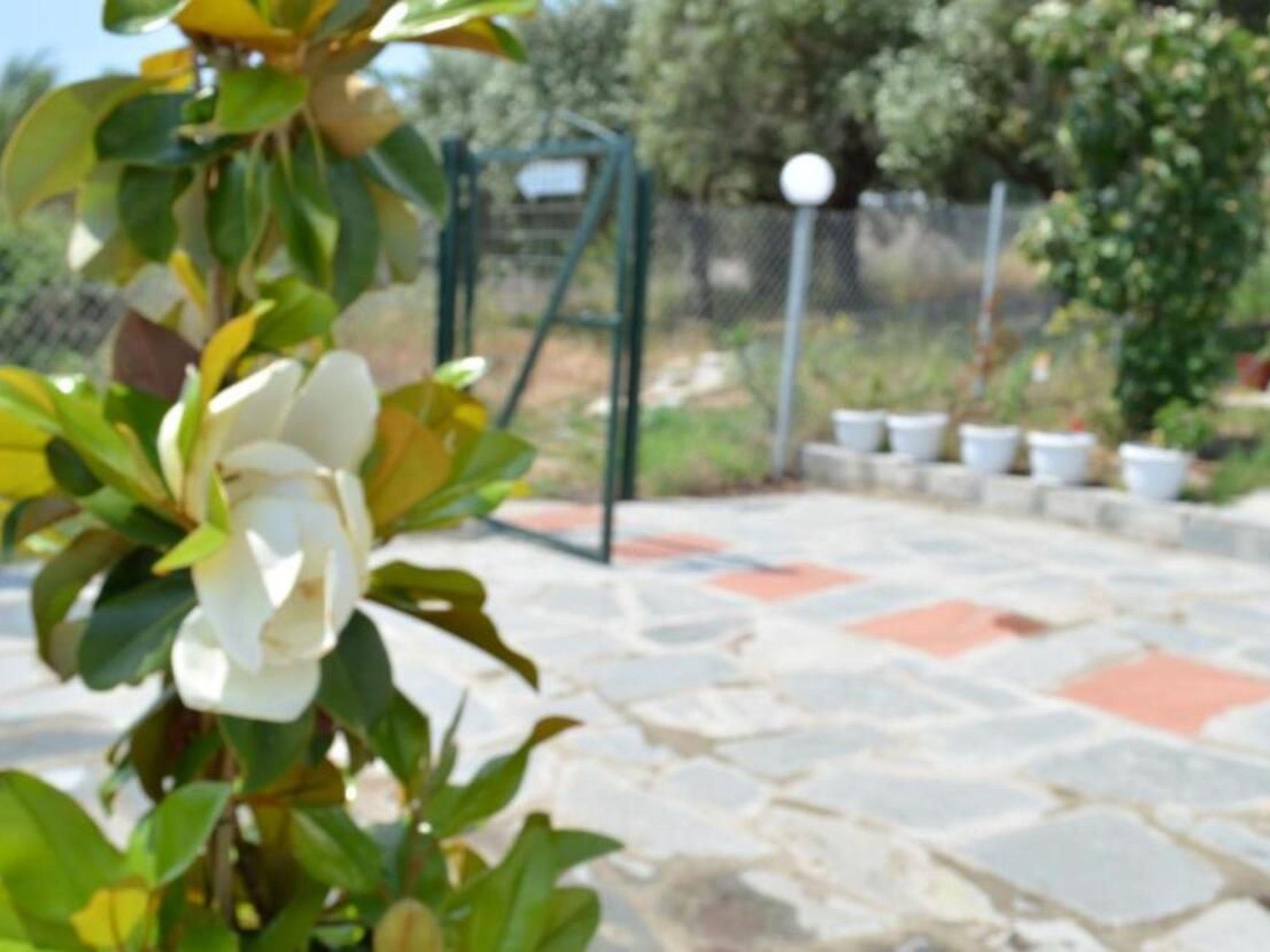 À l'outside, Villa Siesta has'un grand jardin, véritable oasis de tranquillité où la nature luxuriante vous invite à la détente parmi les oliviers, avec la mer Égée en toile de fond. Le jardin est un lieu idéal pour se retrouver en famille ou entre amis et profiter du calme environnant, loin de l'tourist hustle and bustle, just 100 metres from the beach.