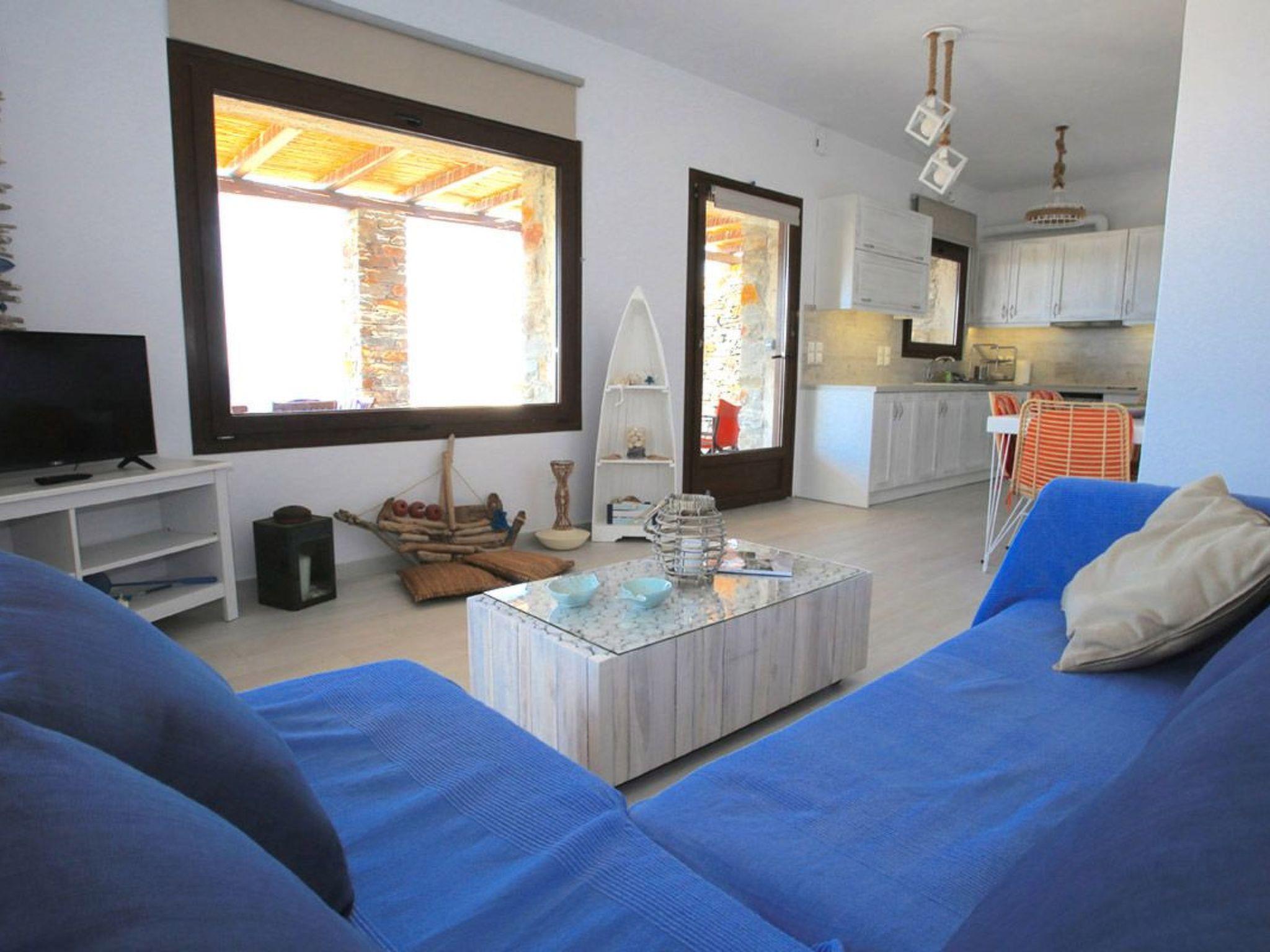 to water sports beach. In Kastellakia Bay on Kea island in the Cyclades, this holiday villa has access to the Kastellakia Beach and amazing sunset views 100 meters from the house. Access to Kea from Athens and its airport is easy, swift (door to door in 2 hours).