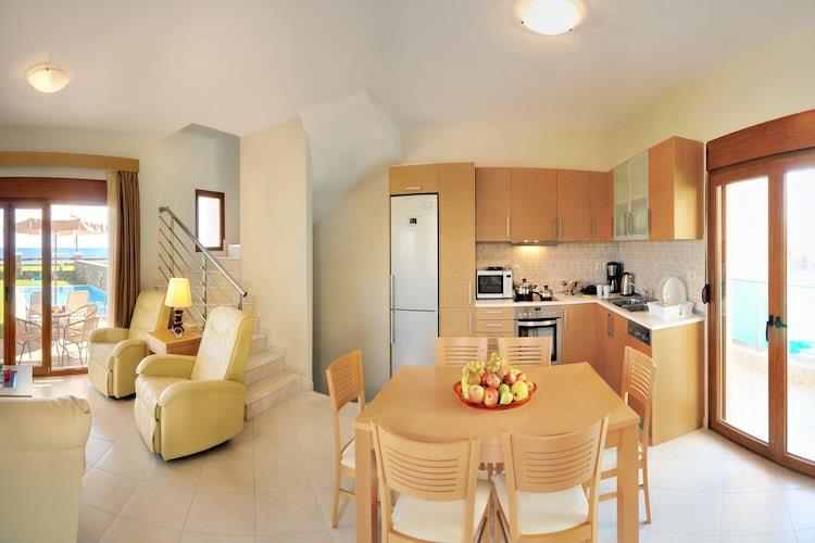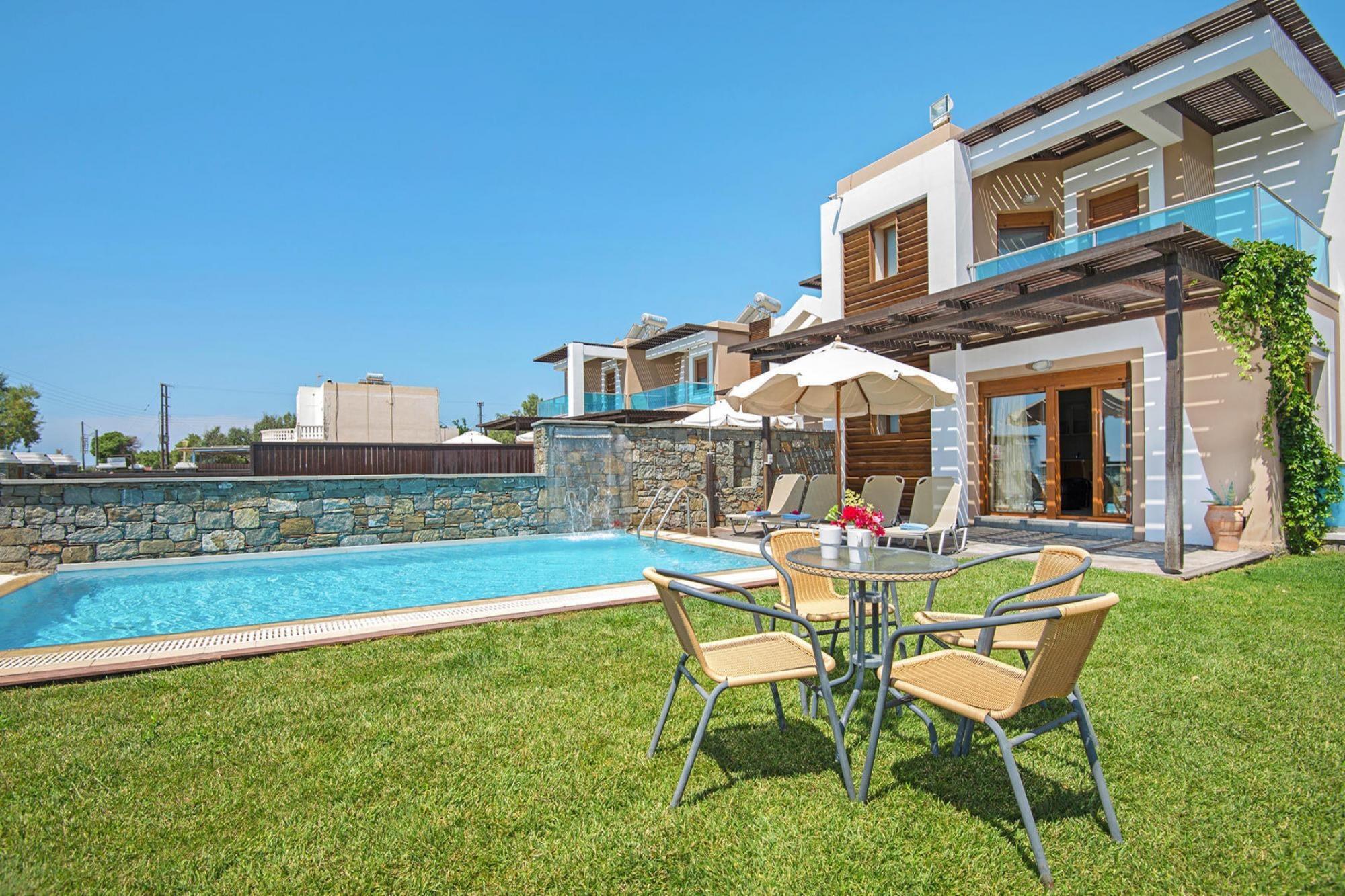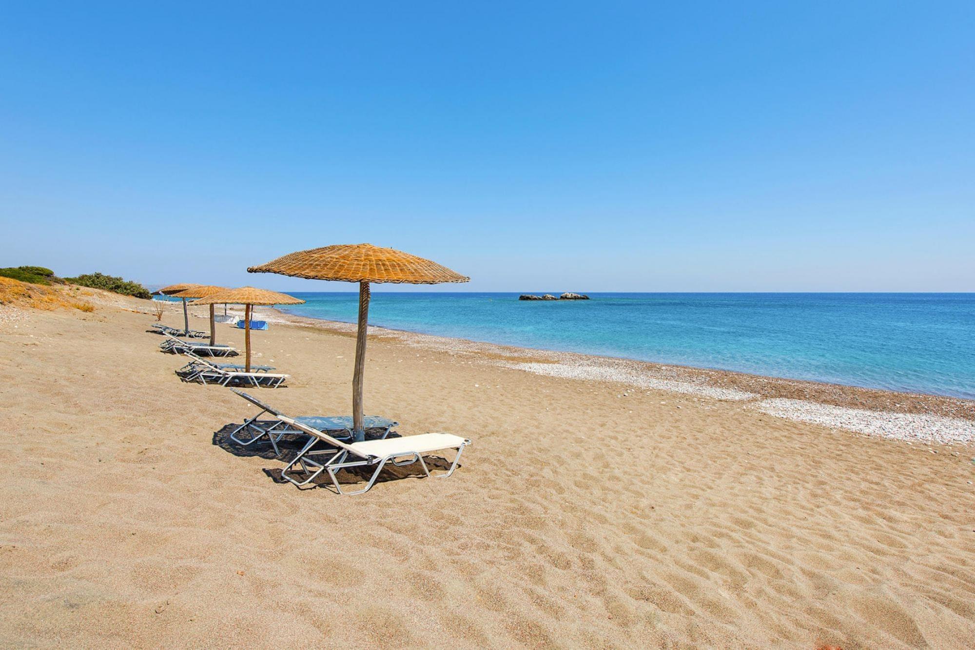 Beliggende i en exceptionel beliggenhed ved havet i den sydøstlige del af øen, tilbyder disse fire smagfulde, dobbelthuse en afslappet middelhavsferie kun få øjeblikke fra kysten. Kun en smal stribe græs adskiller husene fra den 10 kilometer lange sand- og stenstrand i Kiotari, så du kan nyde uforstyrret udsigt over den åbne horisont og det dybblå hav. Her begynder dagene med lyden af blide bølger og slutter med gyldne solnedgange over vandet. Hvert hus i tre etager er designet til komfort og en ubekymret livsstil. Interiøret er lyst og indbydende med et fuldt udstyret åbent køkken med moderne apparater, en hyggelig opholds- og spisestue med satellit-tv og en sovesofa samt komfortable soveværelser fordelt på etagerne. Aircondition sikrer behagelige temperaturer hele året rundt, mens flere badeværelser, herunder et med et afslappende boblebad, tilføjer et ekstra strejf af forkælelse. Gennemtænkte faciliteter såsom vaskemaskine, babyseng, højstol og strygefaciliteter gør disse hjem velegnede til familier. Udendørsliv er et sandt højdepunkt. Hvert hus har sin egen private have med en forfriskende swimmingpool, liggestole, parasol og en møbleret, overdækket terrasse med grill, perfekt til lange frokoster, afslappede eftermiddage og hyggelige aftener under stjernerne. Adskillige taverner, to supermarkeder og et konditori ligger inden for 500 meter, mens landsbyen Kiotari med yderligere butikker og restauranter ligger kun 750 meter væk. Disse hjem er ideelle for gæster, der søger havudsigt, komfort og nem adgang til det lokale liv, selvom de ikke er egnede til personer med begrænset mobilitet.