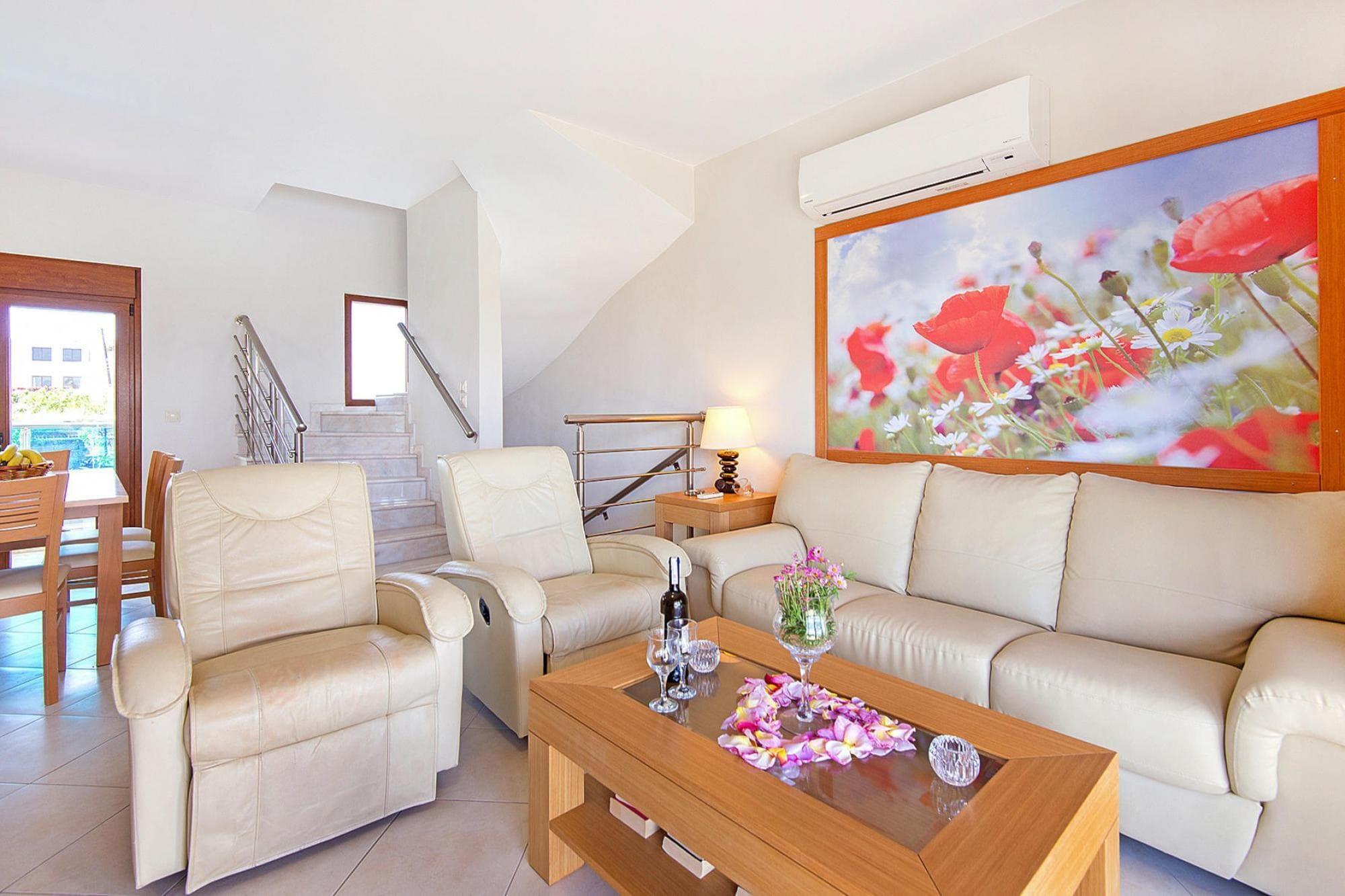 Beliggende kun få øjeblikke fra kystlinjen i Kiotari, tilbyder disse fire elegante, dobbelthuse en sjælden beliggenhed ved havet, hvor komfort, plads og uforstyrret havudsigt forenes. Kun en smal stribe grønt adskiller ejendommen fra den 10 kilometer lange sand- og stenstrand, så du kan vågne op til lyden af bølgerne og nyde en betagende udsigt over den endeløse blå horisont. Hvert hjem er omgivet af sin egen private have, komplet med en forfriskende swimmingpool, liggestole og en møbleret terrasse med grillfaciliteter, perfekt til afslappede eftermiddage og lange, lune aftener ved havet. Fordelt på tre rummelige etager, er husene omhyggeligt designet til at give alt, hvad der er nødvendigt for et ubekymret ophold. Det åbne køkken er fuldt udstyret til madlavning, mens den lyse opholds- og spisestue åbner direkte ud til udendørsområderne, hvilket skaber en problemfri inde-udendørs livsstil. Tre komfortable soveværelser, to moderne badeværelser inklusive et luksuriøst boblebad og aircondition overalt sikrer et behageligt ophold for familier eller grupper. Praktiske detaljer såsom vaskemaskine, opvaskemaskine, barneseng, højstol og privat parkering tilføjer hverdagens bekvemmeligheder til ferieoplevelsen. Beliggenheden er lige så tiltalende. Adskillige traditionelle taverner, to supermarkeder og et konditori ligger alle inden for 500 meter, hvilket gør det nemt at nyde lokale smagsoplevelser og dagligvarer til fods. Landsbyen Kiotari, med yderligere butikker og spisemuligheder, ligger kun 750 meter væk. Selvom husene ikke er egnede til gæster med begrænset mobilitet, er de ideelle for rejsende, der søger en fredelig ferie ved havet med private faciliteter, en fantastisk udsigt og den autentiske charme ved Rhodos' sydøstlige kyst lige uden for døren.