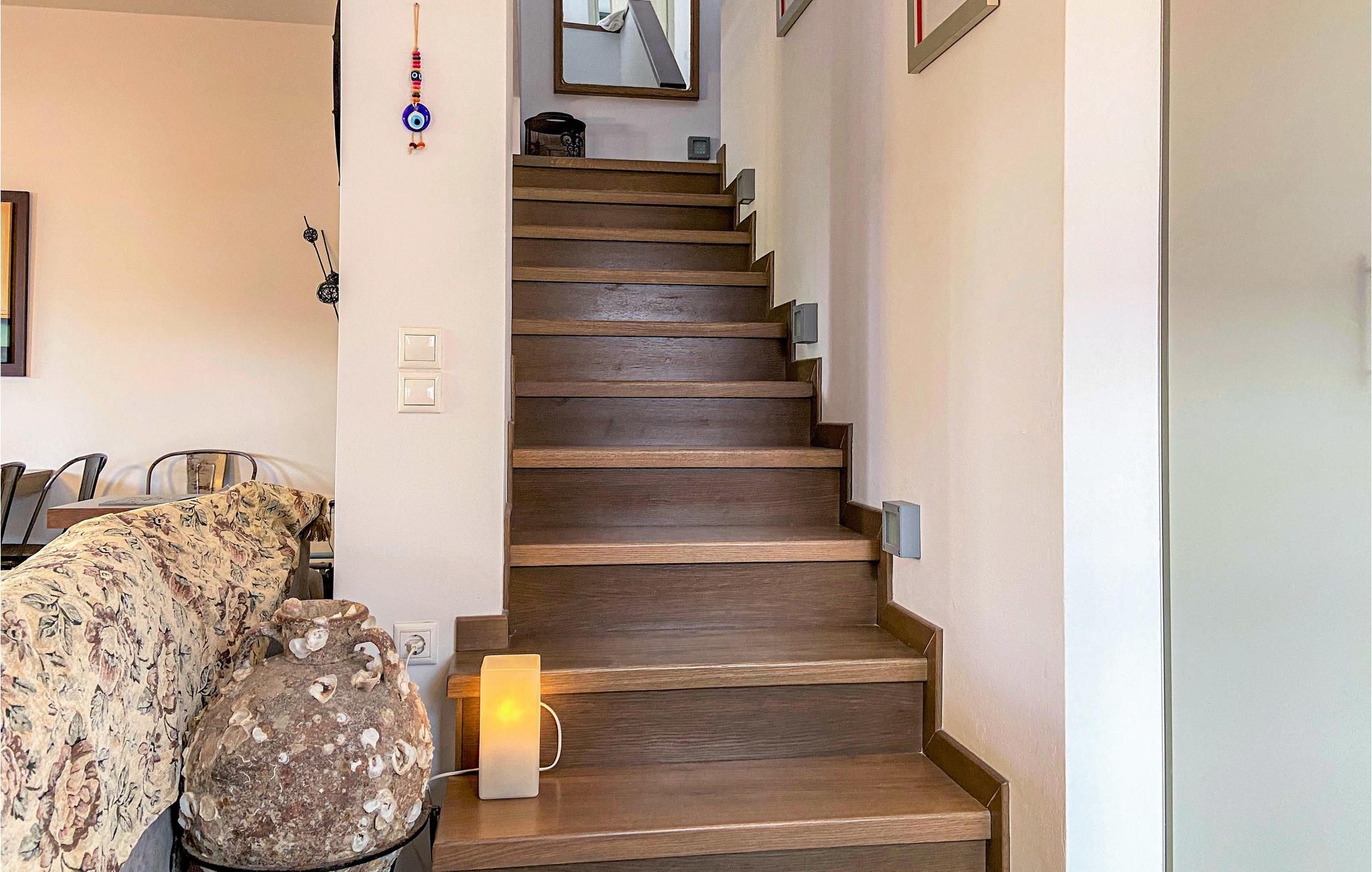 Grib badehåndklædet, gå fra feriehuset til havet og nyd det klare vand på stenstranden. I det flotte ø-landskab kan I tage på vandreture. I kan også tage en tur til Vathi med den livlige havn og store udvalg af kulturtilbud.
