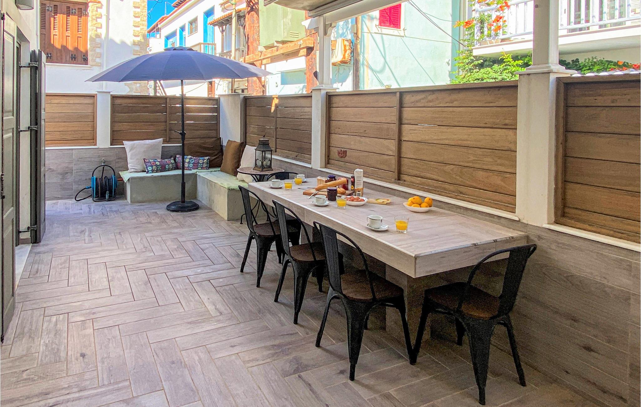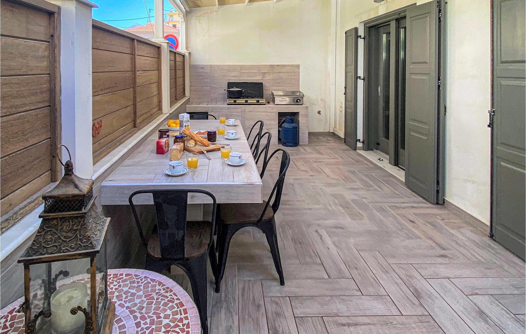 I første række til stranden ligger dette skønne hus på Samos, hvor I kan slappe af i en hjemlig atmosfære med hele familien. Varme farver og moderne faciliteter gør det nemt for jer at glemme hverdagens stress og jag. Tilbered måltider i det åbne køkken og spis sammen på terrassen. Om aftenen kan I føle jer godt tilpas sammen på de indbydende sofaer, se en film og lade dagen slutte behageligt.