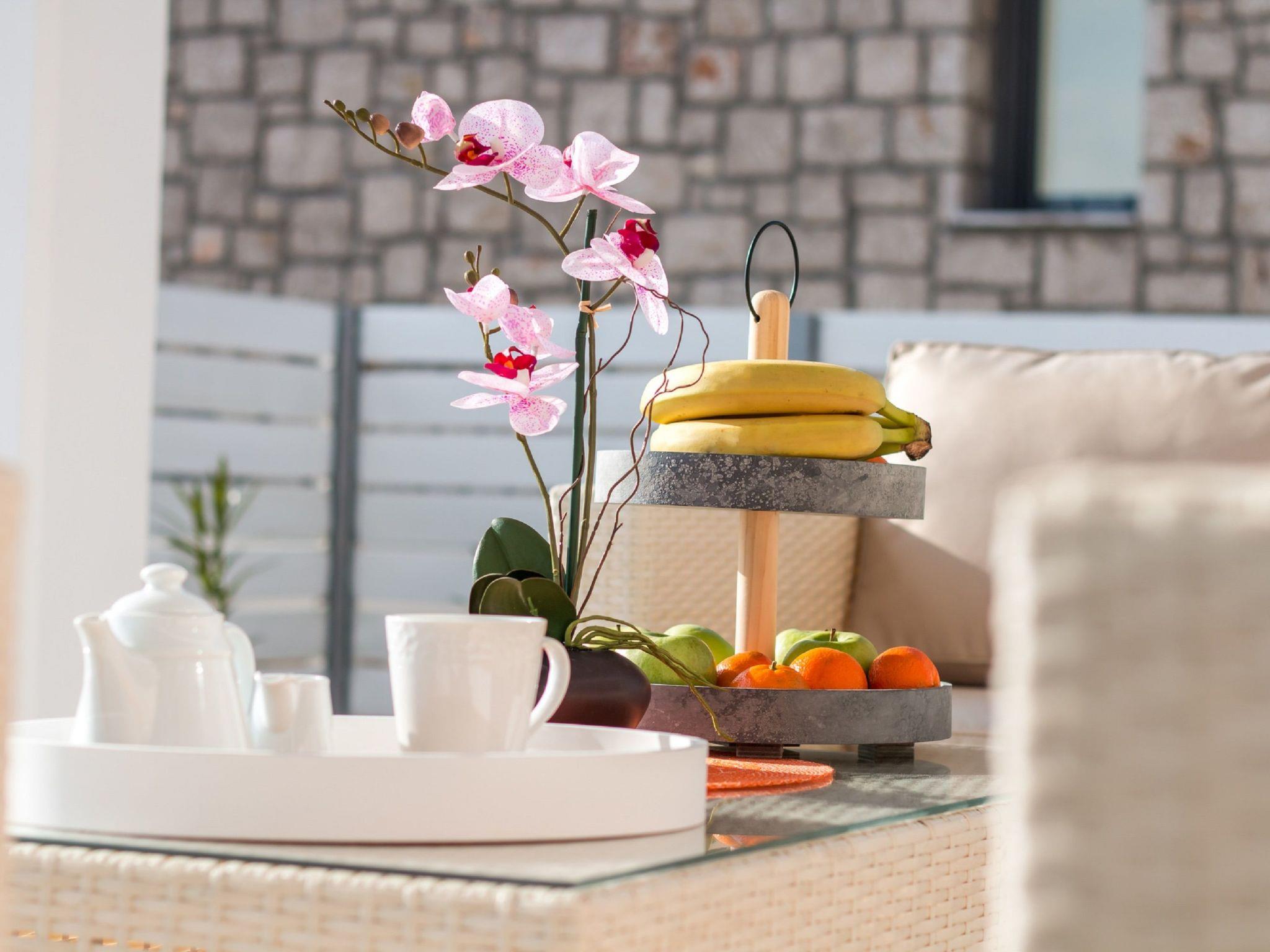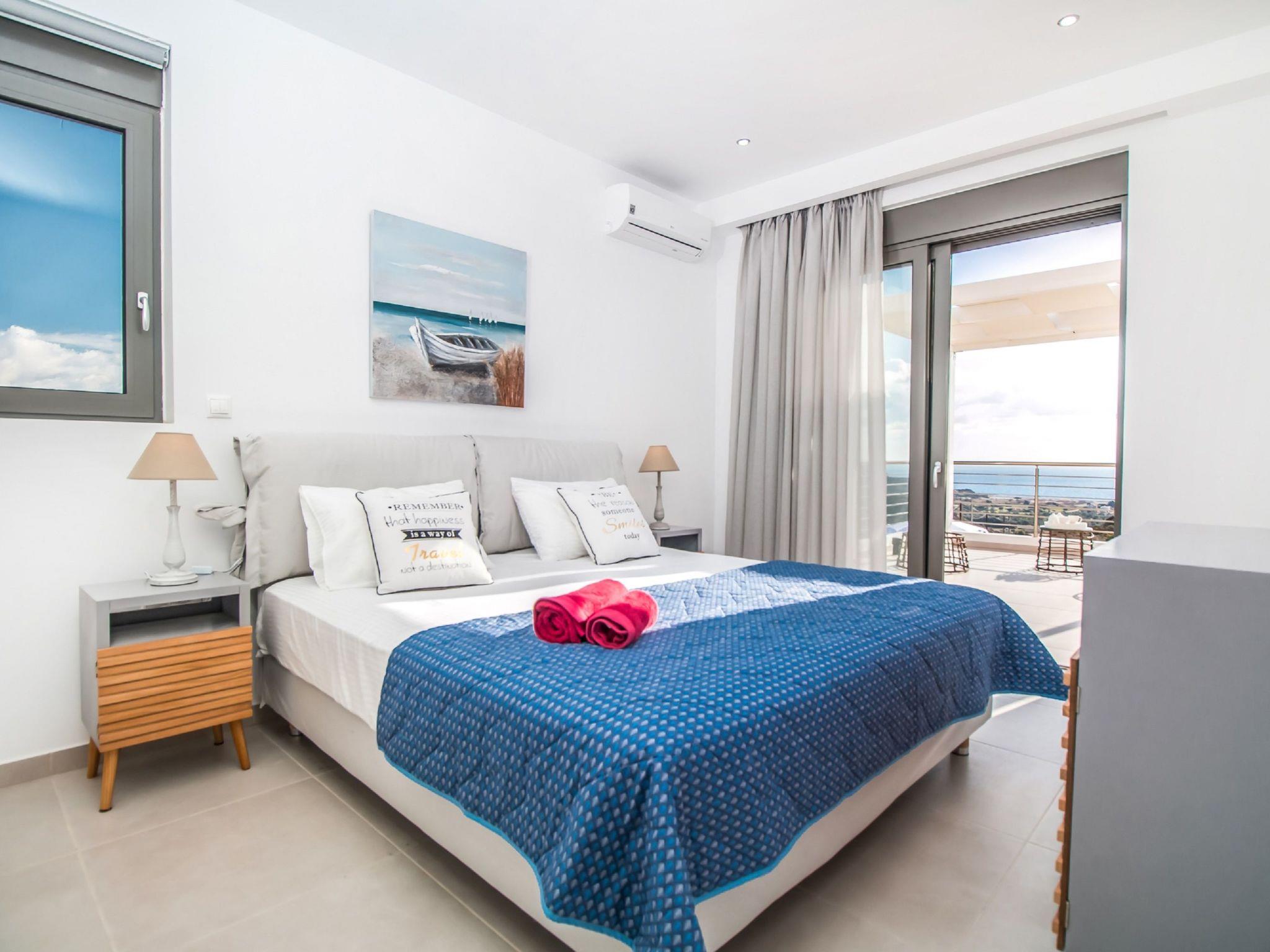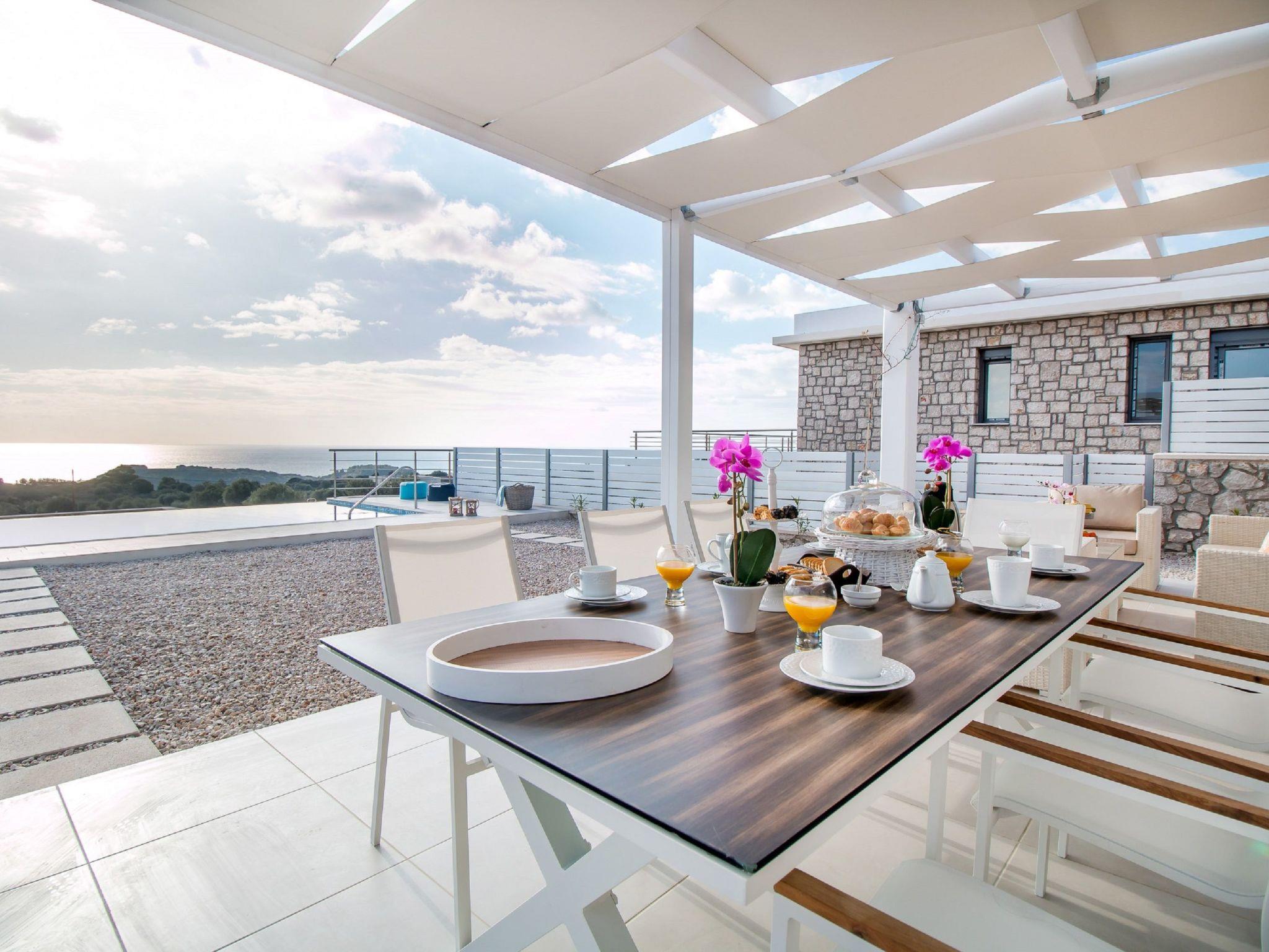 Francis Luxury Villa has an elegant style and large spaces. It offers 4 fully air-conditioned bedrooms with double beds and balconies. Also, it has 4 bathrooms with a shower, 3 of them are ensuite. The property has a fully equipped kitchen suitable for any meal preparation. Francis Luxury Villa has a spacious open plan living room with comfortable sitting areas designed for ultimate relaxation, equipped with flat screen TV, satellite channels and a surround sound system. Outdoors, there’s a private swimming pool surrounded by the sunbeds and the mesmerizing sea view and a sitting area. You can always prepare a meal at the BBQ facilities and enjoy a gathering with your loved ones especially recommended on the golden hours.