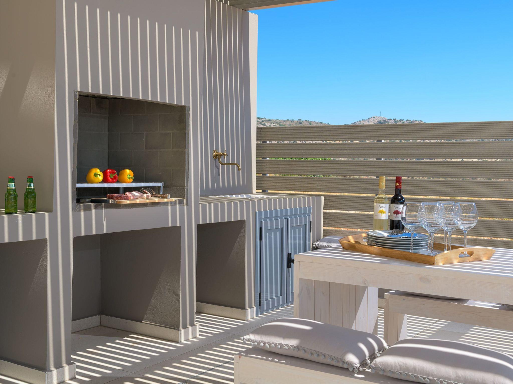 The villa is located within close proximity of Afandou village, close to all kinds of conveniences such as supermarkets, restaurants, tavernas, bakeries, ATMs, pharmacies, car & motorbike rentals and commercial shops. The villa is also close to some of the best beaches of the island. Near Afandou there is an organized beach with fine pebbles and a deep seabed, where visitors can do water sports or relax on a comfortable sunbed, under the sun or an umbrella. It’s found only in a 5-minute drive. Close to Afandou beach you can also find the golf course of the island. Along this beautiful beach visitors can find coffee shops and bars serving cold drinks, as well as restaurants serving seafood and local delicacies. The villa is also close to one of the most popular beaches of the island, Tsampika beach, which stretches over 1 km and combines soft, golden sand with crystal clear, shallow waters. Guests will find it at a 14-minute drive. For those who want to do some sightseeing during their holidays, Lindos and its Acropolis are dating back to the Classical Greek era, and are found in close proximity of 30 minutes. Close to the villa you can also find the 7 Springs Valley, or “Epta Piges”, a place of unique natural beauty that offers visitors a wonderful opportunity to enjoy the islands inland and wildlife.
