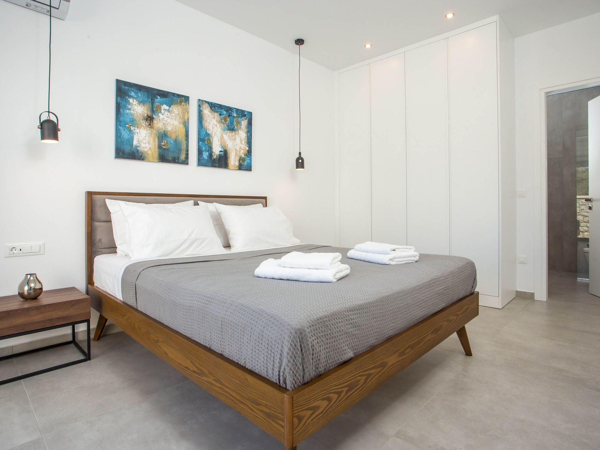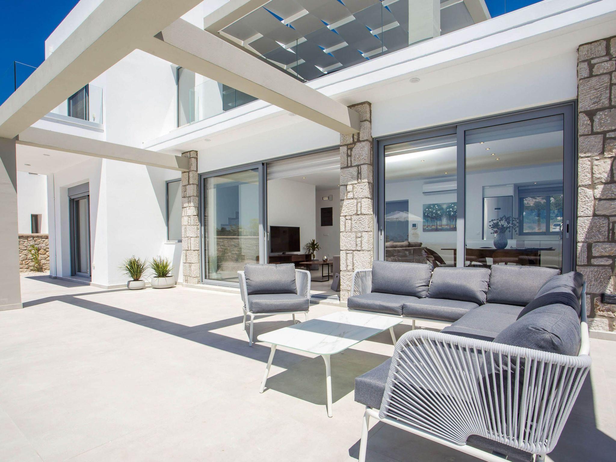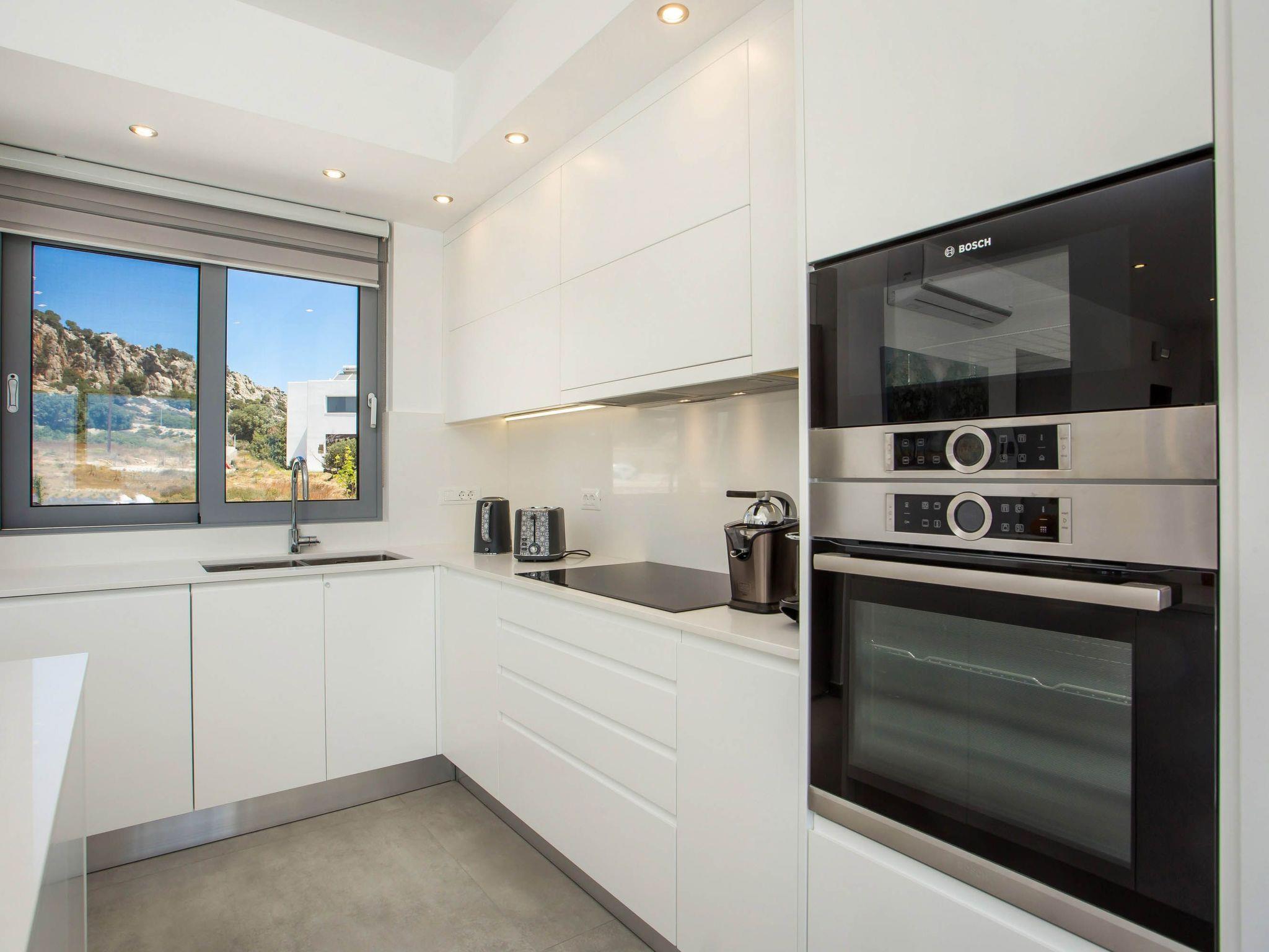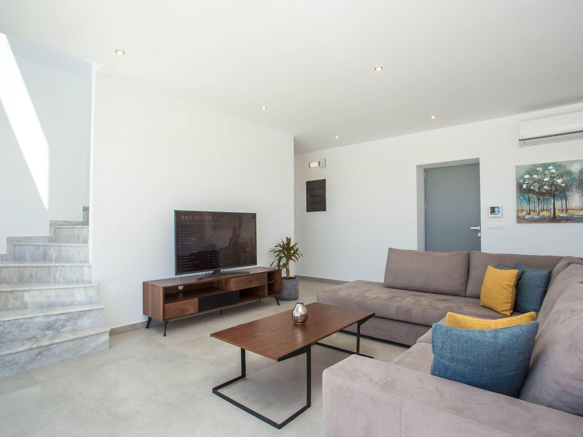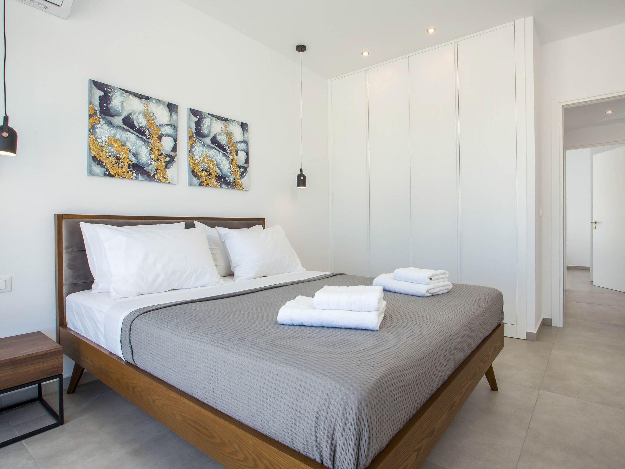 Your house in Rhodes combines comfort, relaxation, and luxury in a great location of Psalidi near all kinds of conveniences and places of interest. It offers a stunning private swimming pool and a contemporary design that will steal your heart. Also, the villa has an amazing view of the sea and is quite close to the cleanest beach of the island, Traganou beach, in only a 10-minute drive. Ideal for families and groups of friends, it accommodates up to 6 people.This stunning villa has 3 fully airconditioned bedrooms, one with a king-sized bed and 2 with double beds. Two of the bedrooms feature ensuite bathrooms with a shower. Also, there is a sharing bathroom with a shower as well. The decoration style in warm colors will make you relax and enjoy your holidays to the fullest. Guests will find a fully equipped kitchen suitable for any meal preparation as well as a seating area. Also, there is a living room with a smart Tv with cable channels and Netflix where you can relax and enjoy your company while arranging your next outdoor activity! All areas are fully air conditioned and there is free WIFI access throughout the property. Outdoors, there is a marvelous private swimming pool surrounded by its sunbeds and the breathtaking sea view. You can also find BBq facilities where you can prepare a delicious meal and have a gathering with your loved ones. Also, there’s an outdoor giant chess game for fun moments by the pool. And for those who don’t miss their workout even on vacation the villa provides you with outdoor gym equipment! This villa has everything you might need to feel comfortable and at home.
