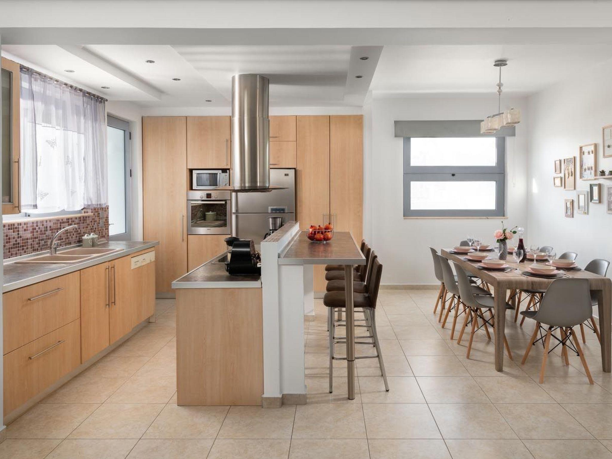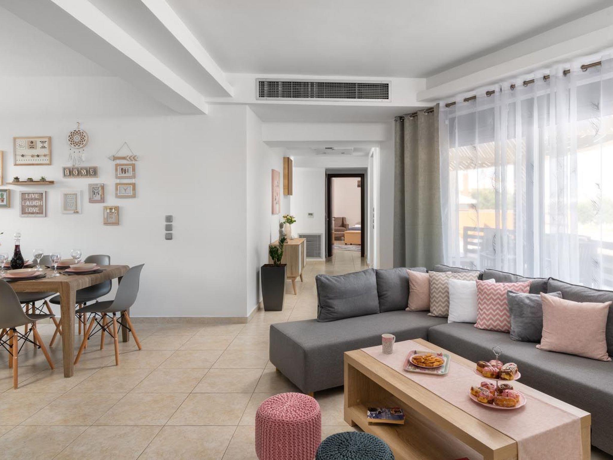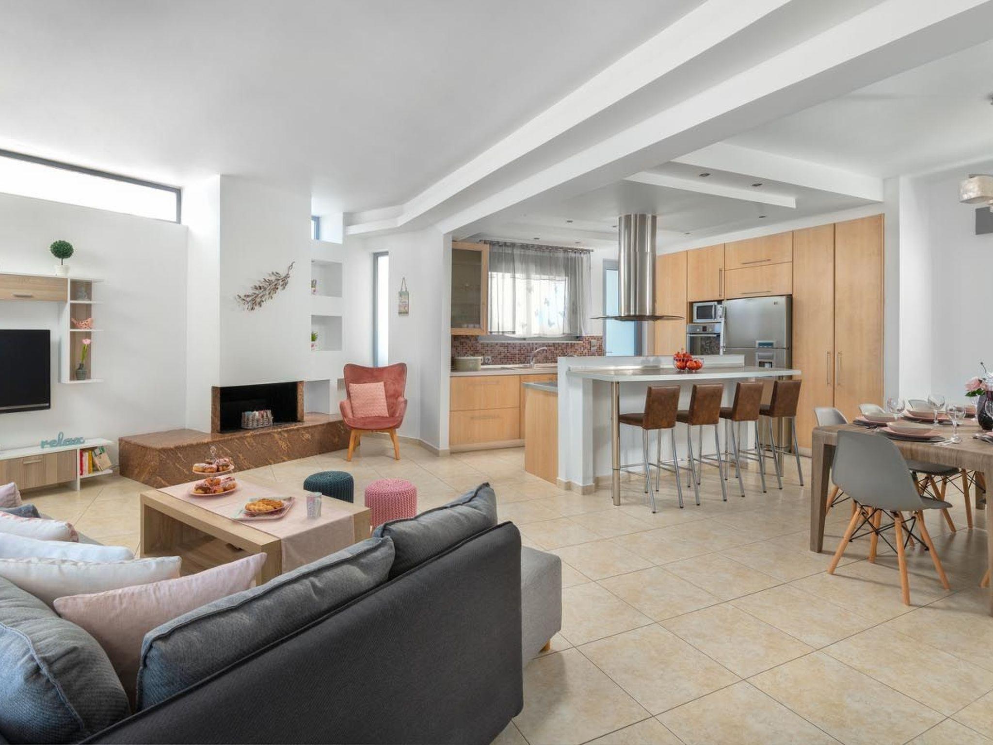 Ifigeneia Villa consists of 3 bedrooms, 2 of them have double beds and one of them 2 single beds. Also there is a comfy sofa bed. The design of the bedrooms is pretty pleasant and homelike. There are 2 bathrooms, one with a bathtub and one with a shower. There is an open plan kitchen accompanied from a cozy sitting area and a relaxing living room. The modern kitchen is fully equipped for any meal preparation. Guests will find a screen TV and will have free Wi-Fi access throughout the property. Also, there’s a ping pong table to enjoy fun moments. Outdoors, there’s the wonderful private swimming pool with its sunbeds for your ultimate relaxation. The surrounding is quite peaceful and inviting. Guests will find the BBQ facilities along with a cozy sitting area to enjoy a gathering with friends or family.
