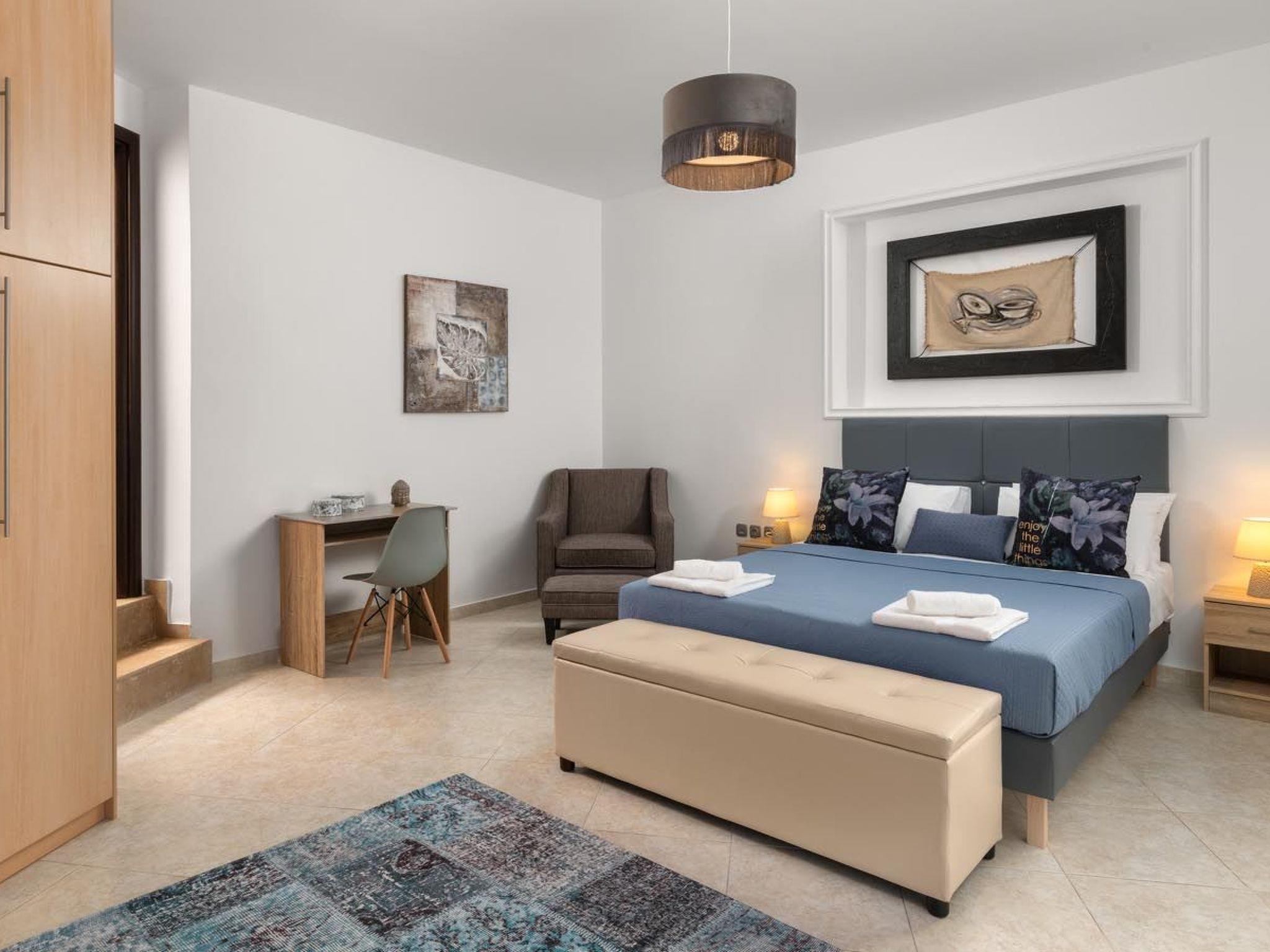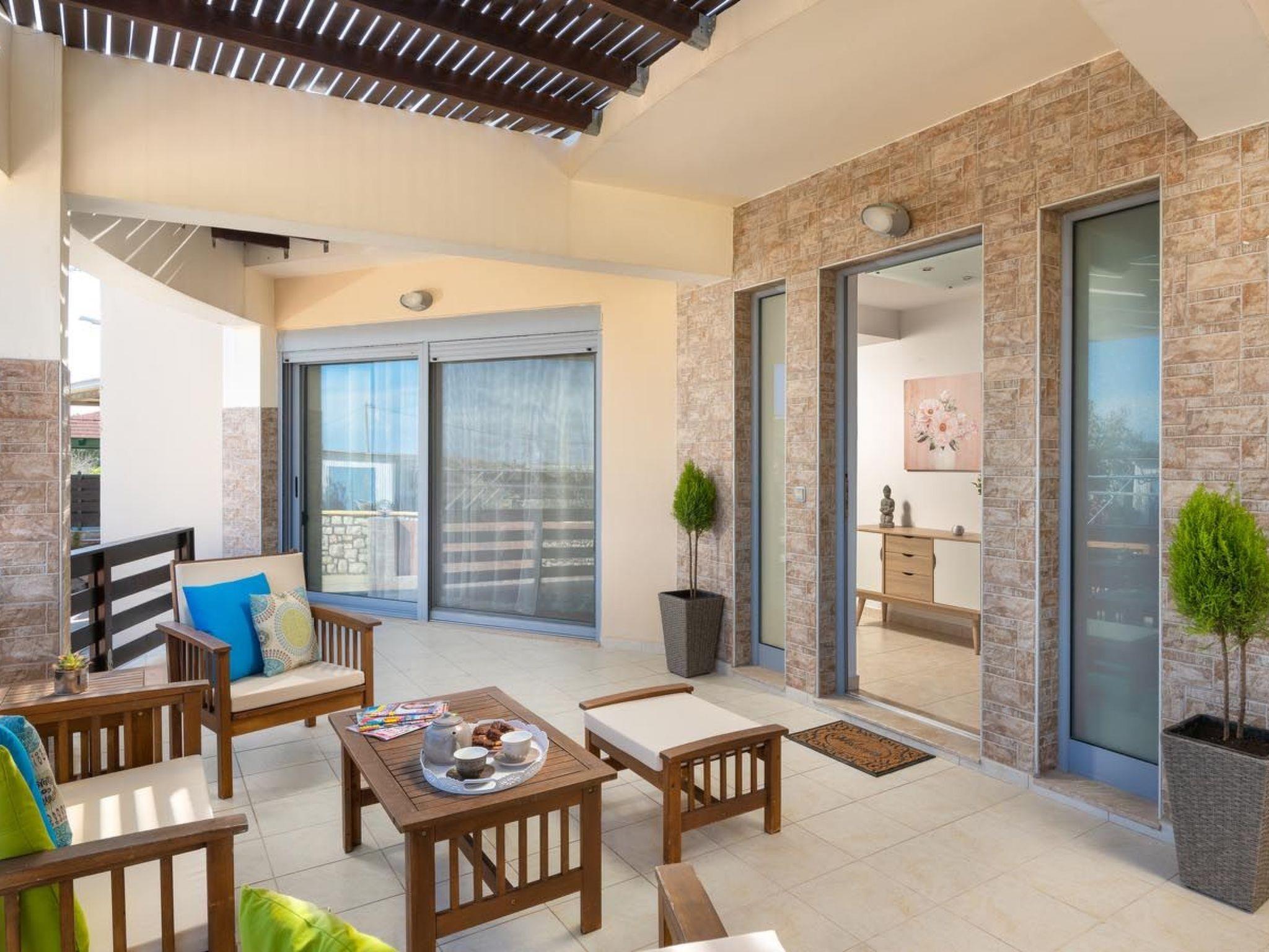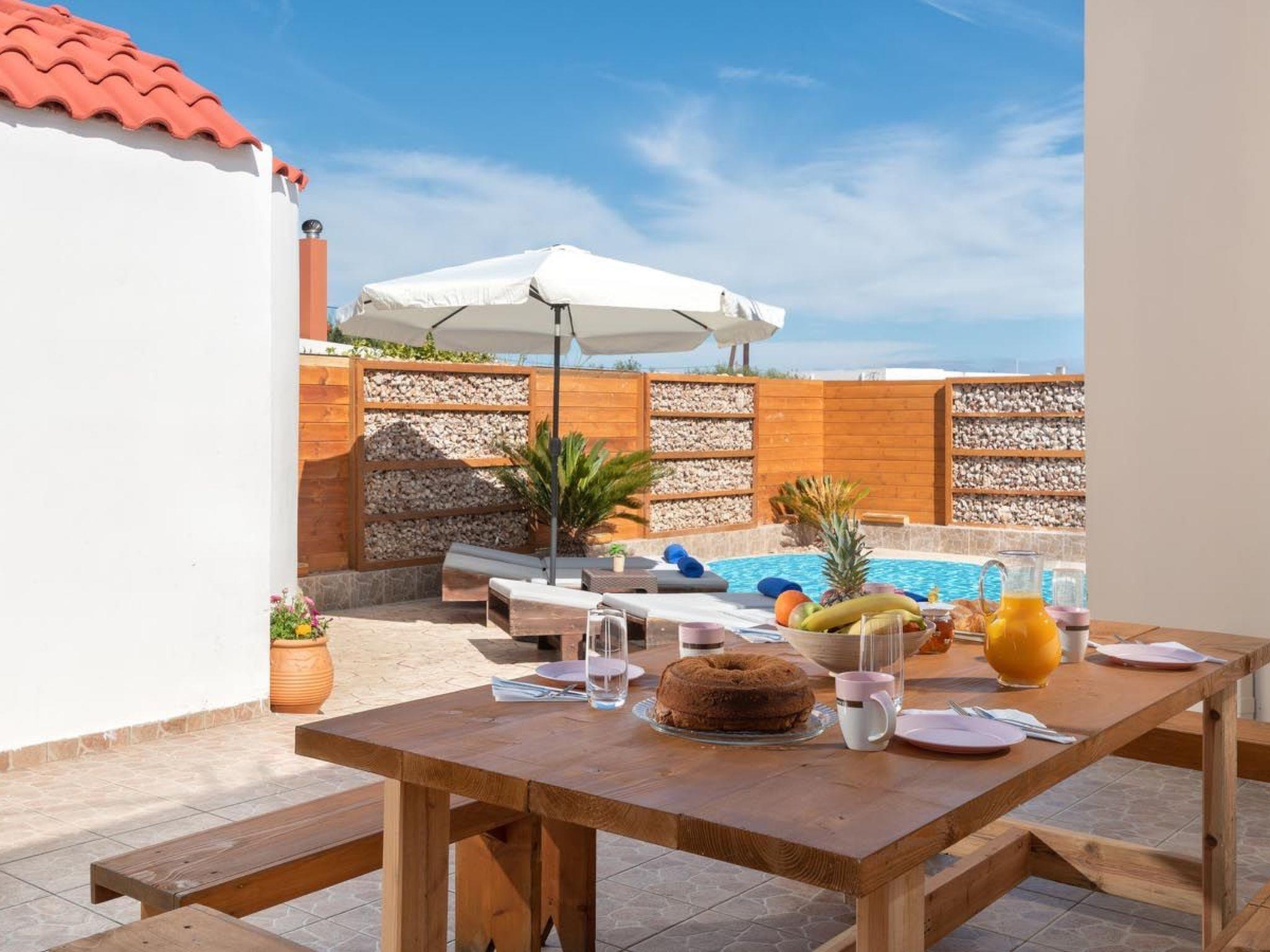 Ifigeneia Villa consists of 3 bedrooms, 2 of them have double beds and one of them 2 single beds. Also there is a comfy sofa bed. The design of the bedrooms is pretty pleasant and homelike. There are 2 bathrooms, one with a bathtub and one with a shower. There is an open plan kitchen accompanied from a cozy sitting area and a relaxing living room. The modern kitchen is fully equipped for any meal preparation. Guests will find a screen TV and will have free Wi-Fi access throughout the property. Also, there’s a ping pong table to enjoy fun moments. Outdoors, there’s the wonderful private swimming pool with its sunbeds for your ultimate relaxation. The surrounding is quite peaceful and inviting. Guests will find the BBQ facilities along with a cozy sitting area to enjoy a gathering with friends or family.