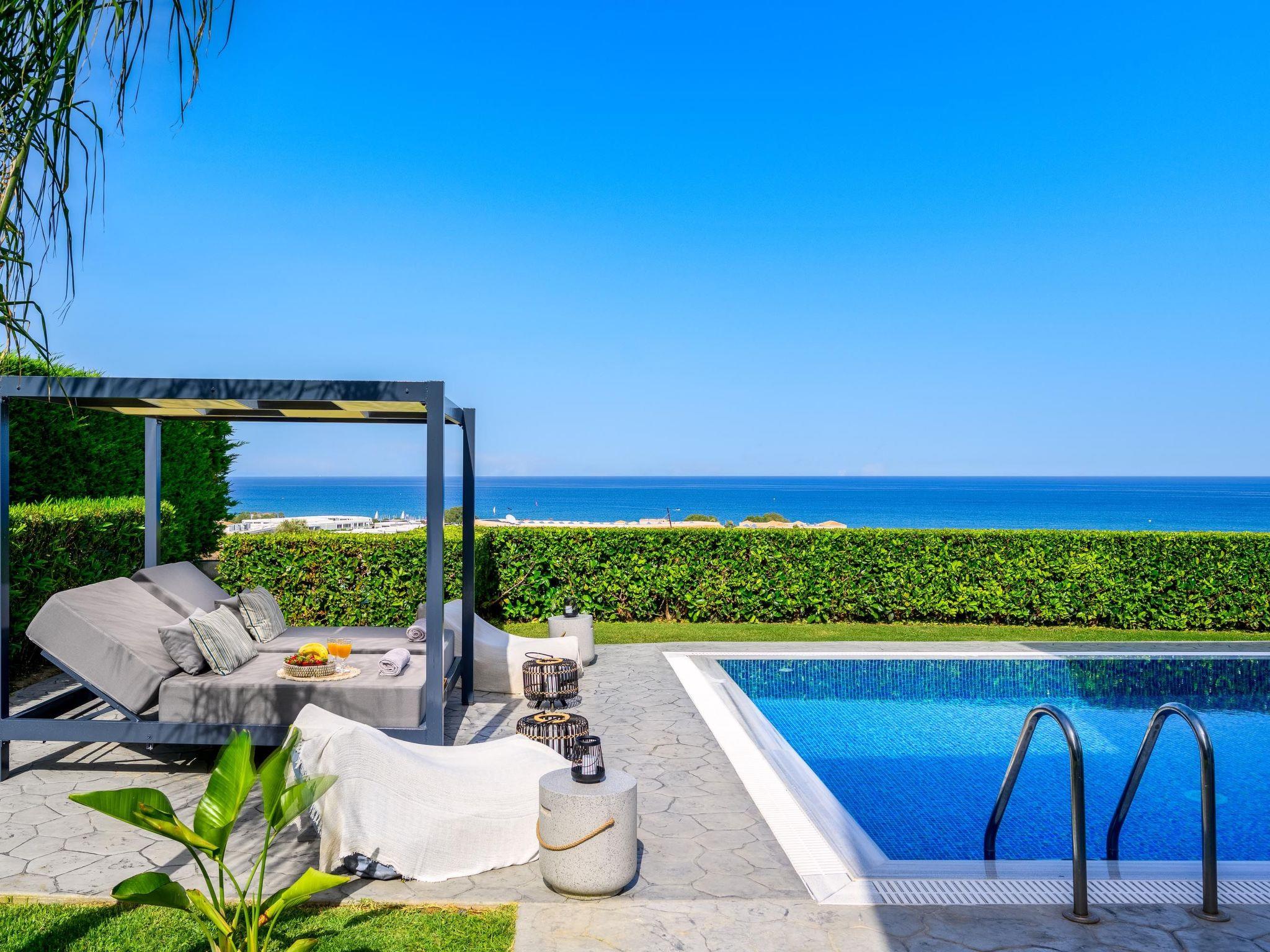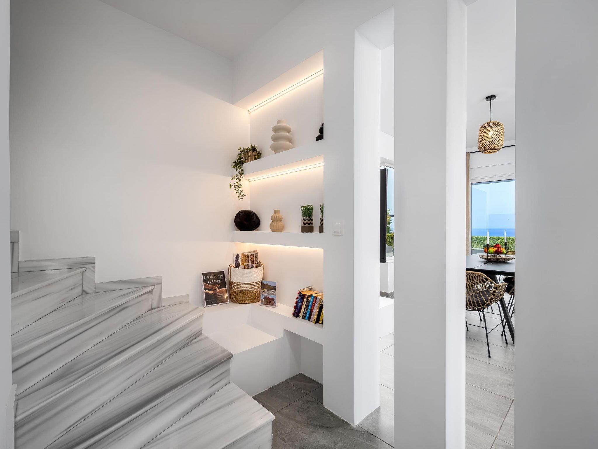 Hill & sea view Villa is brand new and has a tasteful decorating approach that magnetizes you as soon as you arrive to the property. Villa has 5 modern bedrooms and 3 bathrooms, 2 of them are included in the bedrooms, also there is a wc. There is a separate fully equipped kitchen for any meal preparation as well as a luxurious dining area with a window viewing the emerald waters of the island. The living area is quite inviting in its warm colors and the screen TV. There’s free Wi-Fi access throughout the property. Outdoors, guests will find their private swimming pool and the sunbeds, everything designed in a minimal style. The surrounding area of the pool is pretty pleasant, as long as you gaze to this extraordinary view it will offer you peace. Also, you can enjoy the BBQ facilities and the modern sitting area.