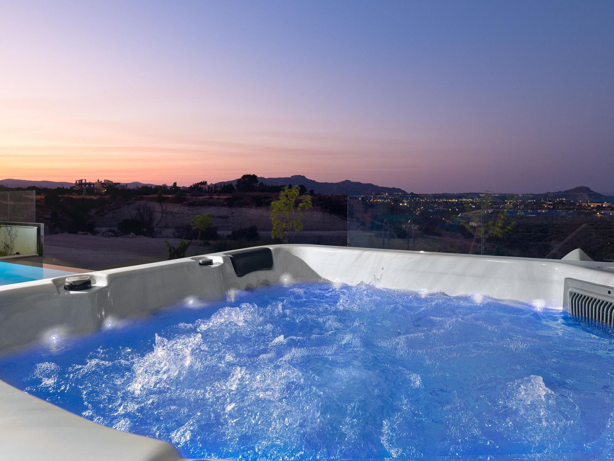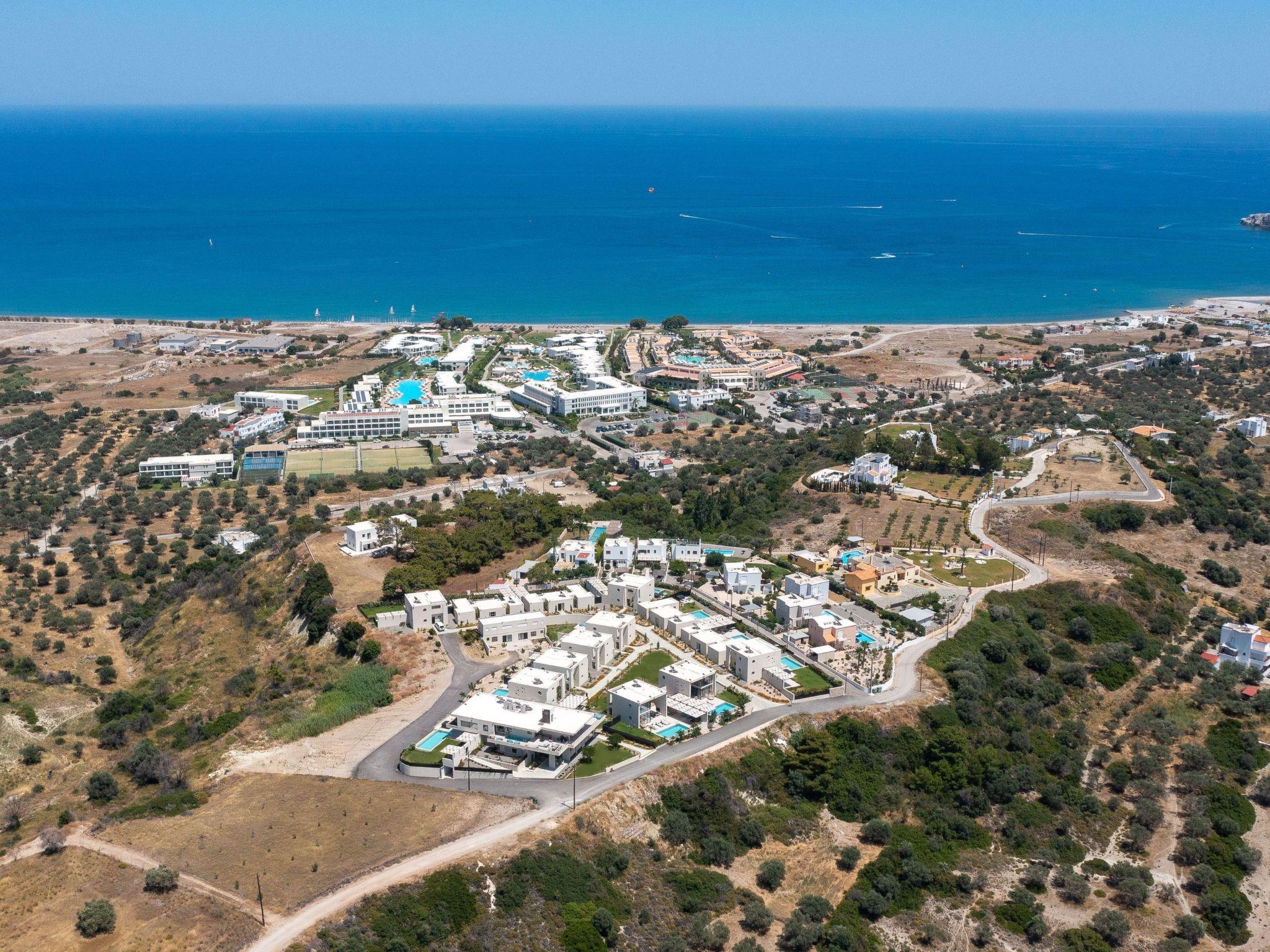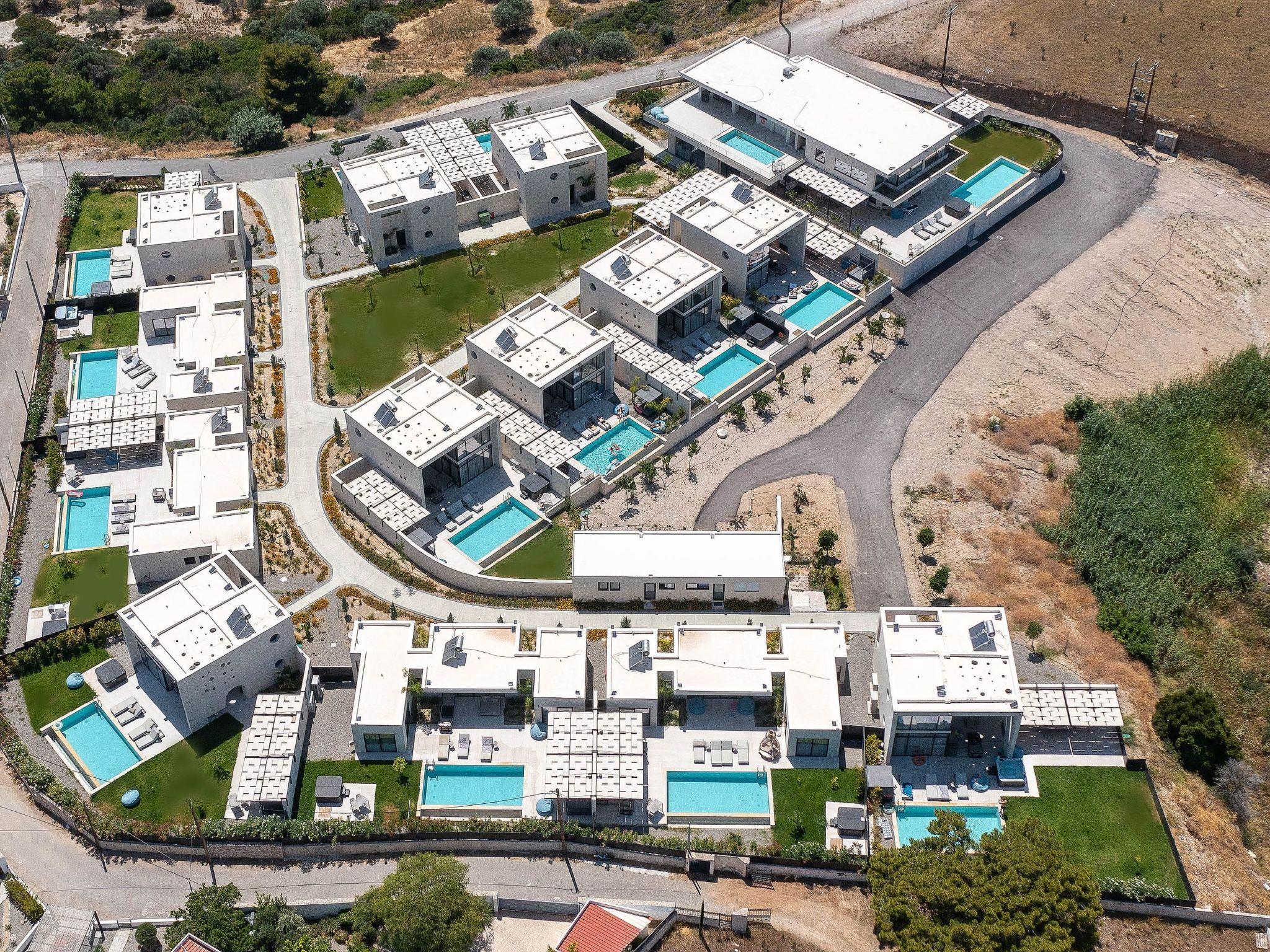 Welcome to the magic luxury living of Trapezia Villas. Trapezia Luxury Living boasts a stunning design that combines modern aesthetics with timeless elegance. Every detail is meticulously crafted to create a sophisticated and luxurious atmosphere. They offers expansive living spaces, including large living rooms, dining areas, and three fully equipped bedrooms with en-suite. The high ceilings and open floor plan enhance the sense of grandeur and provide ample room for relaxation and entertainment. All Trapezia villas are equipped with top-of-the-line amenities to ensure an unparalleled experience of luxury. From a fully-equipped outdoor gourmet kitchen to a private swimming pool and spa, every aspect of comfort and indulgence is taken care of. Trapezia Luxury Living is the epitome of opulence and sophistication, offering a truly exceptional living experience for those seeking the finest in accommodation.Type A villas are two floor luxury detached villas that hosts up to 6 guests.There are 3 fully air-conditioned bedrooms with unique decorations. All of the bedrooms offer ensuite bathrooms with a shower. There’s a fully equipped kitchen in warm colors, suitable for any meal preparation accompanied by the seating area and the living room. There’s a smart TV and free WIFI access throughout the property. Outdoors, there’s a private swimming pool and jacuzzi with sunbeds and a seating area where you can relax under the rays of the Aegean sun. The amazing outdoor kitchen with the dinning are promises memorable dinner’s under the Greek sky. You can spend your time by your private swimming pool or enjoy a fresh meal prepared in the BBQ installation. This amazing property and the beautiful location make the perfect match for a memorable stay and unforgettable holidays in Rhodes!