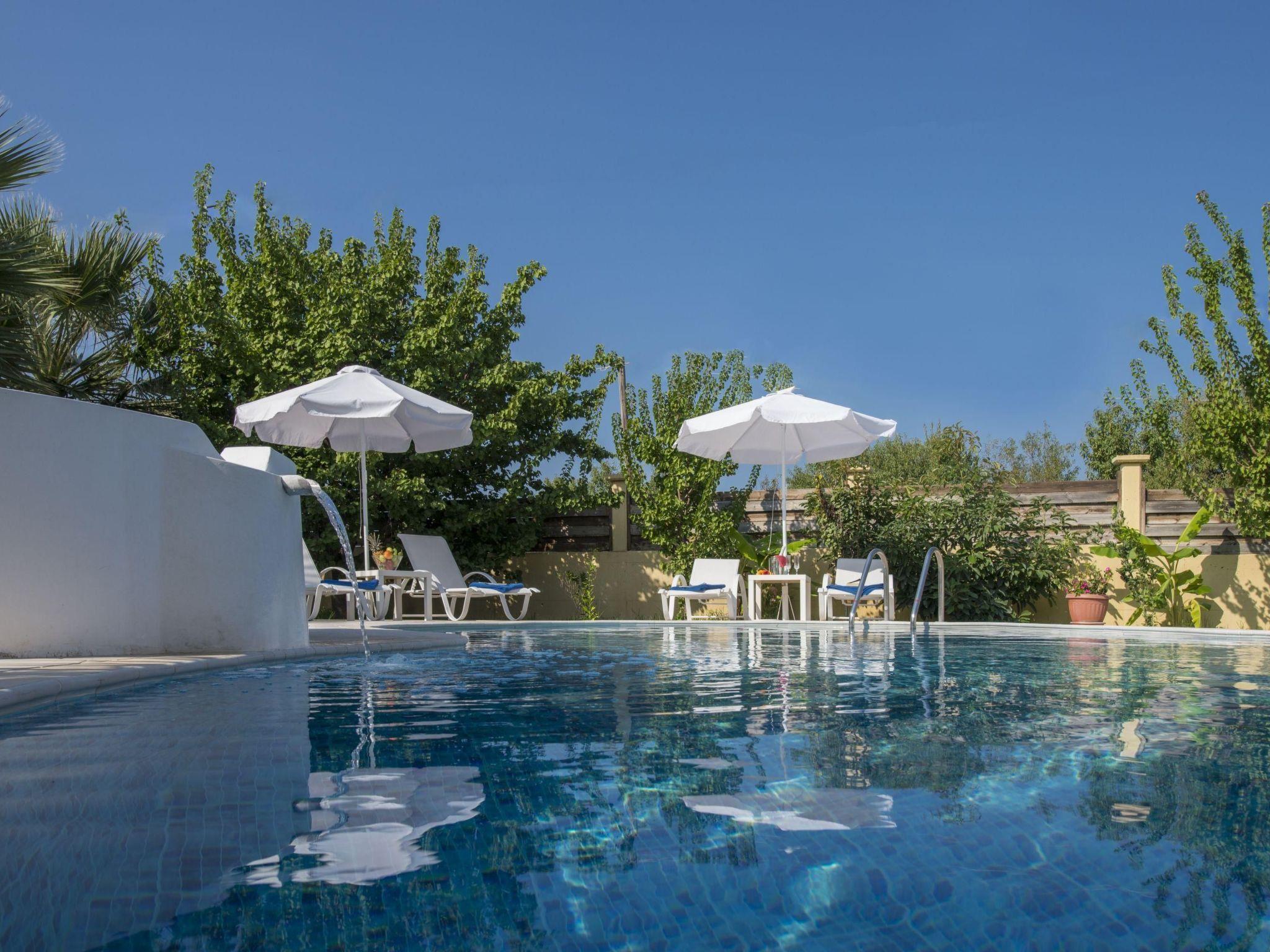 The second floor has a 2.5 x 6-metre veranda with a wonderful view of the Aegean and the island of Kalimnos, inviting you to enjoy leisurely meals outdoors. Plenty of terrace furniture is provided. The outdoor pool measures 10 x 5 metres and has the form of a number eight. There are plenty of sun loungers and little tables around the pool and pool towels are provided. An outdoor shower and a grill with accessories are available. Around the house there is the big, Mediterranean garden with a lawn, planted with around 30 banana, apricot, orange and lemon trees, as well as avocados and palms.