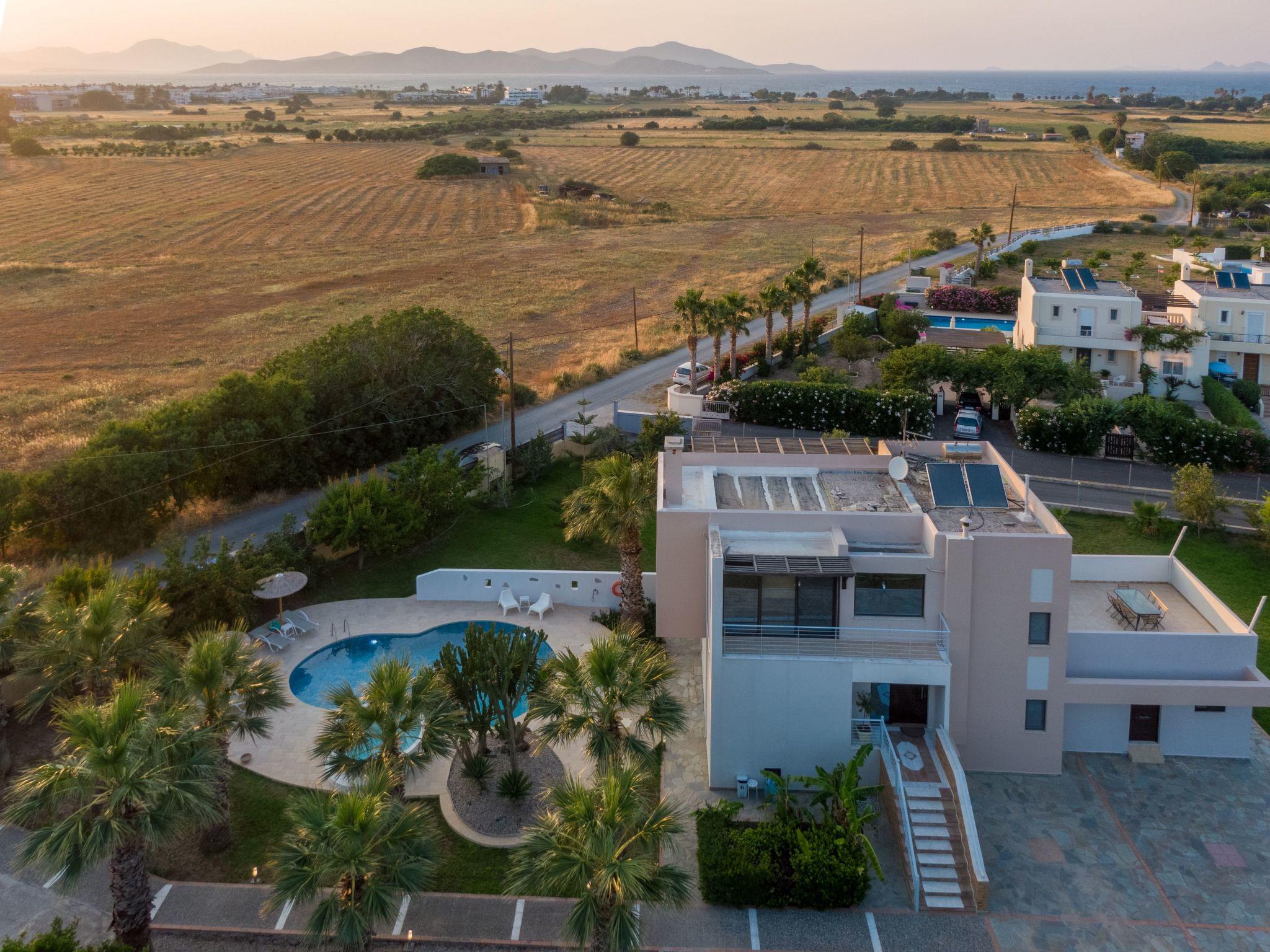 This modern villa with its own pool and garden is in an area with exclusive, private villas on the north side of the island of Kos, with a view towards Pserimos, Kalymnos and the Turkish mainland. It is a kilometre from the village of Zipari and just 9km from the airport. The holiday villa is on a 2500m2 garden plot. Next to it, about 30 metres away, there is a second, separate villa with a pool and garden. The proximity to the beach makes the spacious house ideal for a seaside holiday with family or friends.