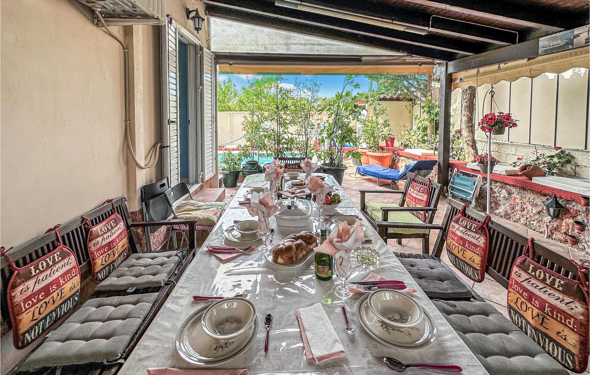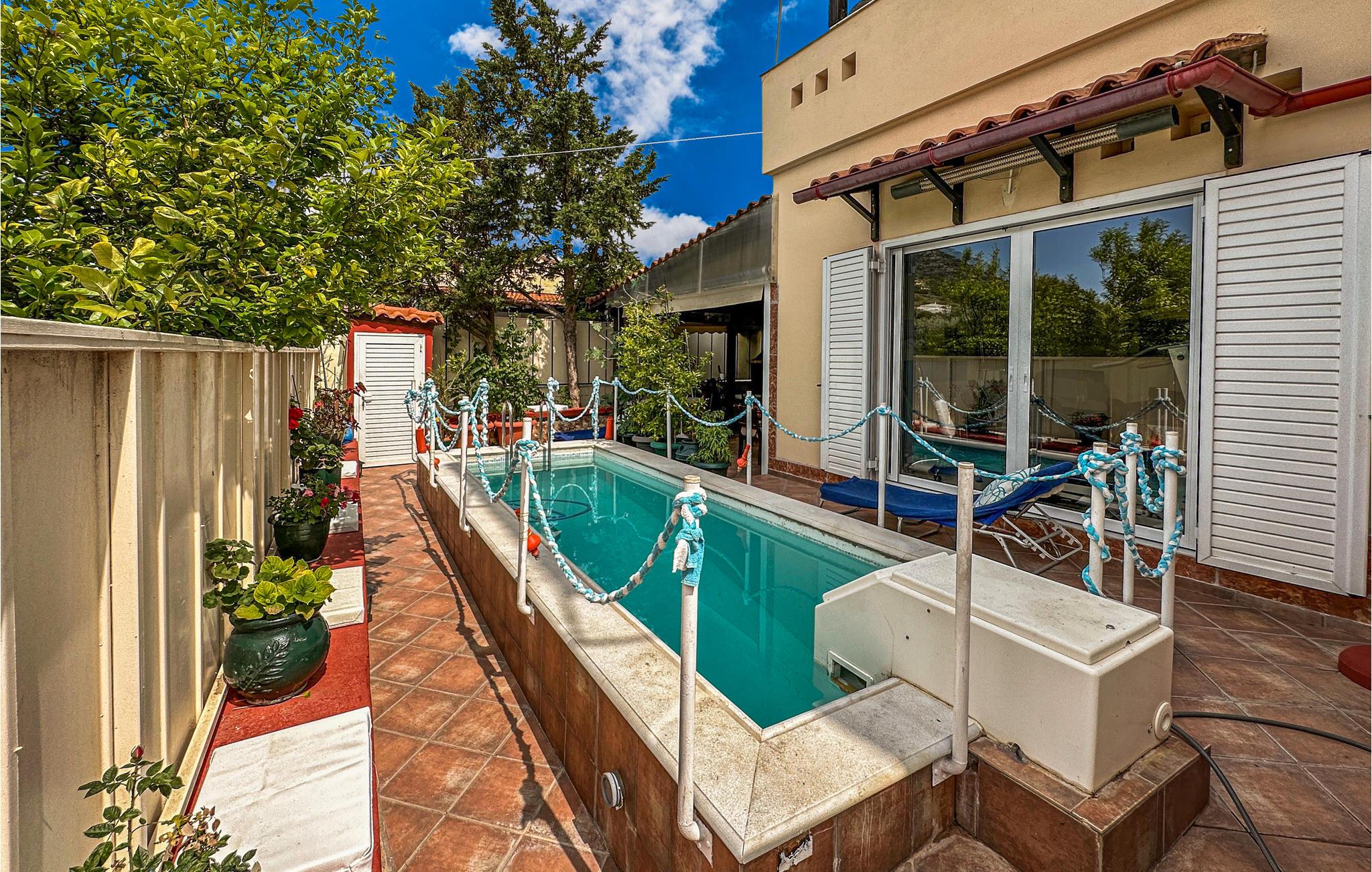 Drømmer I om en afslappende ferie i fredelige omgivelser nær den athenske riviera? Så er dette rummelige feriehus med udendørs pool det perfekte valg for jer.