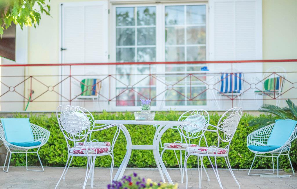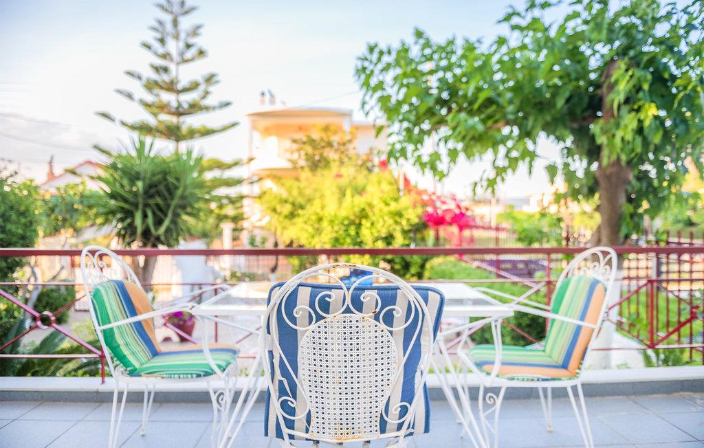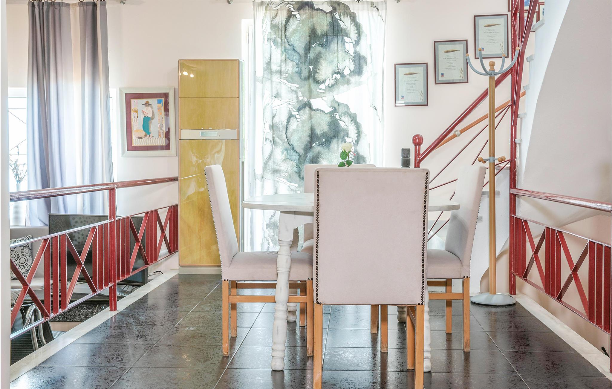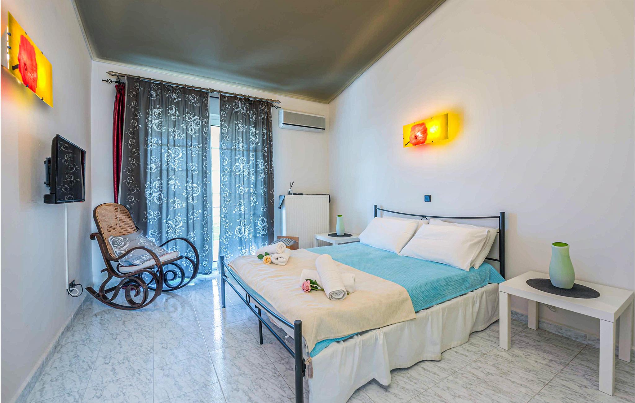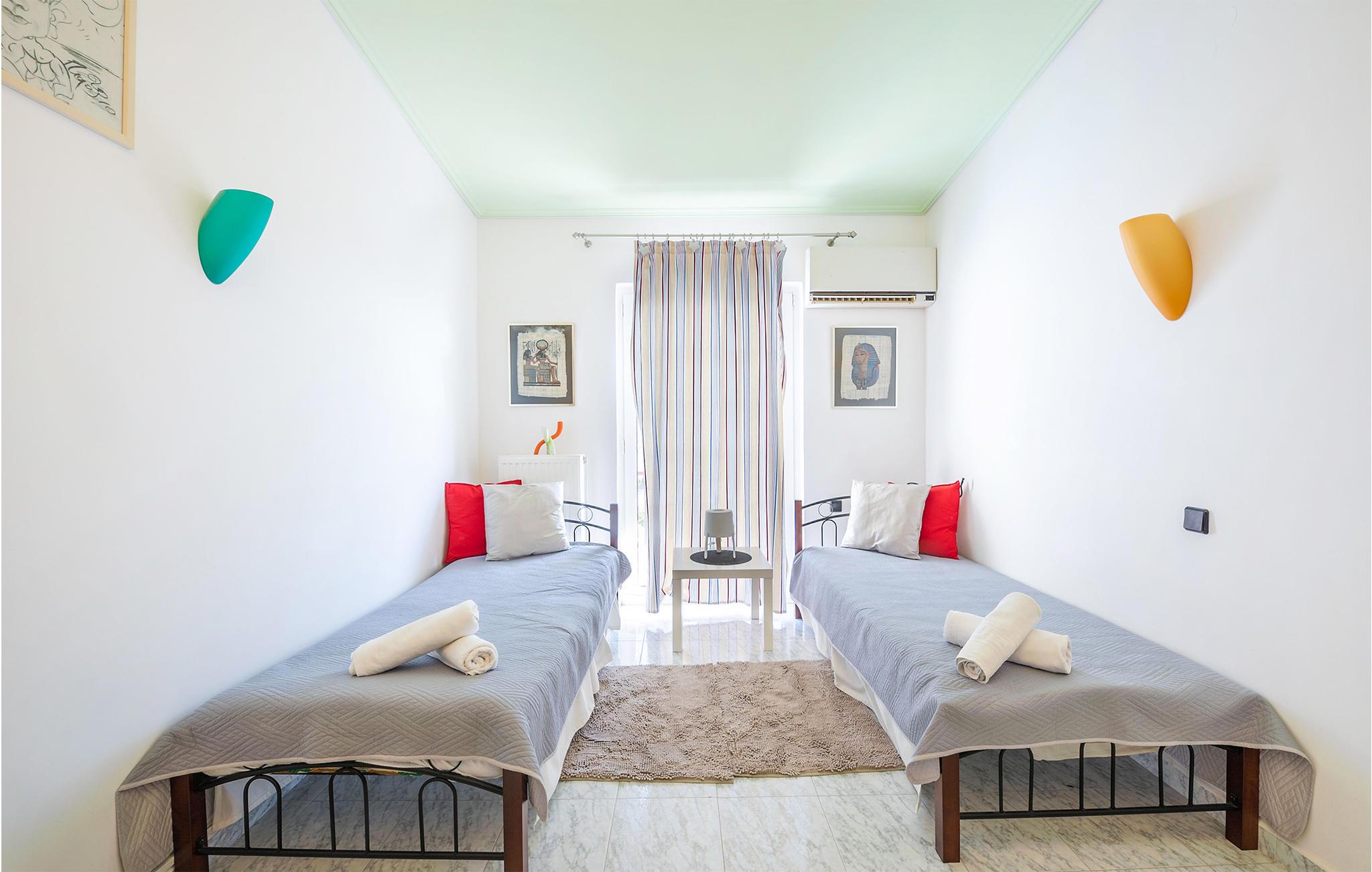 Glæd jer til et varmt indrettet og farverigt feriehus med plads til ni personer. Her kan I slappe af i den velindrettede stue, læne jer tilbage med en god bog eller give jer tid til de dybe samtaler. De yngste gæster vil især blive begejstrede for det fine børneværelse og udendørspoolen. Der er også en grill, så I kan tilberede lækre sommerretter - måske med et græsk tvist. Bagefter kan I sætte jer med retterne på den åbne terrasse og senere med en drink i liggestolen.