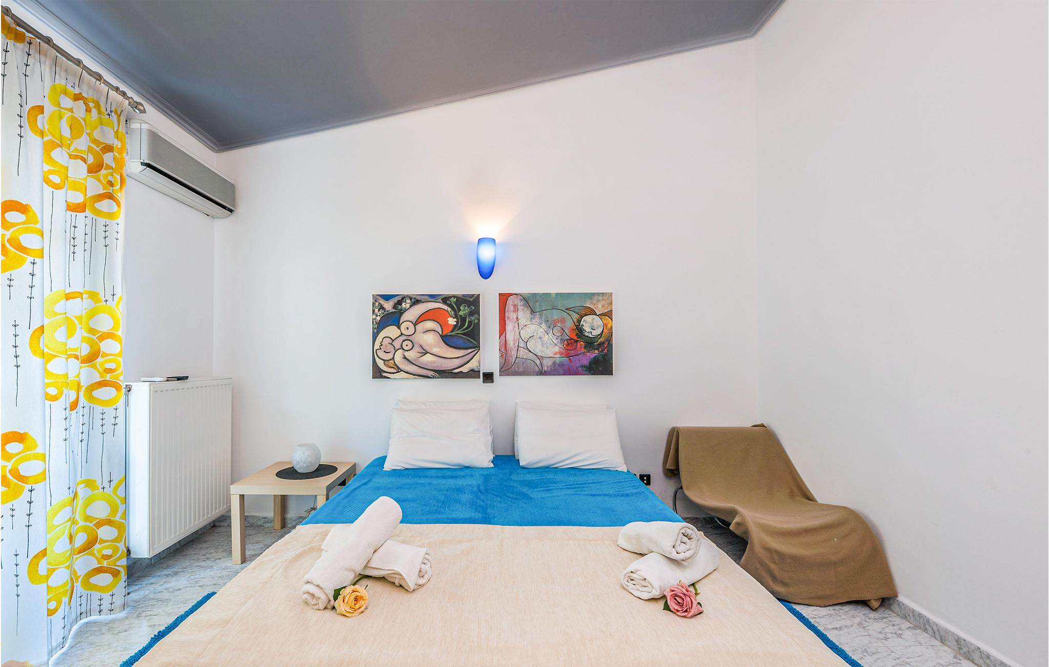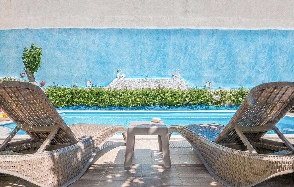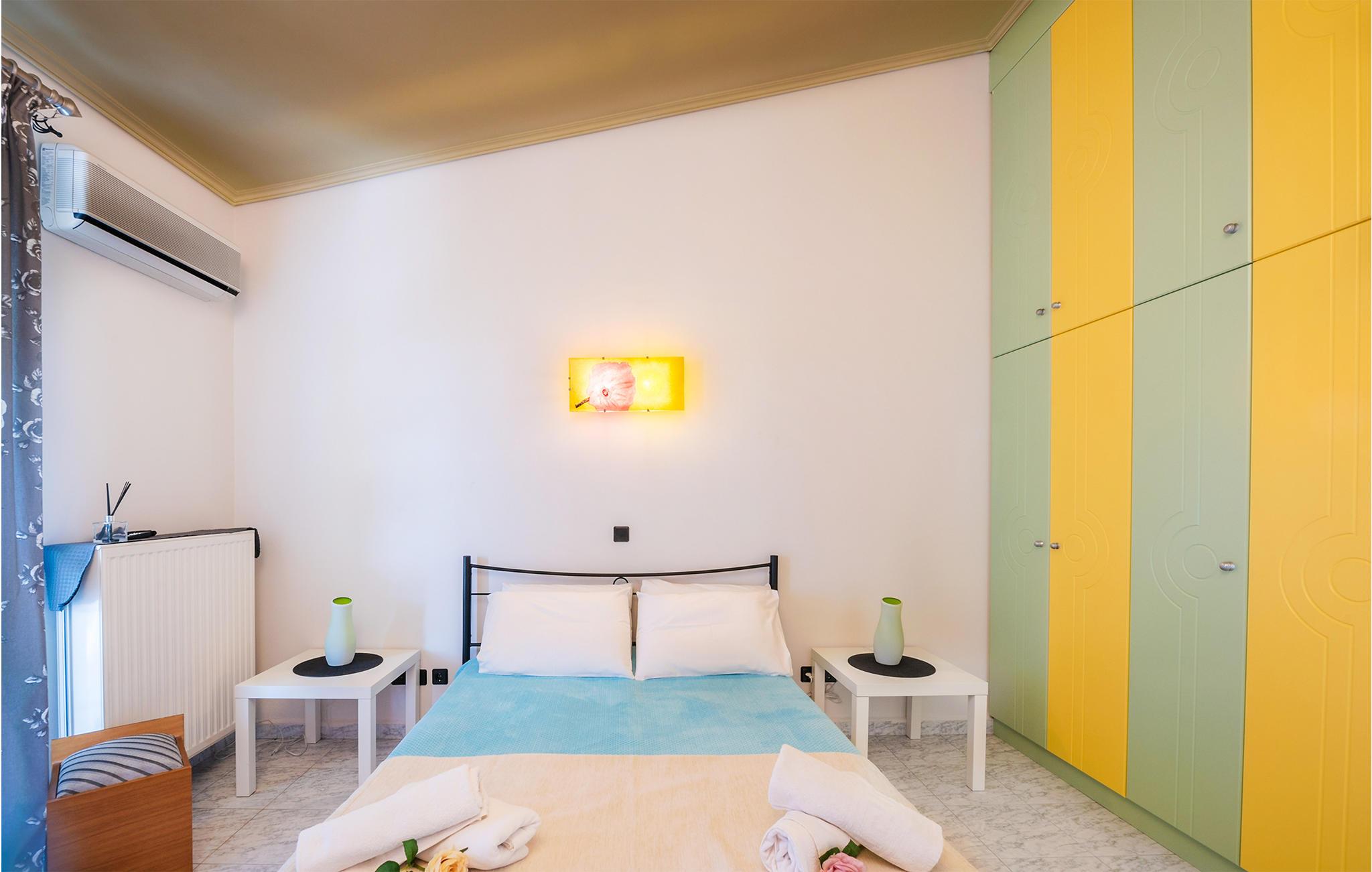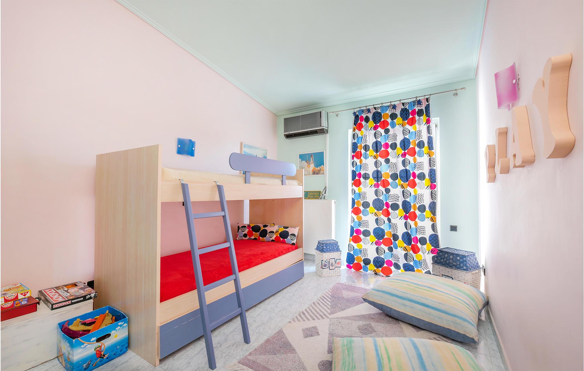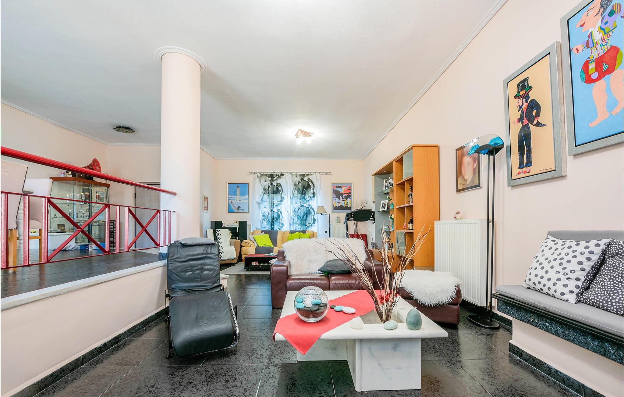 Glæd jer til et varmt indrettet og farverigt feriehus med plads til ni personer. Her kan I slappe af i den velindrettede stue, læne jer tilbage med en god bog eller give jer tid til de dybe samtaler. De yngste gæster vil især blive begejstrede for det fine børneværelse og udendørspoolen. Der er også en grill, så I kan tilberede lækre sommerretter - måske med et græsk tvist. Bagefter kan I sætte jer med retterne på den åbne terrasse og senere med en drink i liggestolen.